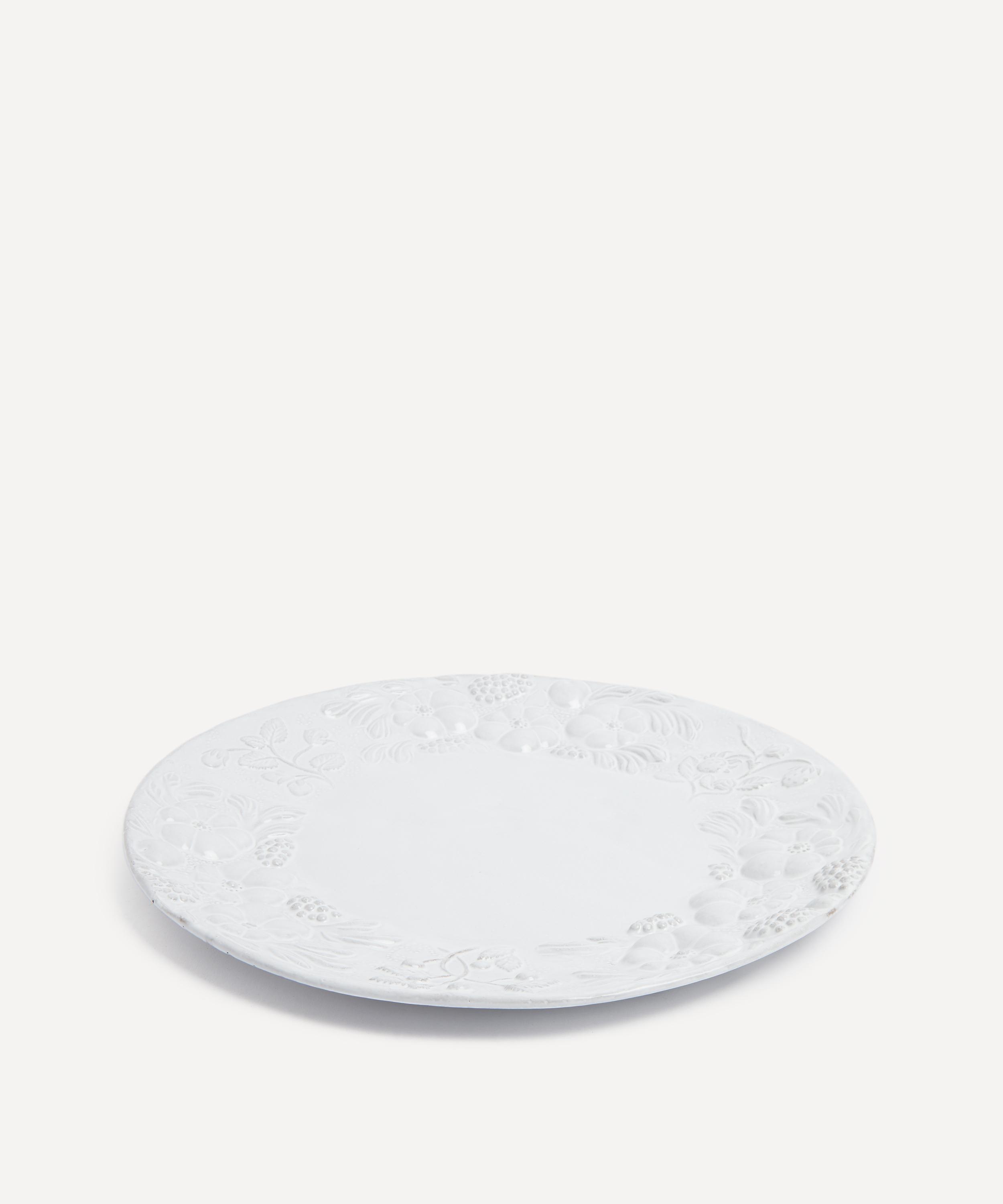 The Hortus dinner plate from Astier de Villatte is a testament to the Parisian brand’s spiritual ethos and fascination with folk art and abandoned objects.