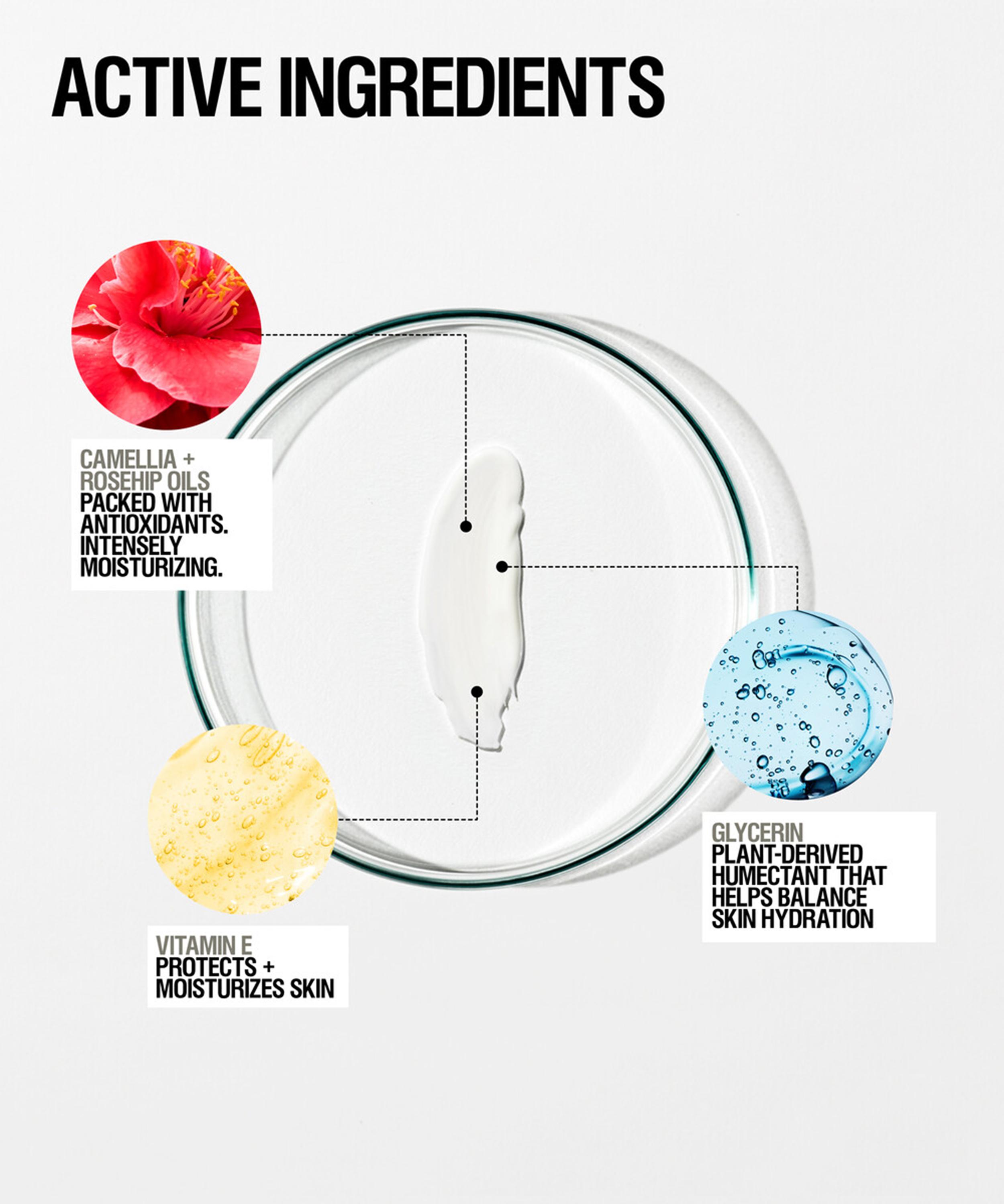 - Formulated with Vitamin E, Camellia, Jojoba, and Rosehip Oil,