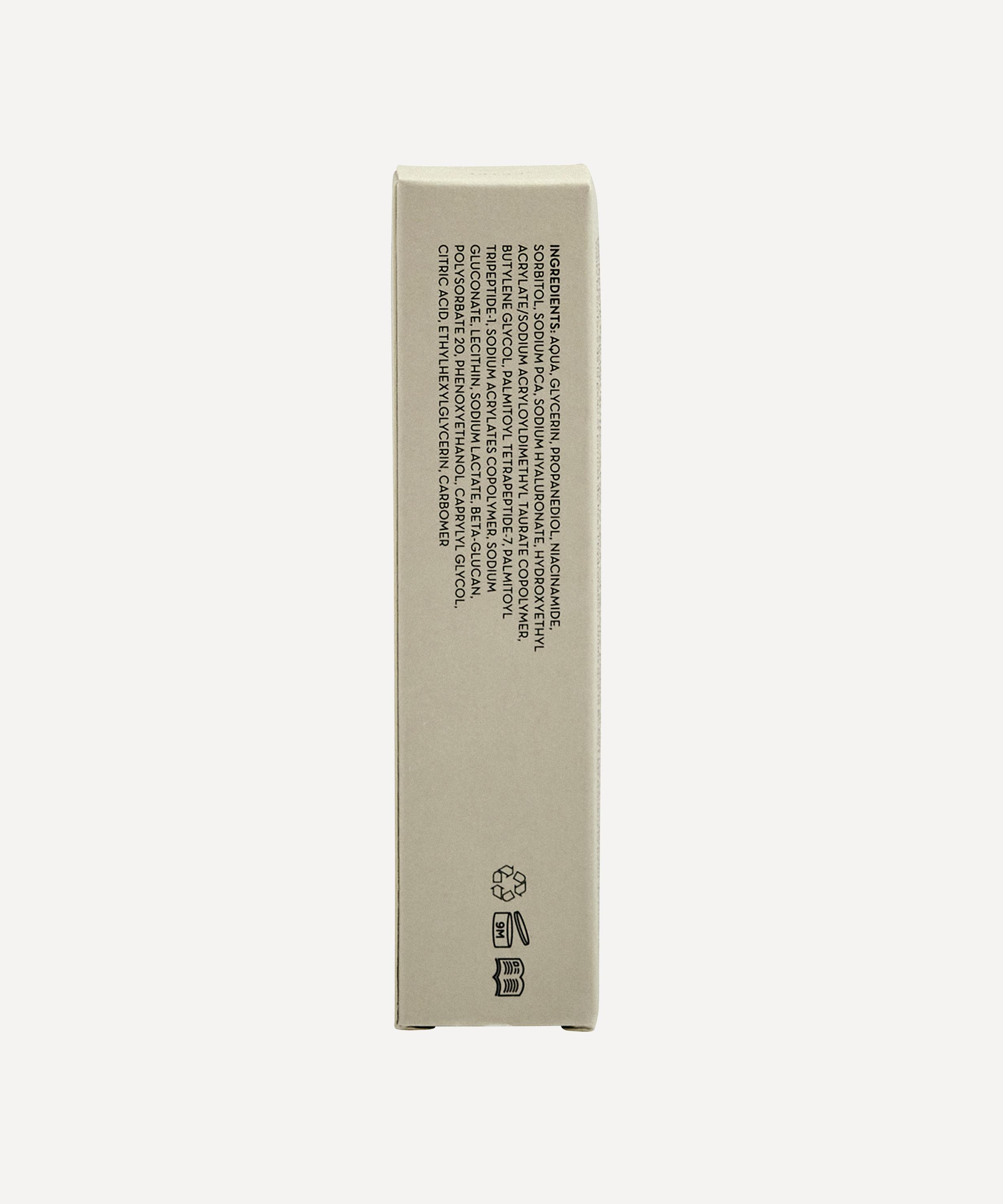 Aqua, Glycerin, Propanediol, Niacinamide, Sorbitol, Sodium PCA, Sodium Hyaluronate, Hydroxyethyl Acrylate/Sodium Acryloyldimethyl Taurate Copolymer, Butylene Glycol, Palmitoyl Tetrapeptide-7, Palmitoyl Tripeptide-1, Sodium Acrylates Copolymer, Sodium Gluconate, Lecithin, Sodium Lactate, Beta-Glucan, Polysorbate 20, Phenoxyethanol, Caprylyl Glycol, Citric Acid, Ethylhexylglycerin, Carbomer