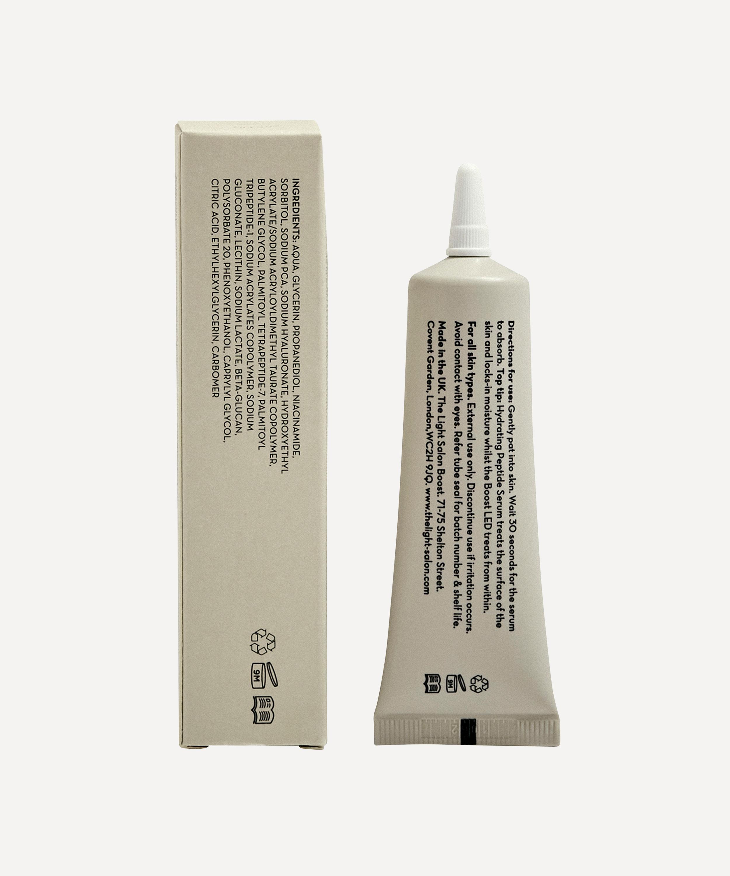 Hydrating Peptide Serum from The Light Salon is a daily serum that can be applied alone or under the Boost LED Mask, to help strengthen, smooth and boost hydration.