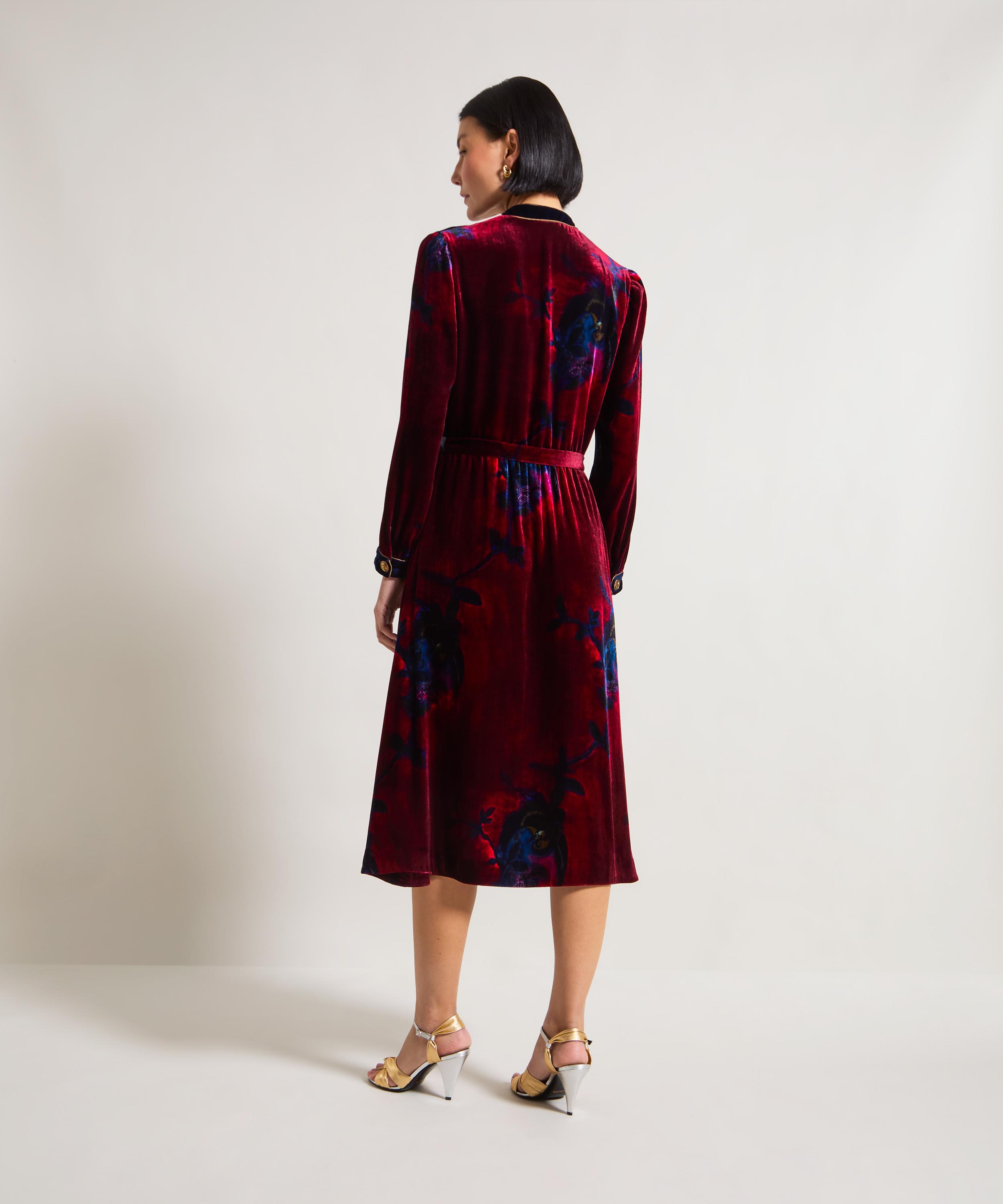 Designed to celebrate our 150th Anniversary, Liberty unveils the Heron Midi Velvet Wrap Dress - a commanding centrepiece from the exclusive Liberty Velvet HYPERNOVA 150 collection by creative director Frida Giannini.