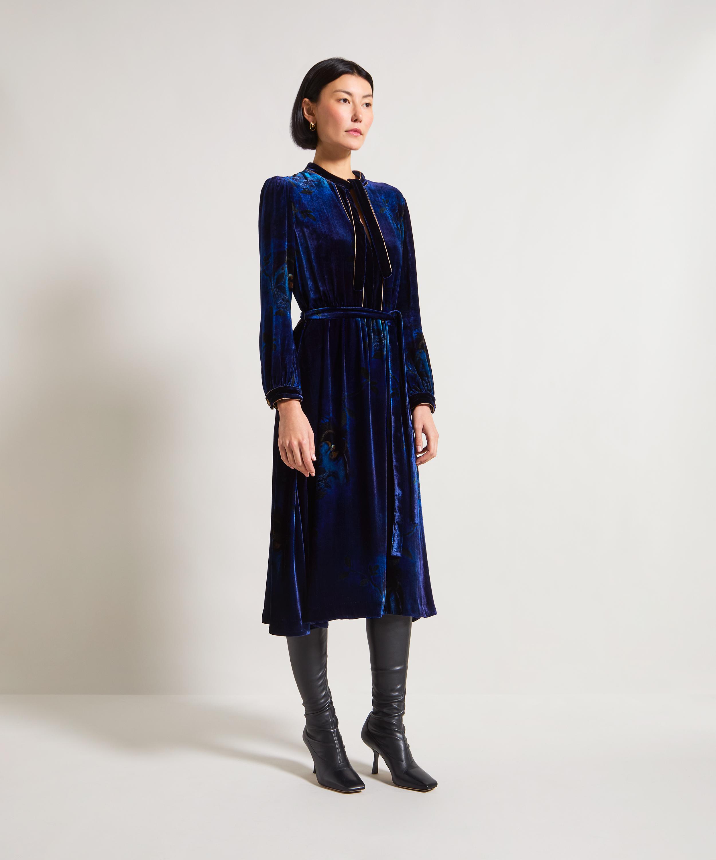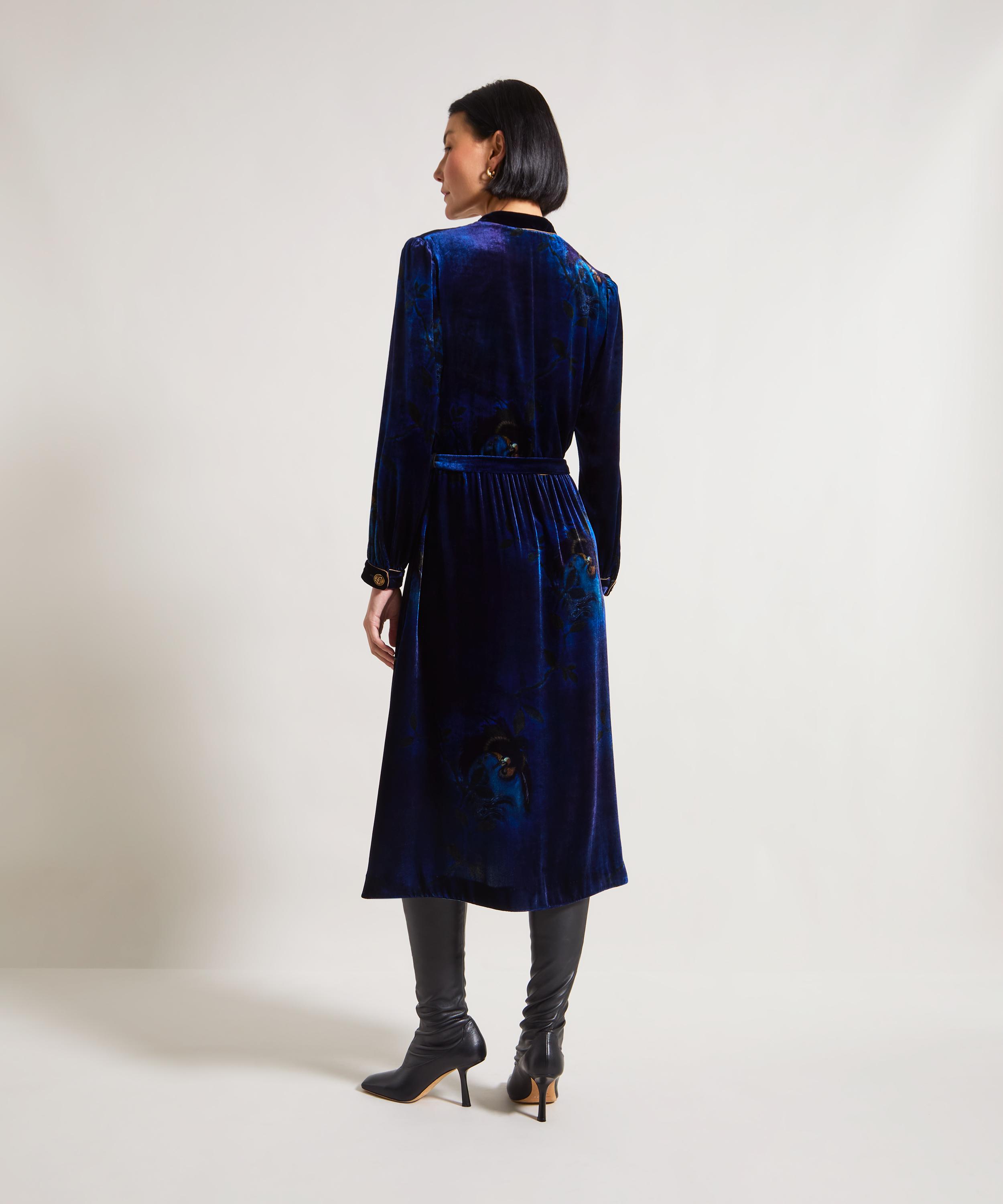 Designed to celebrate our 150th Anniversary, Liberty unveils the Heron Midi Velvet Wrap Dress - a commanding centrepiece from the exclusive Liberty Velvet HYPERNOVA 150 collection by creative director Frida Giannini.