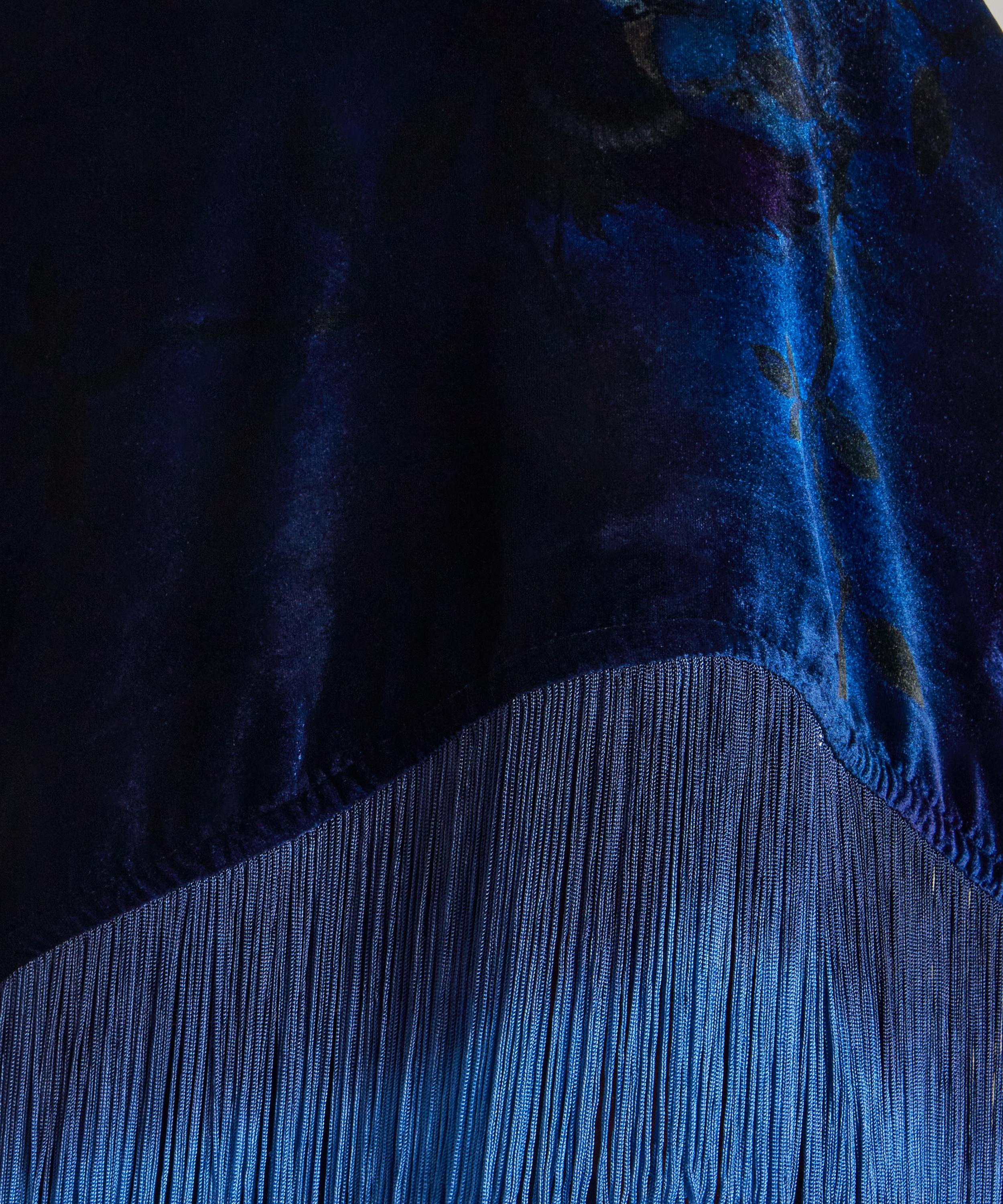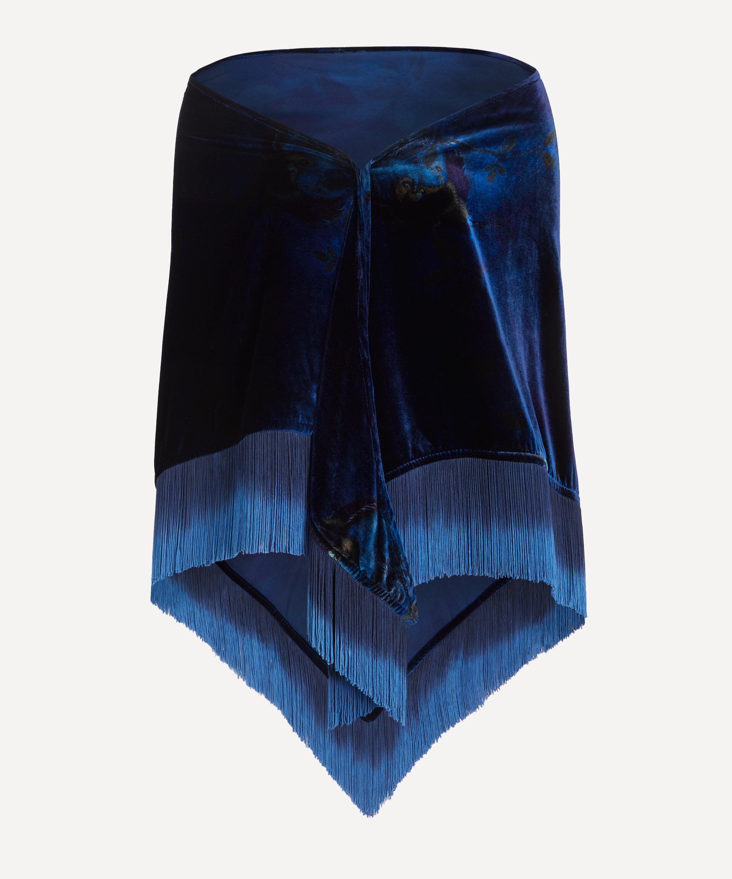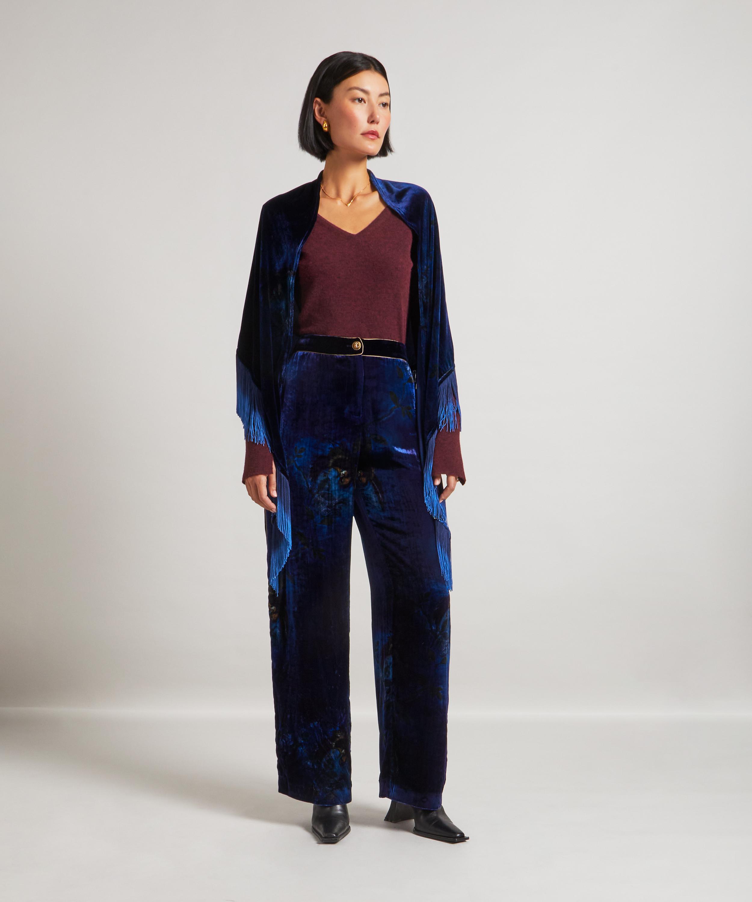 Masterfully crafted in Italy from a luxurious and ultra-soft velvet, it’s defined by elegant ombre fringing and our iconic Heron print – featuring a reinterpretation of Dutch Stork, a 1920s scarf print from the Liberty archive, now modernised through scale, colour and a sharper contemporary lens. Imbued with a subtle rock-and-roll attitude, it reflects both Giannini’s signature aesthetic and Liberty’s avant-garde spirit. Perfect for layering, try draping it over neutral outerwear for a bold style statement or experiment with monochromatic looks.
