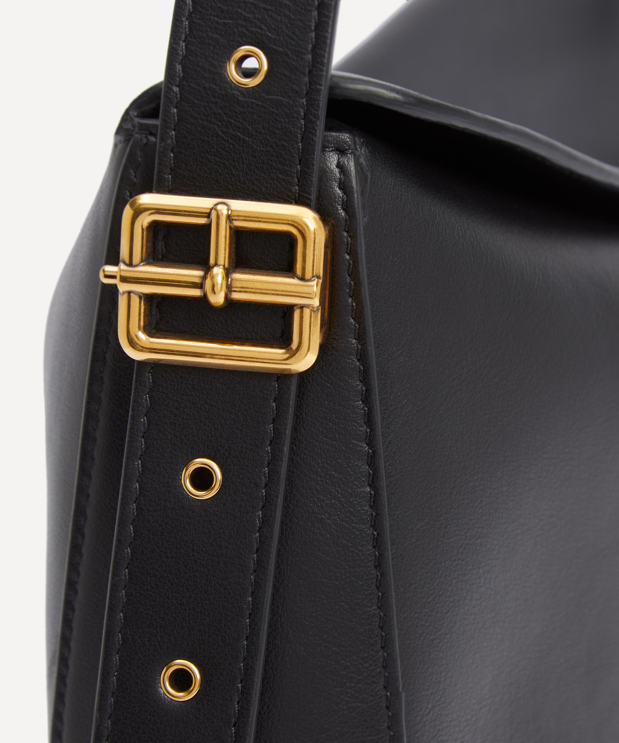 Masterfully crafted in Italy from smooth, supple leather with our custom Hypernova printed lining, The City Bucket Bag features a streamlined silhouette with a handy internal zip pocket and a beautiful, slouched flap and magnetic closure. Defined by a deco-inspired double L logo – an emblematic signature of the collection, it blends functionality with a refined edge through its sleek leather strap and bespoke buckle, custom-crafted to adjust the fit whilst adding a quiet note of luxury to its clean, modern design.
