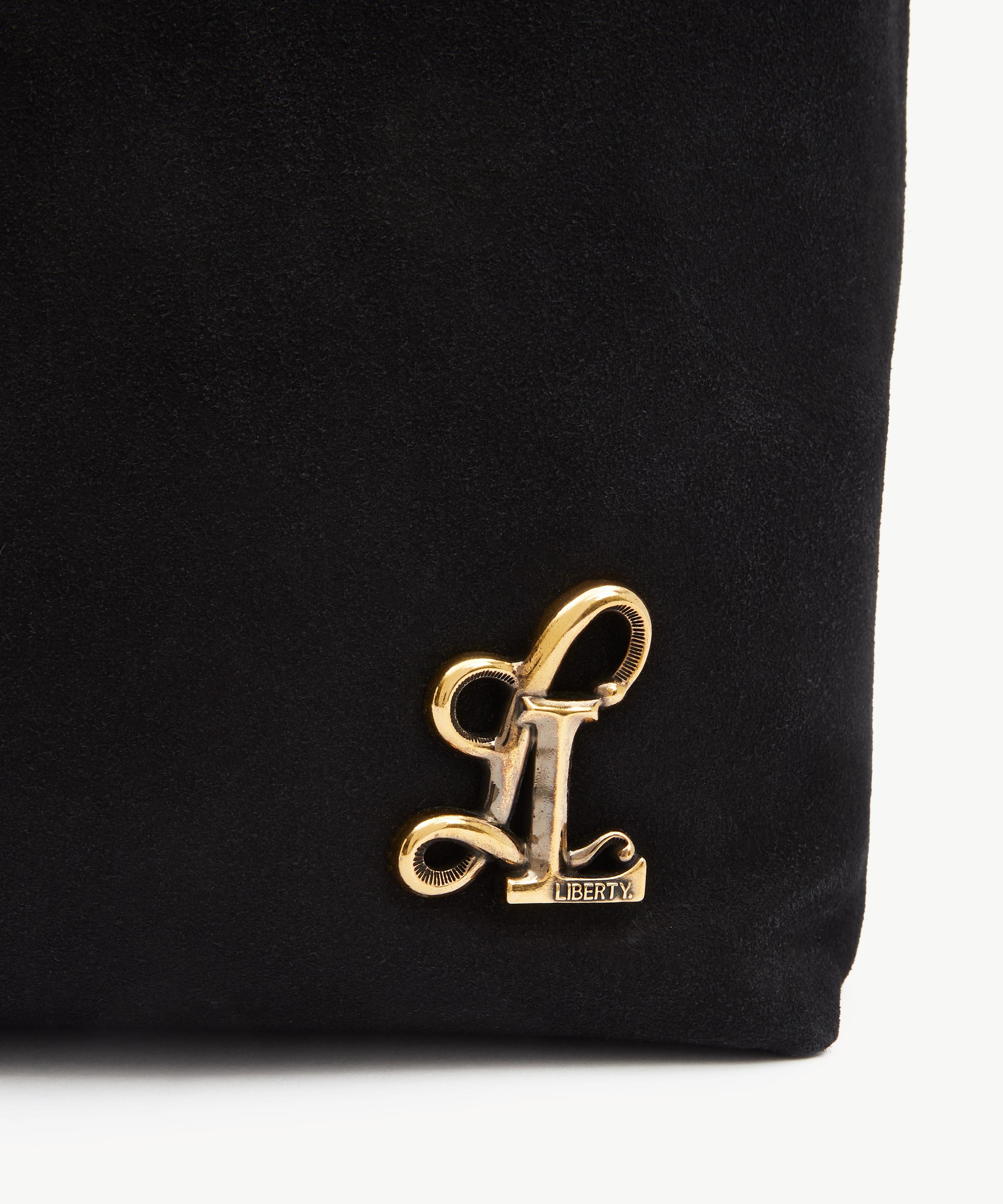 Masterfully crafted in Italy from ultra-soft suede, The Covent Tote Bag features a streamlined silhouette with a spacious interior. Defined by a deco-inspired double L logo – an emblematic signature of the collection, it blends functionality with a refined edge through its precision topstitching and internal pocket, perfect for valuables and small essentials. Complete with two top handles, it can be worn over the shoulder or carried by hand.