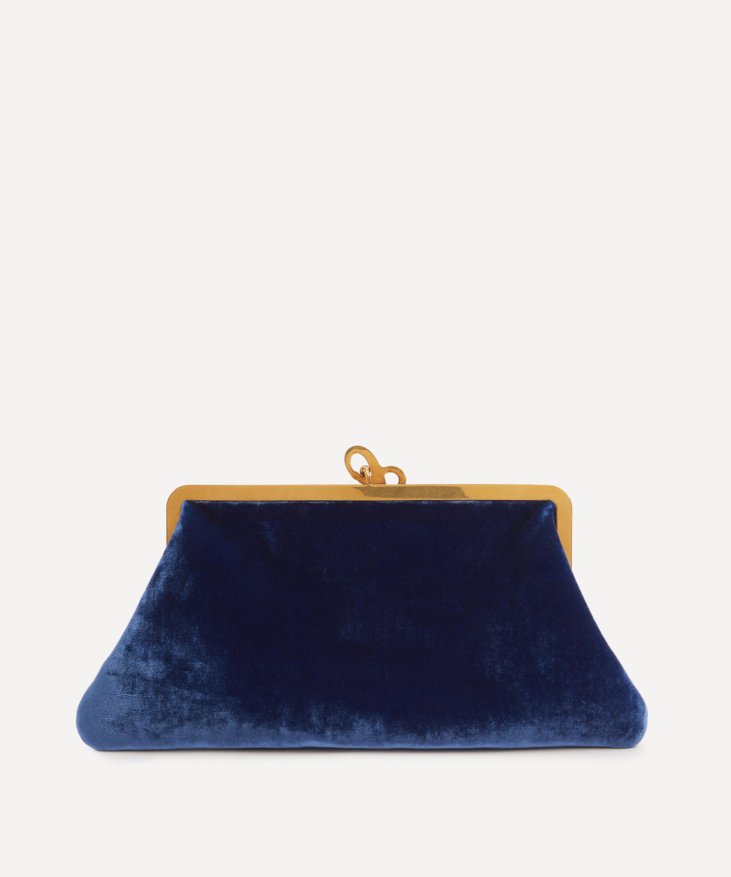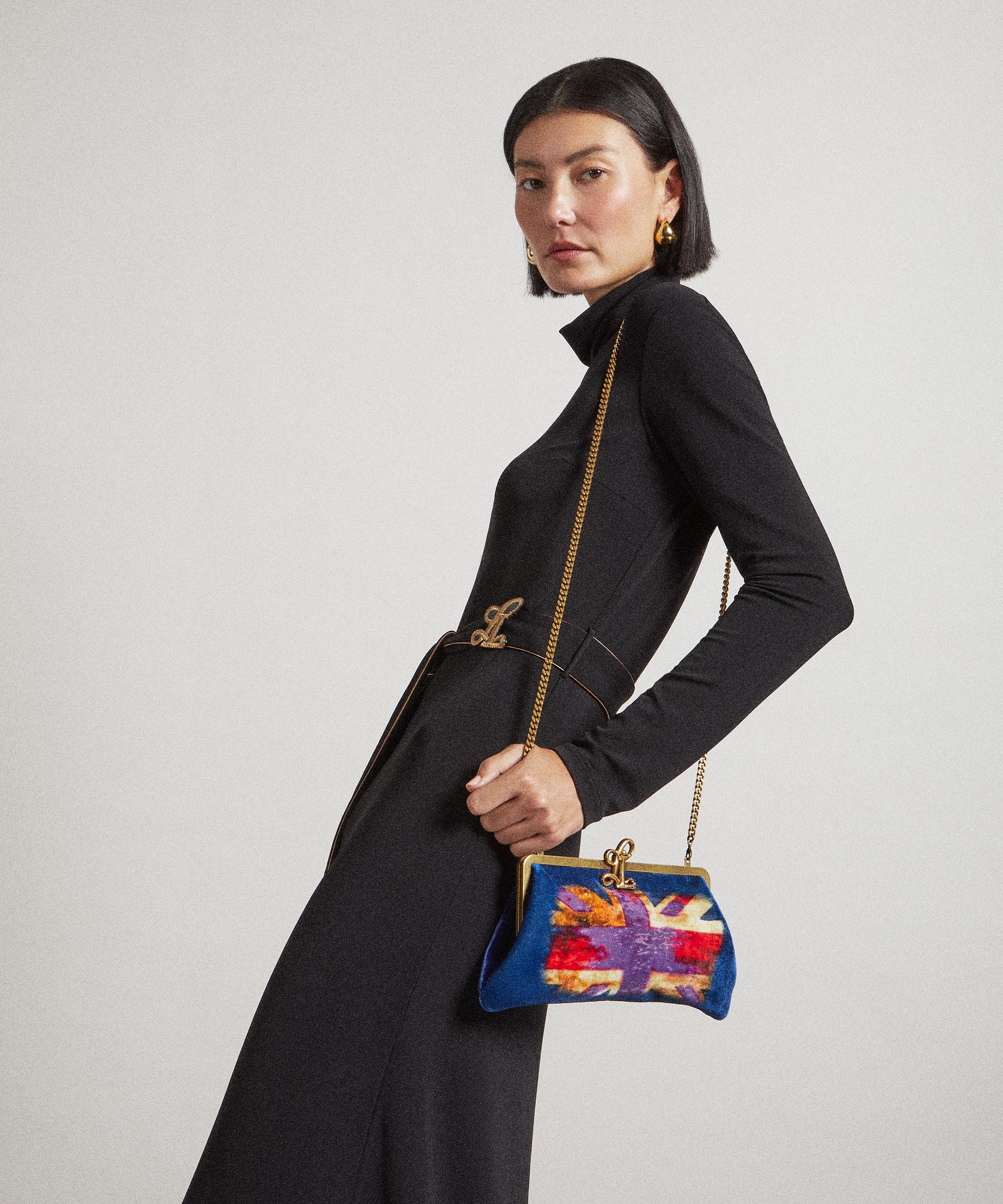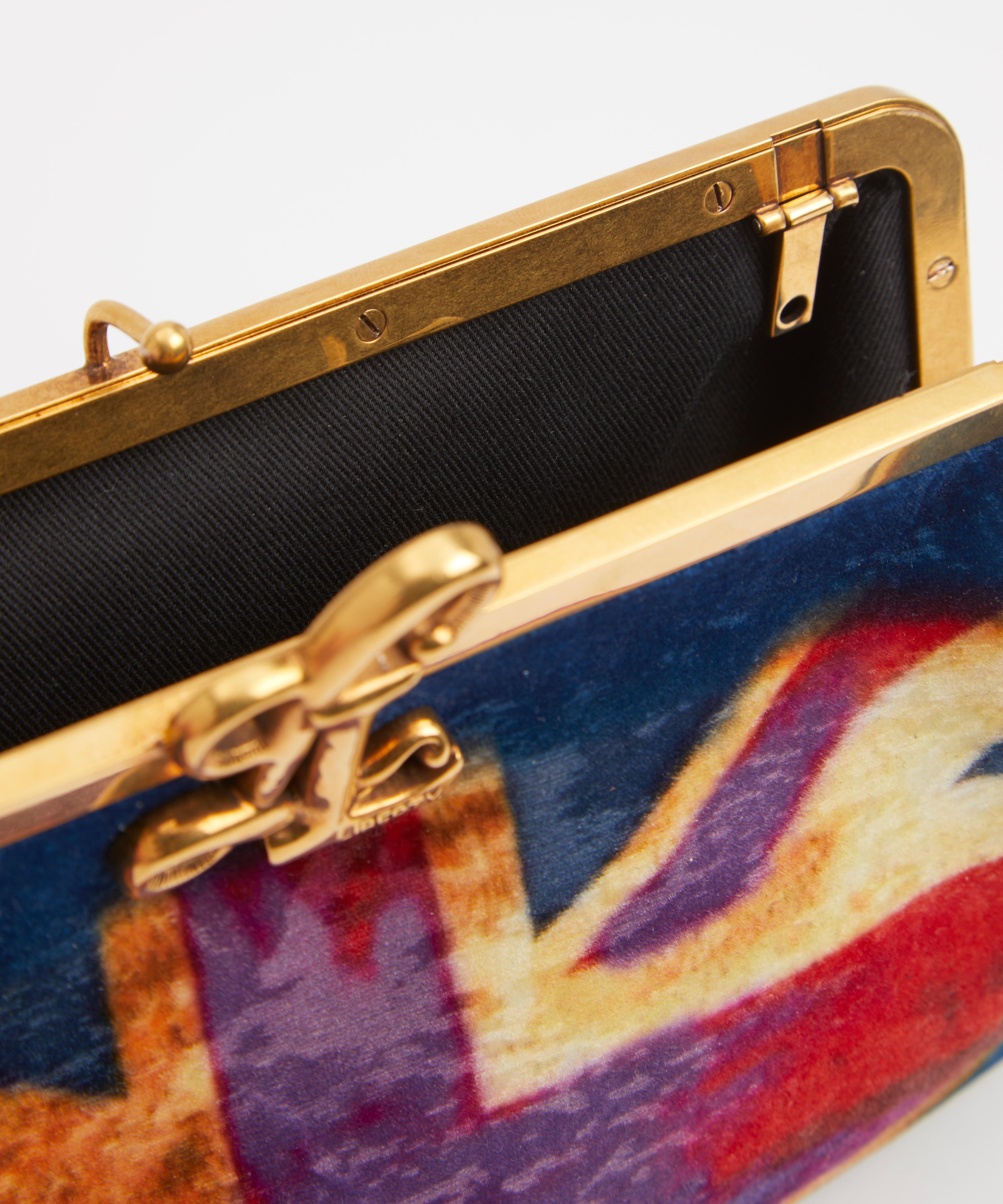 Masterfully crafted in Italy, The Hypernova Clutch Bag features a velvet devoree with our custom Hypernova print. Defined by a deco-inspired double L clasp – an emblematic signature of the collection, it blends functionality with a refined edge through elegant frame hardware and an internal card pocket. Complete with a detachable gourmette chain strap, it can be worn over the shoulder or tucked neatly under your arm as a clutch.