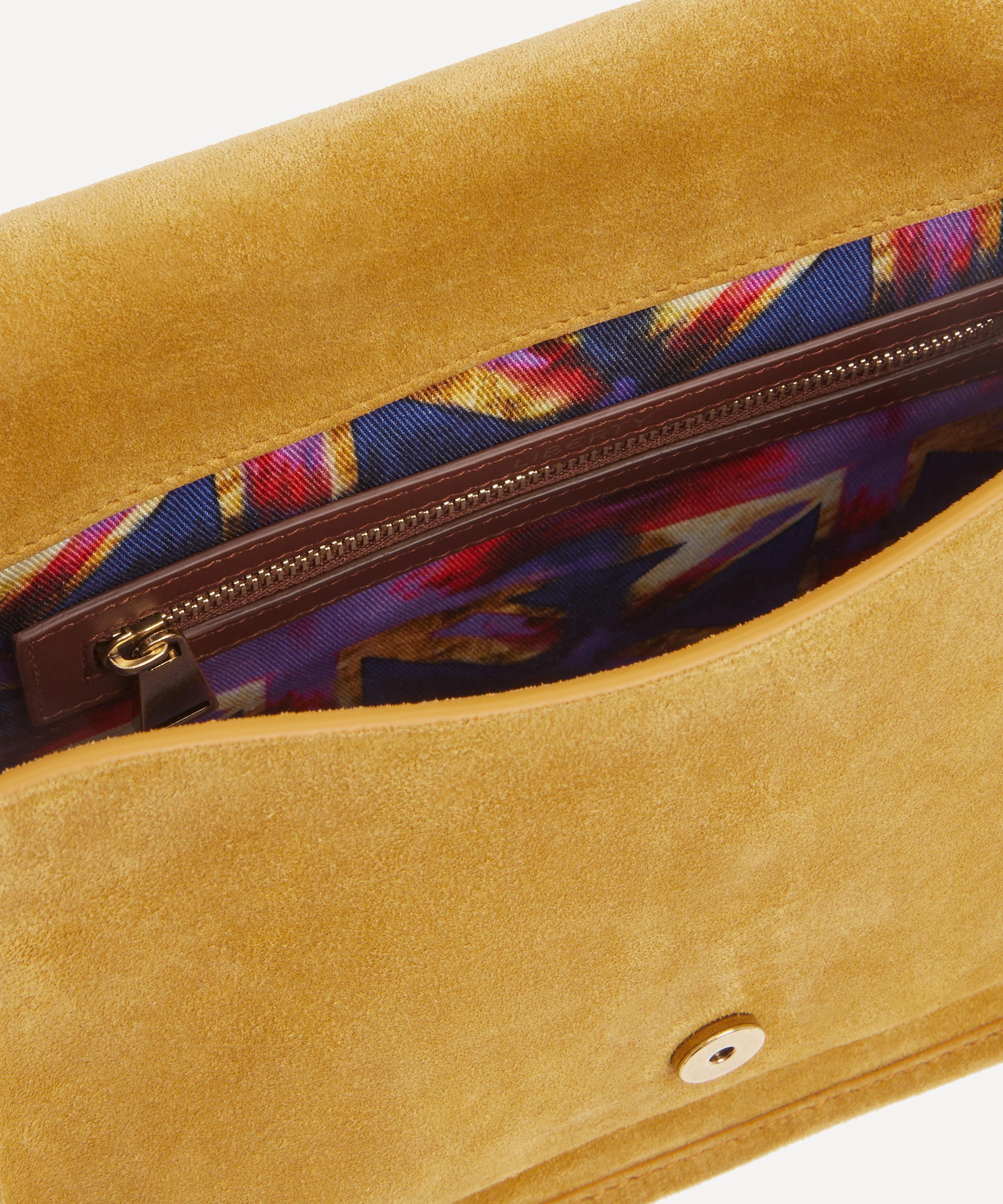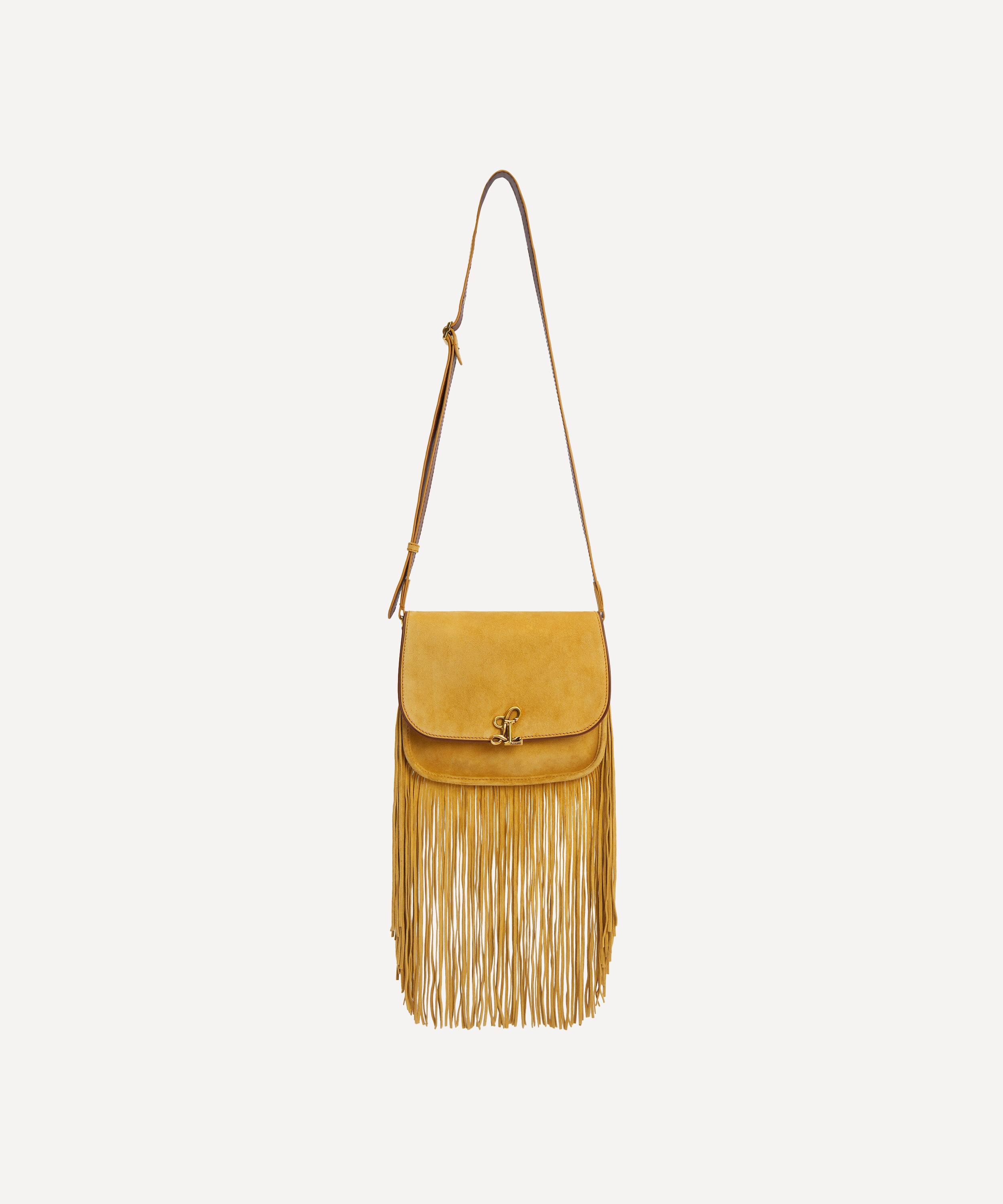 Masterfully crafted in Italy from ultra-soft suede with our custom Hypernova printed lining, The Swing Bag features a streamlined silhouette with an elegant front flap. Defined by a deco-inspired double L clasp – an emblematic signature of the collection, it blends functionality with a refined edge through its spacious interior and cascading leather fringes that sway gracefully with every step. Perfect for day-to-evening looks, it's complete with an adjustable strap that can be worn over the shoulder or across the body.