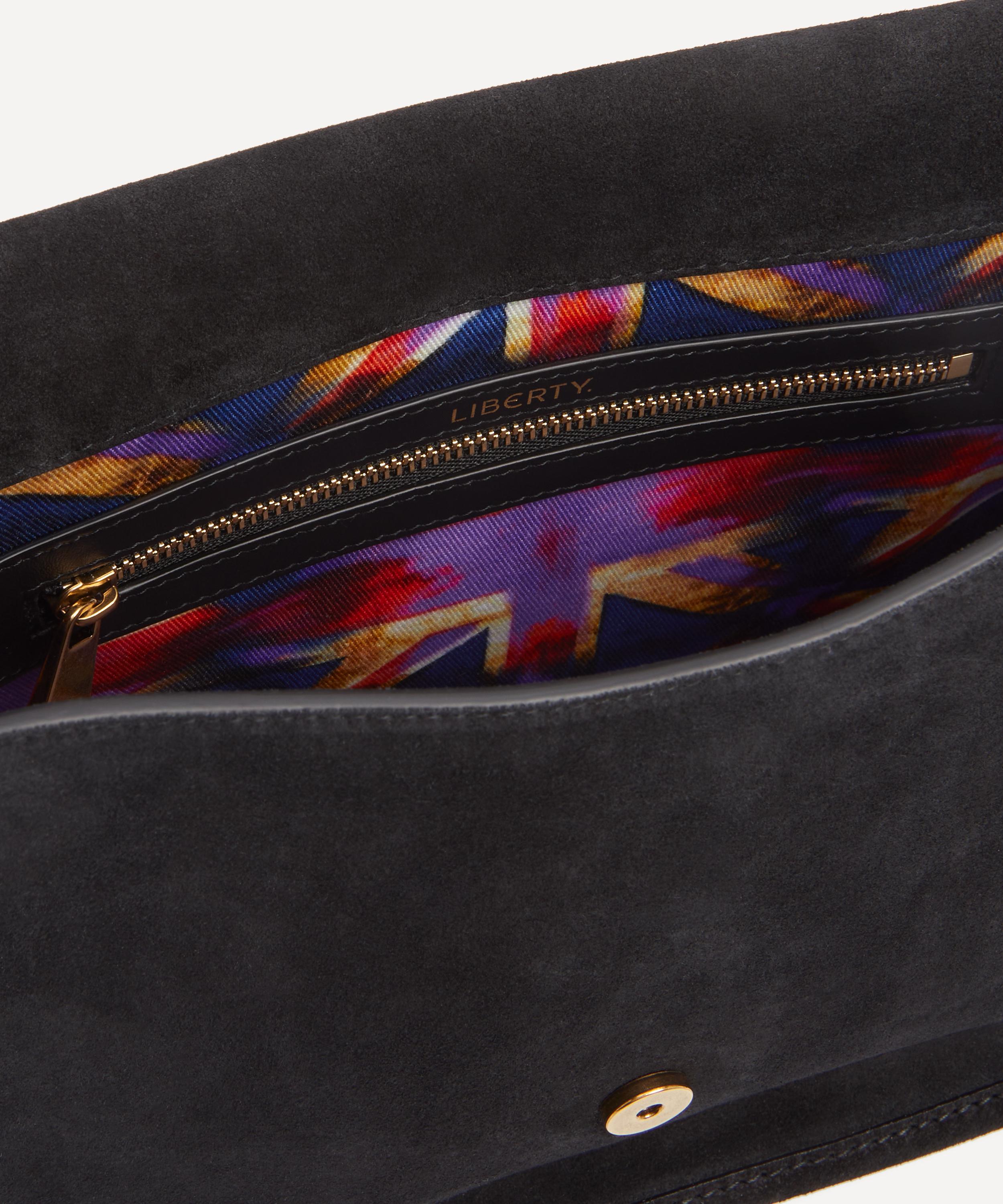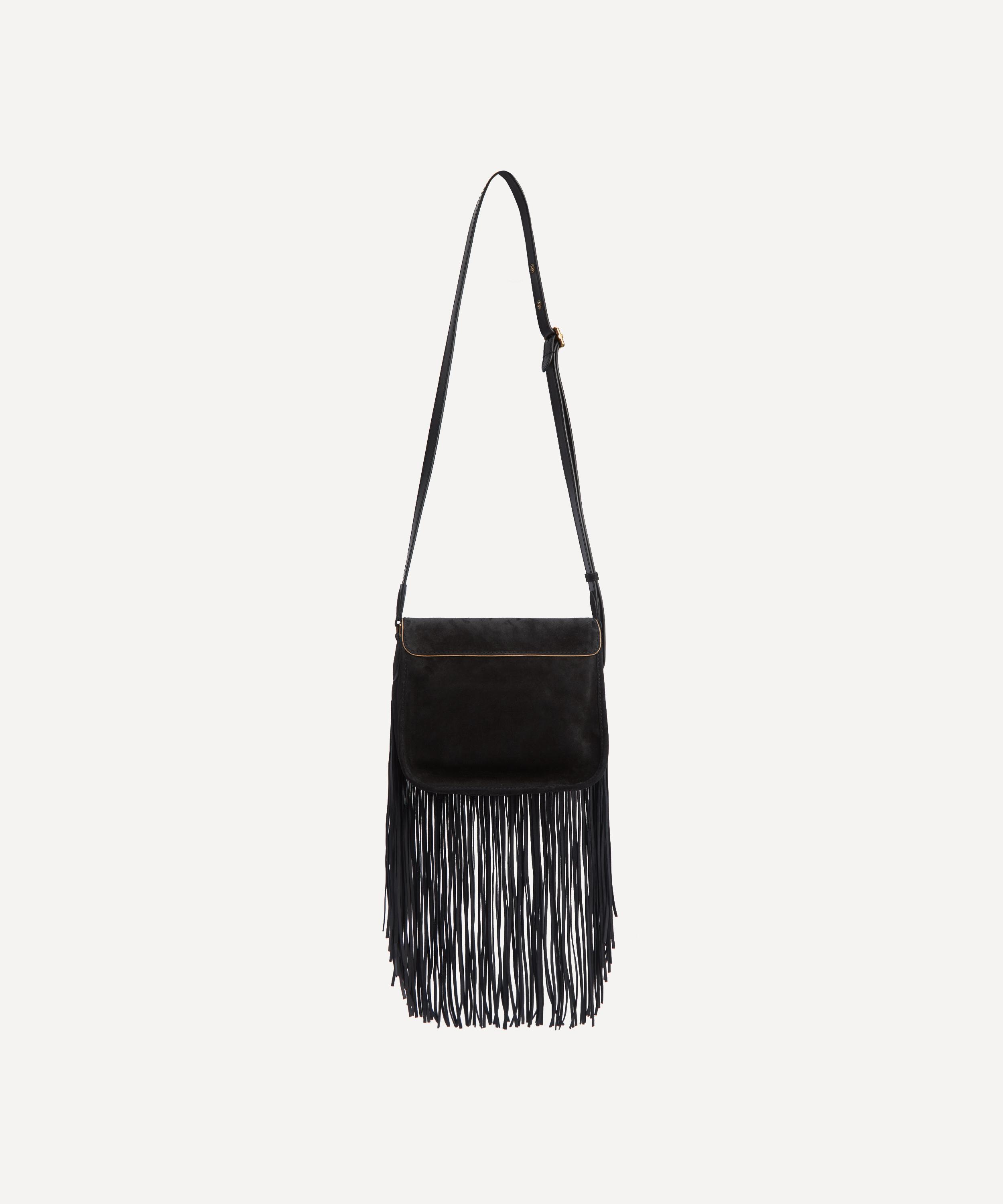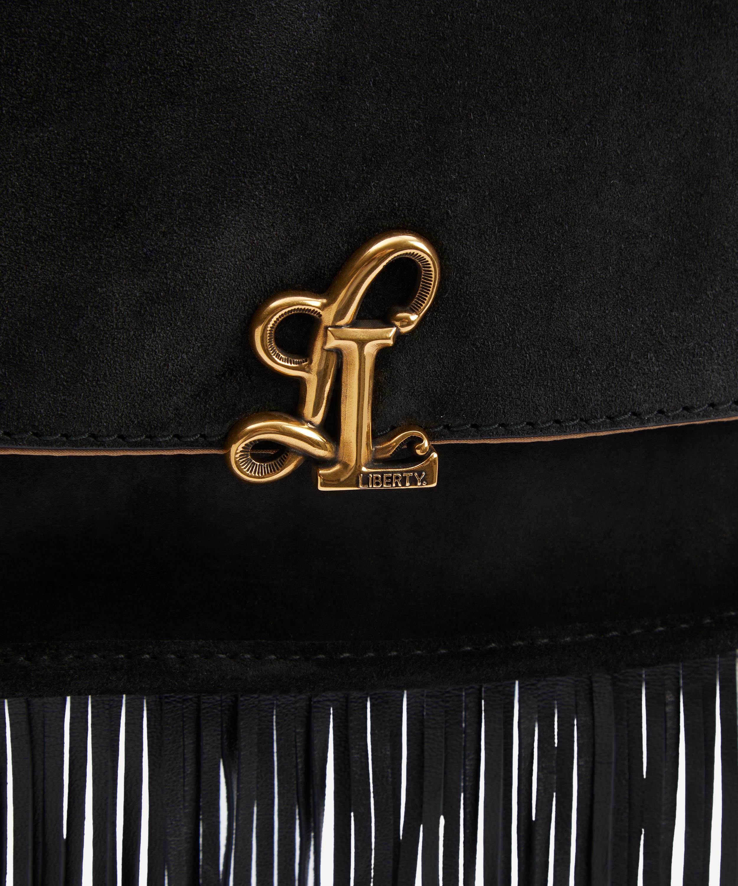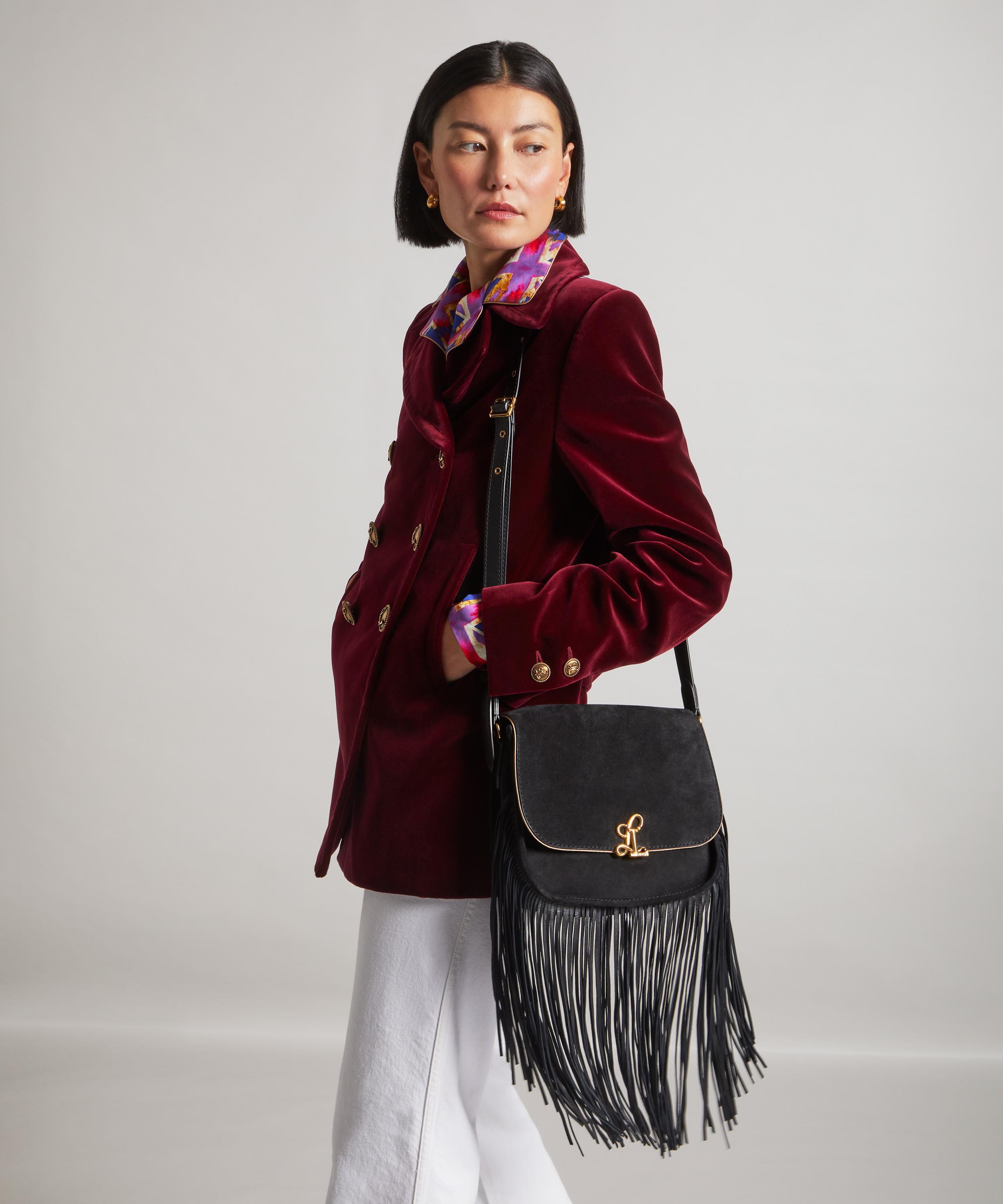 Masterfully crafted in Italy from ultra-soft suede with our custom Hypernova printed lining, The Swing Bag features a streamlined silhouette with an elegant front flap. Defined by a deco-inspired double L clasp – an emblematic signature of the collection, it blends functionality with a refined edge through its spacious interior and cascading leather fringes that sway gracefully with every step. Perfect for day-to-evening looks, it's complete with an adjustable strap that can be worn over the shoulder or across the body.