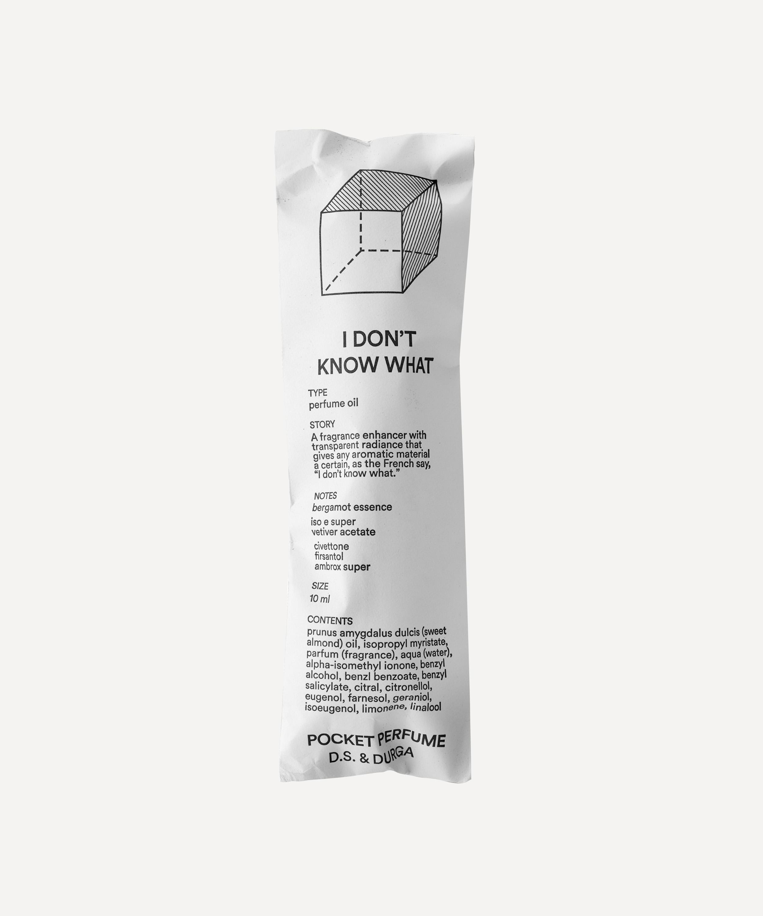 D.S. & Durga's I Don’t Know What pocket perfume is a travel-friendly oil-based fragrance enhancer that can be used with any perfume, essence or oil to give it a certain "je ne sais quoi".
