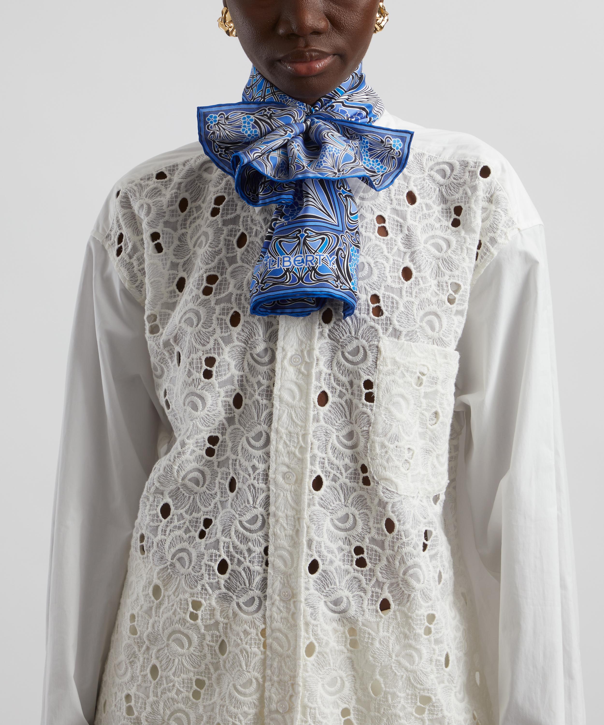 The Ianthe scarf from Liberty is crafted from rich silk twill and expertly printed in Italy with a design created in our London studio – a life-long modern icon to brighten up daily dressing. Whether looped around your neck or slipped through the handles of a tote, a Liberty scarf is a heroine of versatile styling. This silk scarf is printed with Ianthe – originally a wallpaper design by a French artist from 1902. First printed as a Liberty dress fabric in 1967, it was reworked in 2012 to emphasise the design’s rich, decorative nature.