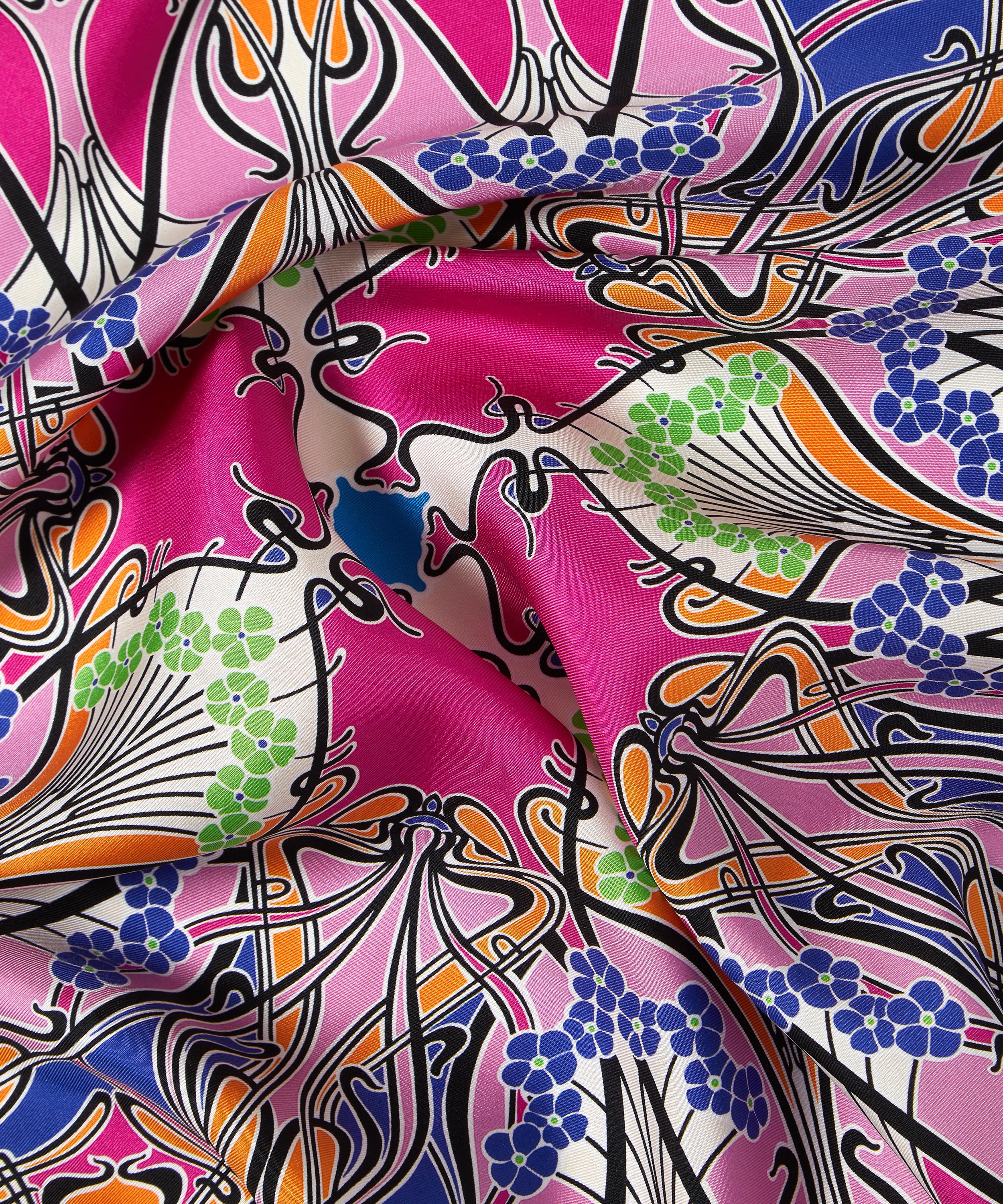 The Ianthe scarf from Liberty is crafted from rich silk twill and expertly printed in Italy with a design created in our London studio – a life-long modern icon to brighten up daily dressing. Whether looped around your neck or slipped through the handles of a tote, a Liberty scarf is a heroine of versatile styling. This silk scarf is printed with Ianthe – originally a wallpaper design by a French artist from 1902. First printed as a Liberty dress fabric in 1967, it was reworked in 2012 to emphasise the design’s rich, decorative nature.