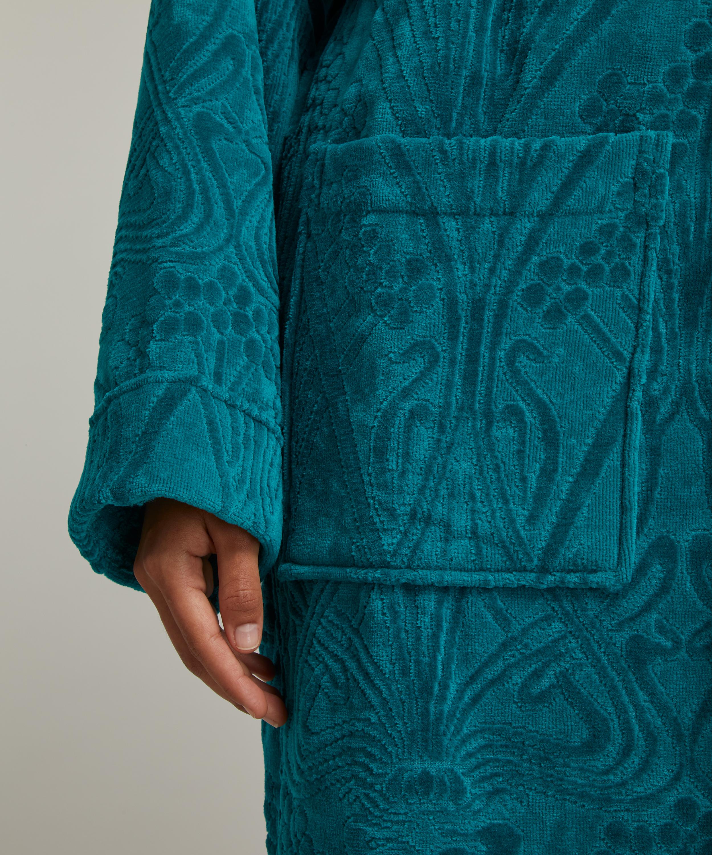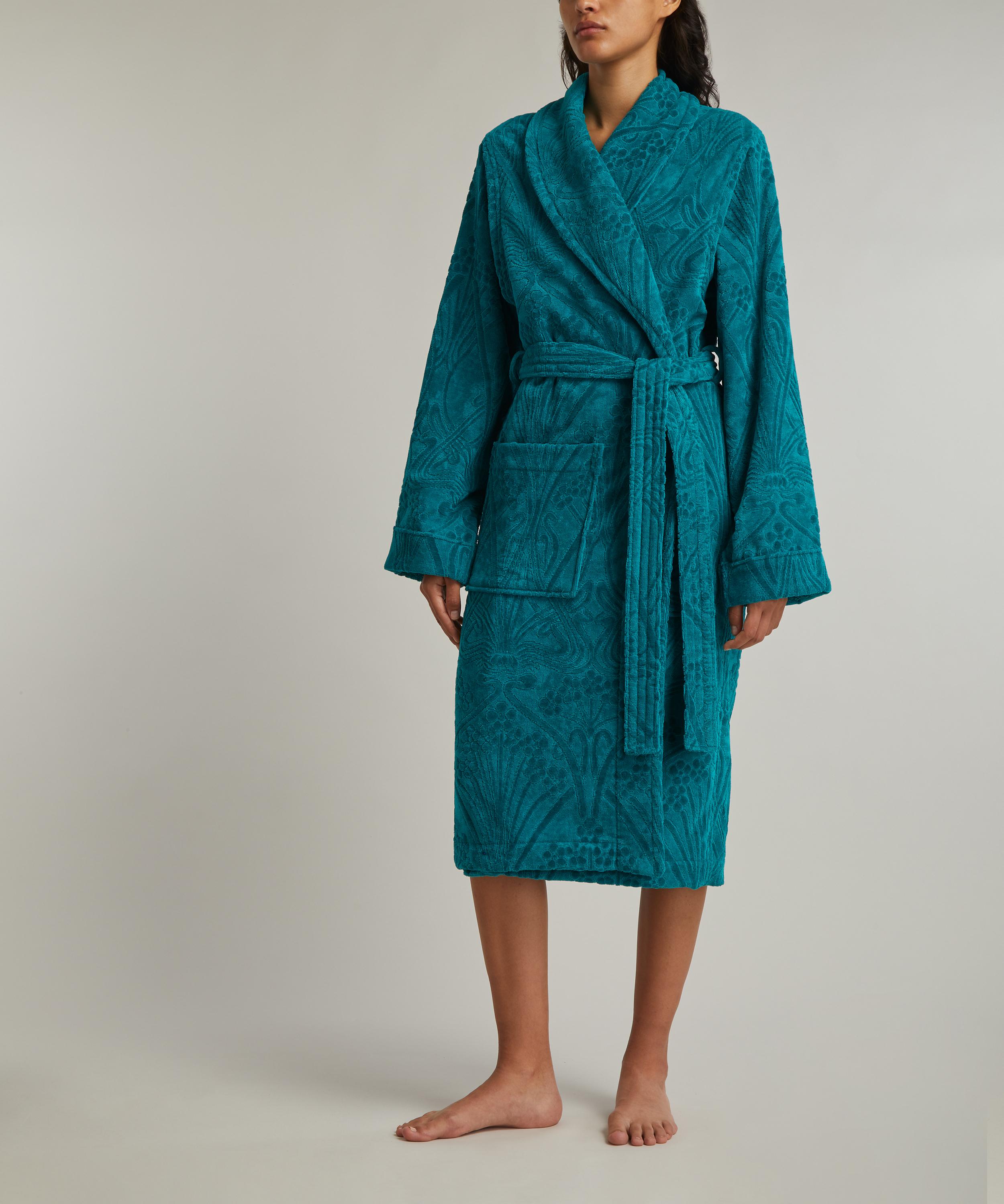 Cosy up in style with the Ianthe towelling robe – featuring our Ianthe design in a sumptuously soft cotton that will effortlessly infuse your bathroom set-up with a touch of print.