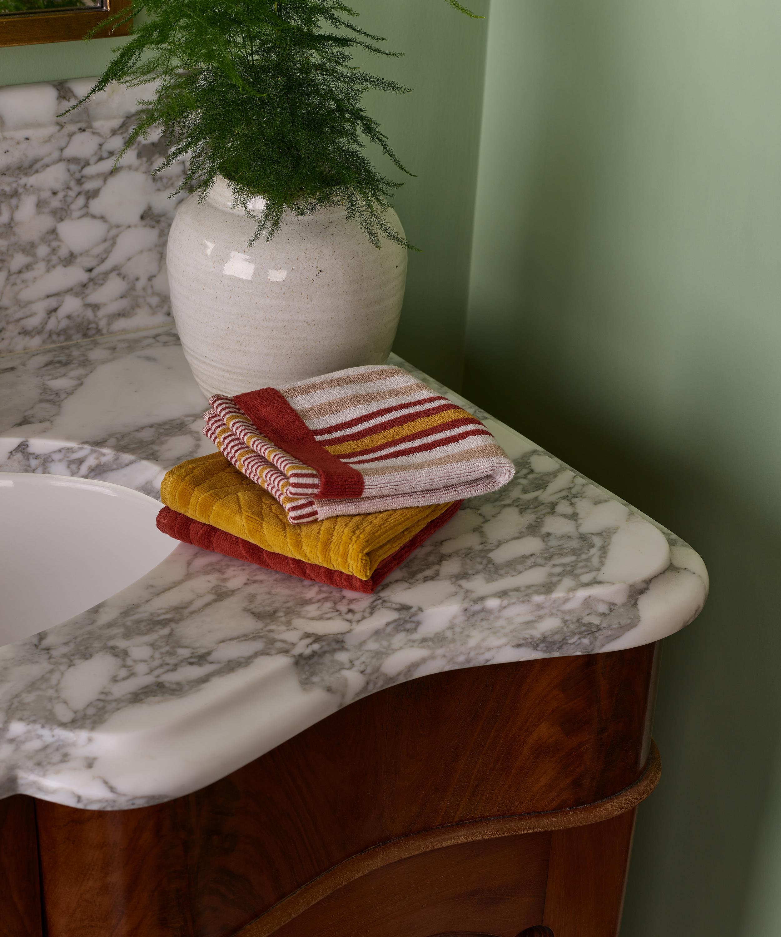 Elevate your space with the Ianthe face cloths – featuring four sumptuously soft cotton cloths in our Ianthe design that will effortlessly infuse your bathroom set-up with a touch of print.
