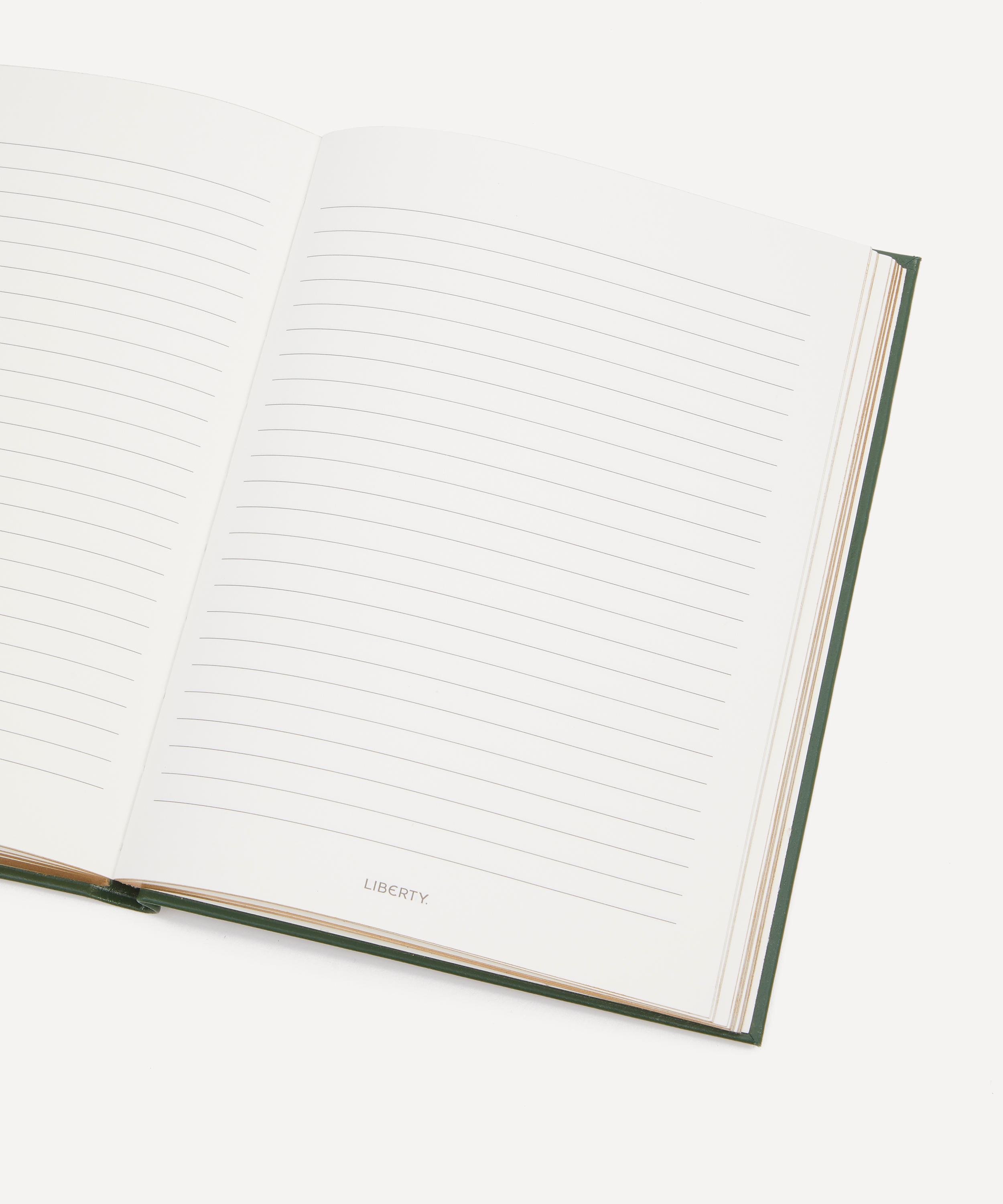 An elegant addition to your desk or handbag, this large leather Liberty notebook features our iconic Ianthe print in embossed form, adding a hint of character and dimension to your journalling. Bound and boasting a metallic trim around each page, consider this your new go-to for flashes of inspiration – or for simply recording your brightest thoughts and ideas.