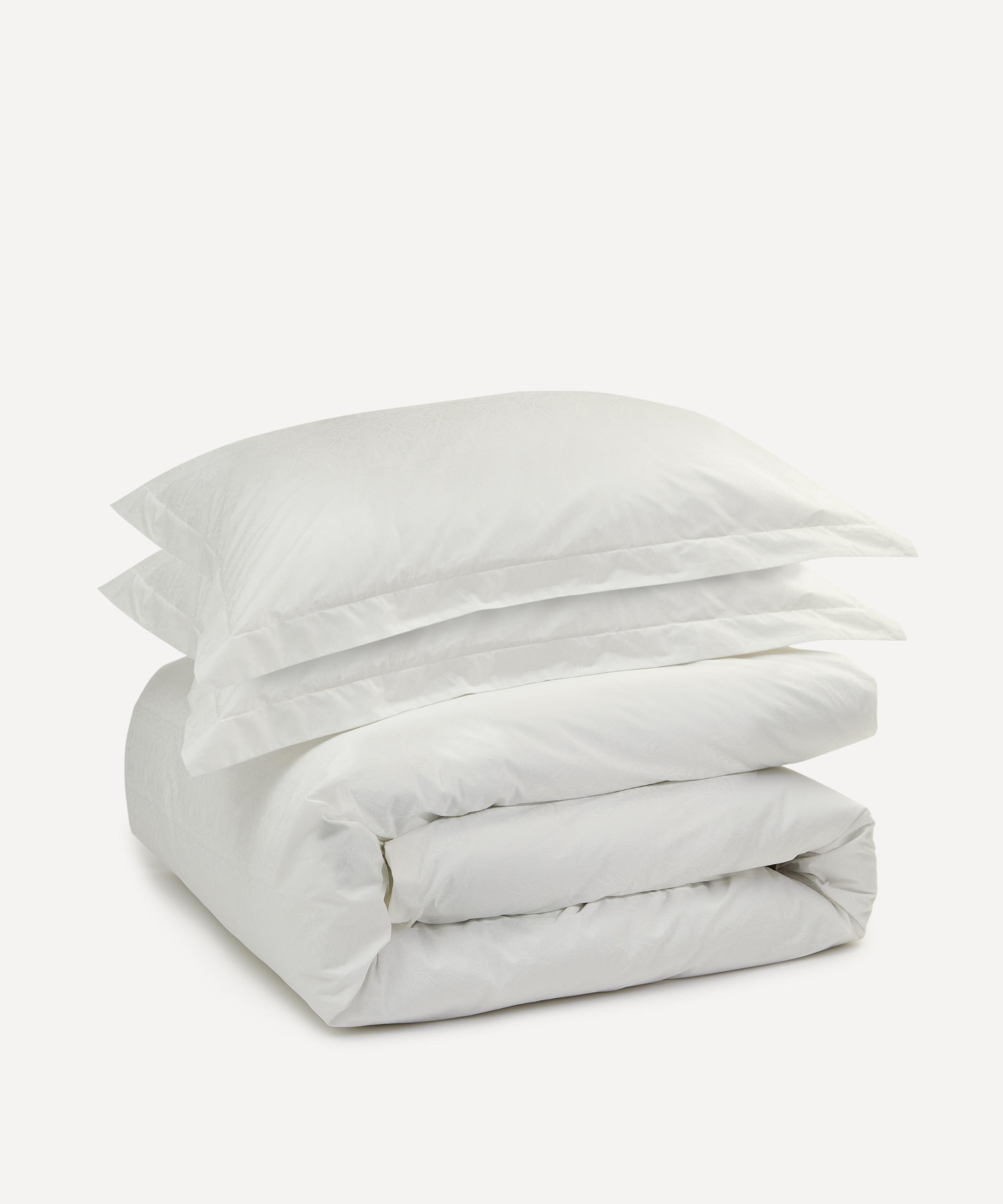 Liberty’s Ianthe Bloom duvet set features two standard pillowcases and a double duvet cover, all crafted from luxurious cotton bonneville – a silky-smooth and soft material with a lightweight finish. Printed at our very own Italian fabric mill, Ianthe was originally devised as a wallpaper border in c.1902 by French artist René Beauclair and reimagined for the ‘swinging London’ market by the Haward Studio, a family textile firm who sold designs to Liberty for three generations, from the Edwardian era to the 1980s. A white on white design, this set is perfect for incorporating a touch of print alongside a minimalist bedroom set-up.