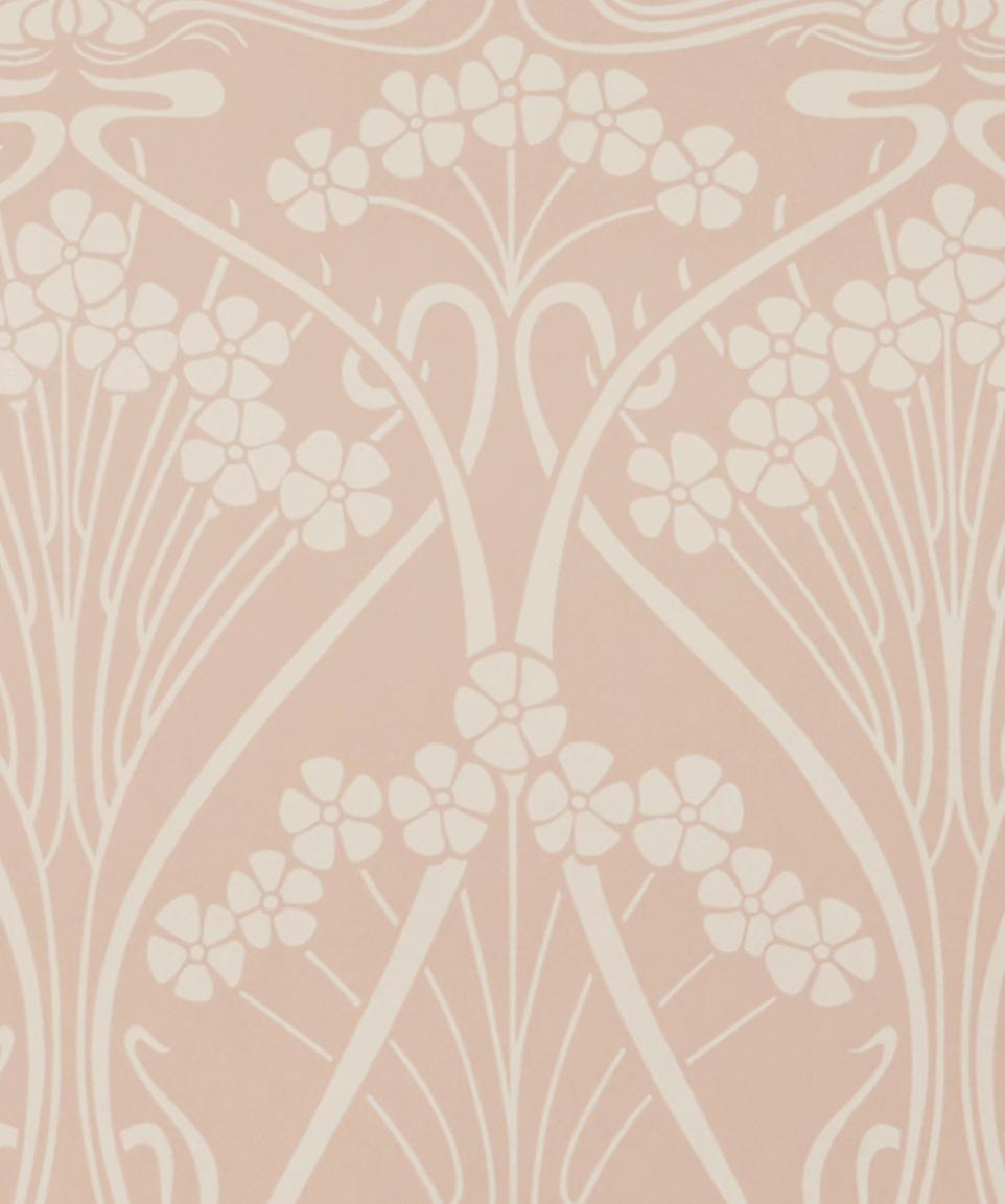Ianthe is a quintessential example of French Art Nouveau design, originally created as a wallpaper border by artist R. Beauclair in c.1902 and printed for Liberty in 1967. Ianthe Mono is a one-colour version of Ianthe – discovered hidden in the archive, it evokes the forms first used by Liberty in the ‘60s. The textured non-woven ground is softly visible through the chalky pigments layered on top.
