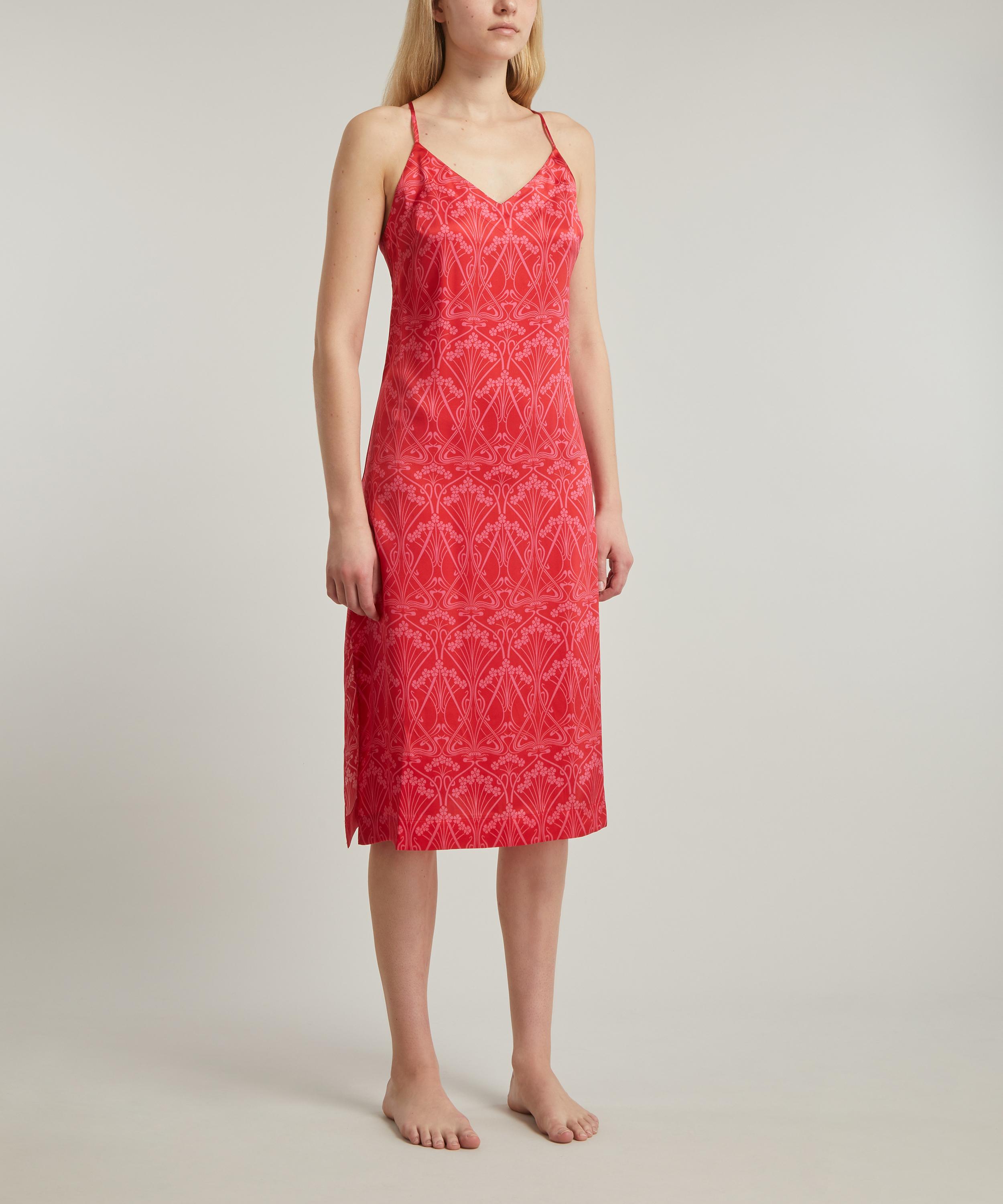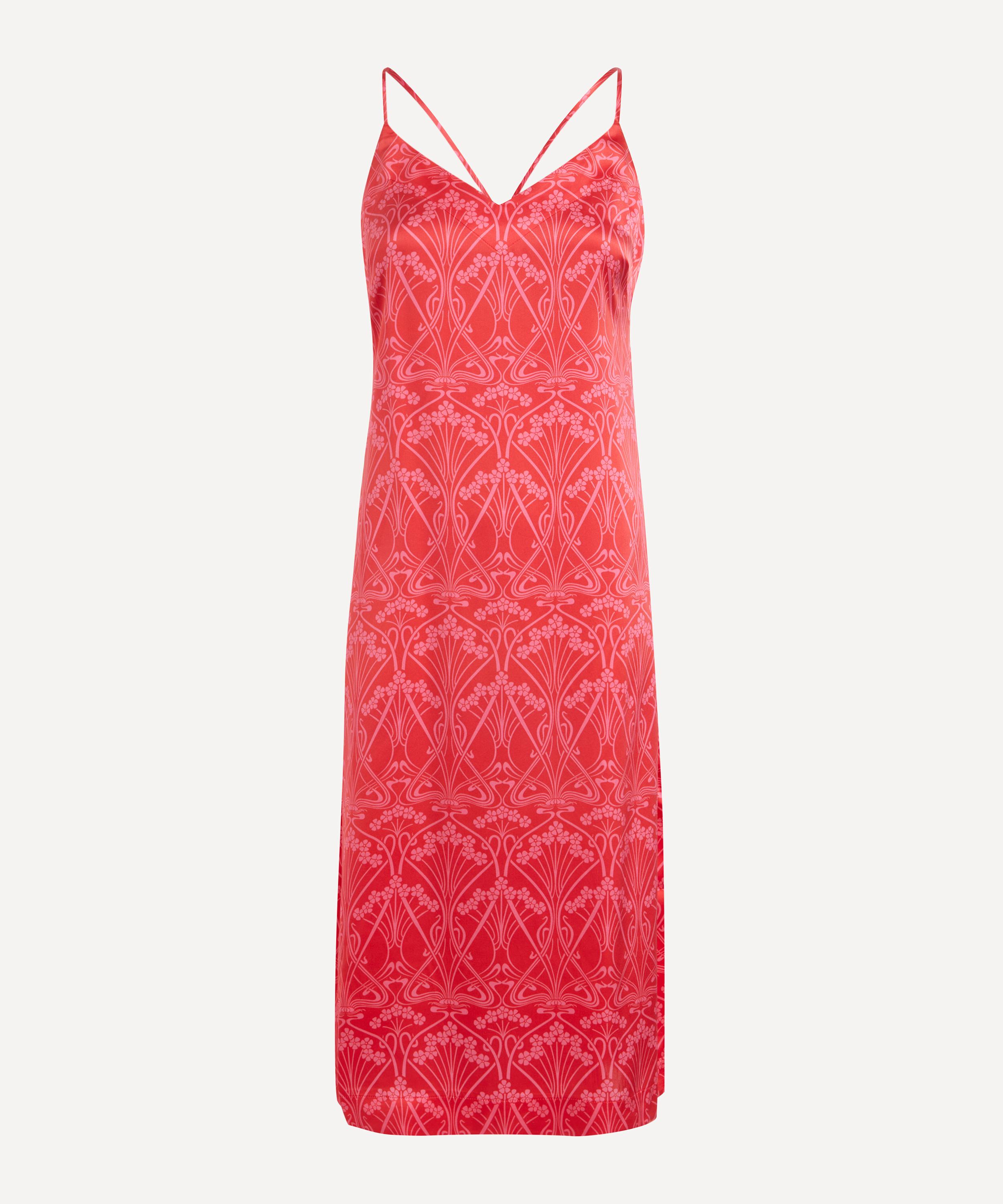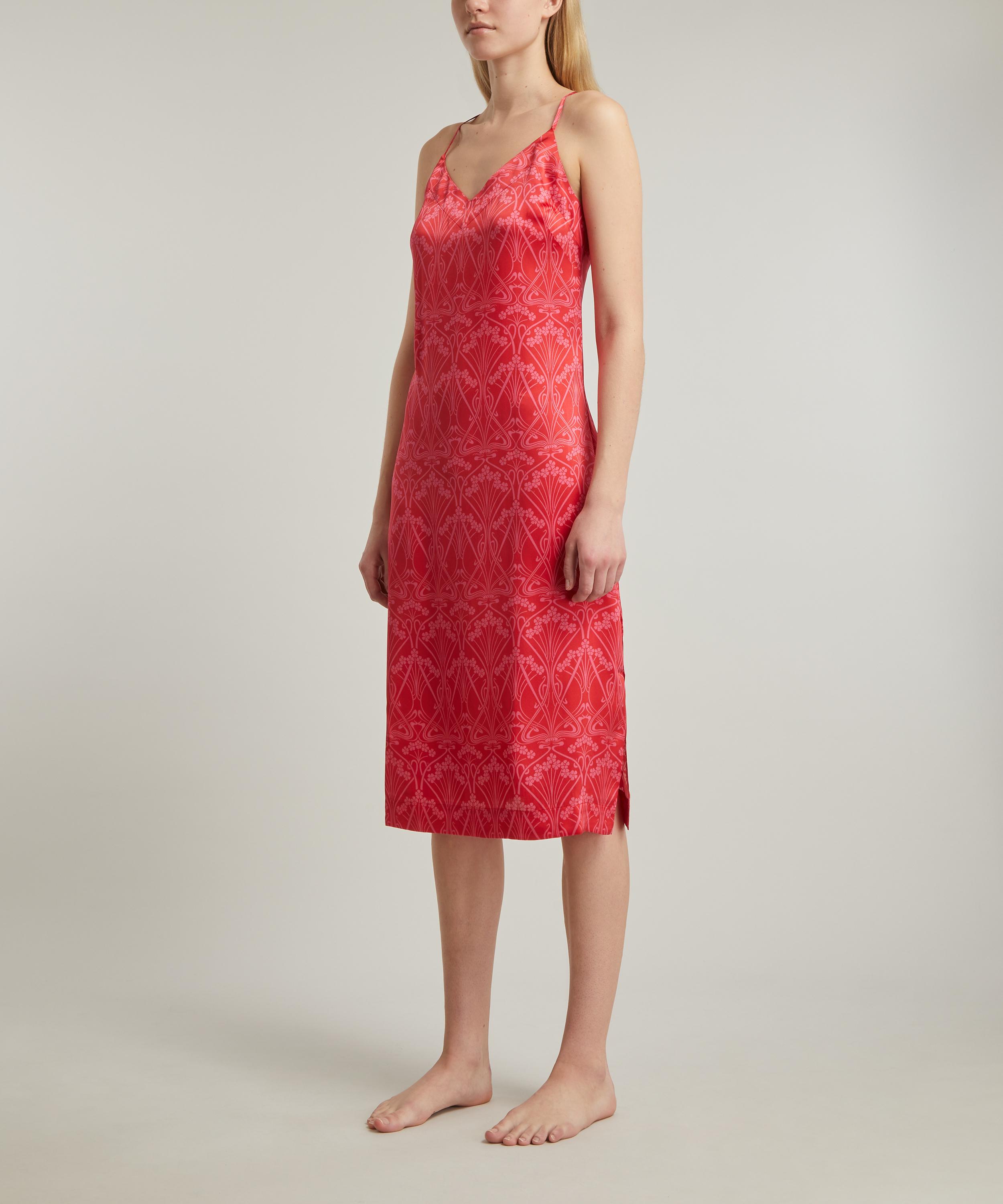 Expertly crafted from a sumptuously soft 16 momme charmeuse silk satin for fluid softness and lustre, showcasing Liberty's iconic Ianthe print in brilliant, vivid colour - finished with adjustable straps which cross over at the back, this luxurious midi-length nightie is the last word in cult luxury nightwear.