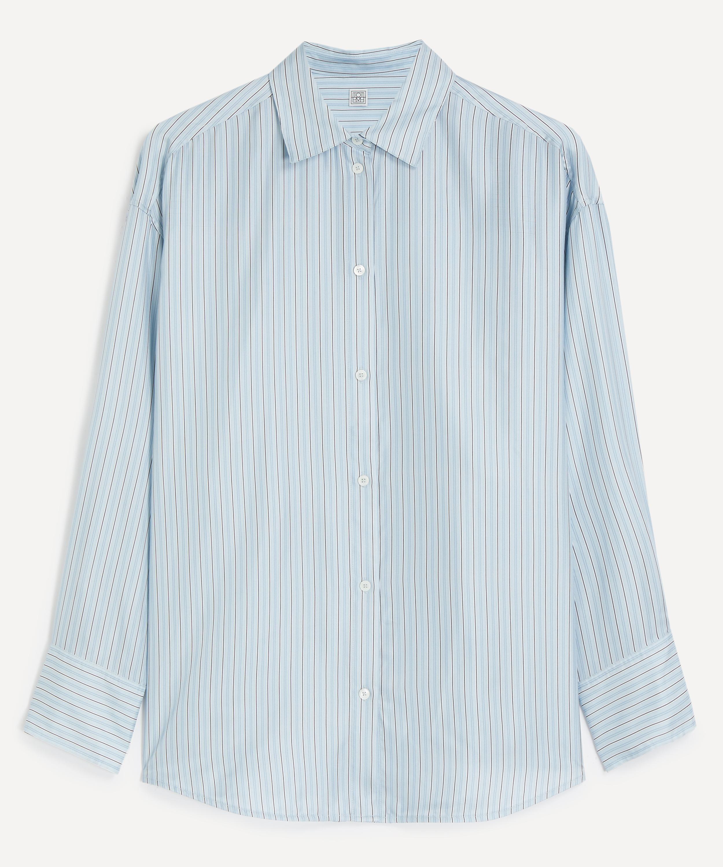 TOTEME's signature craftsmanship is showcased in the Ice-White Oversized Silk Striped Shirt.