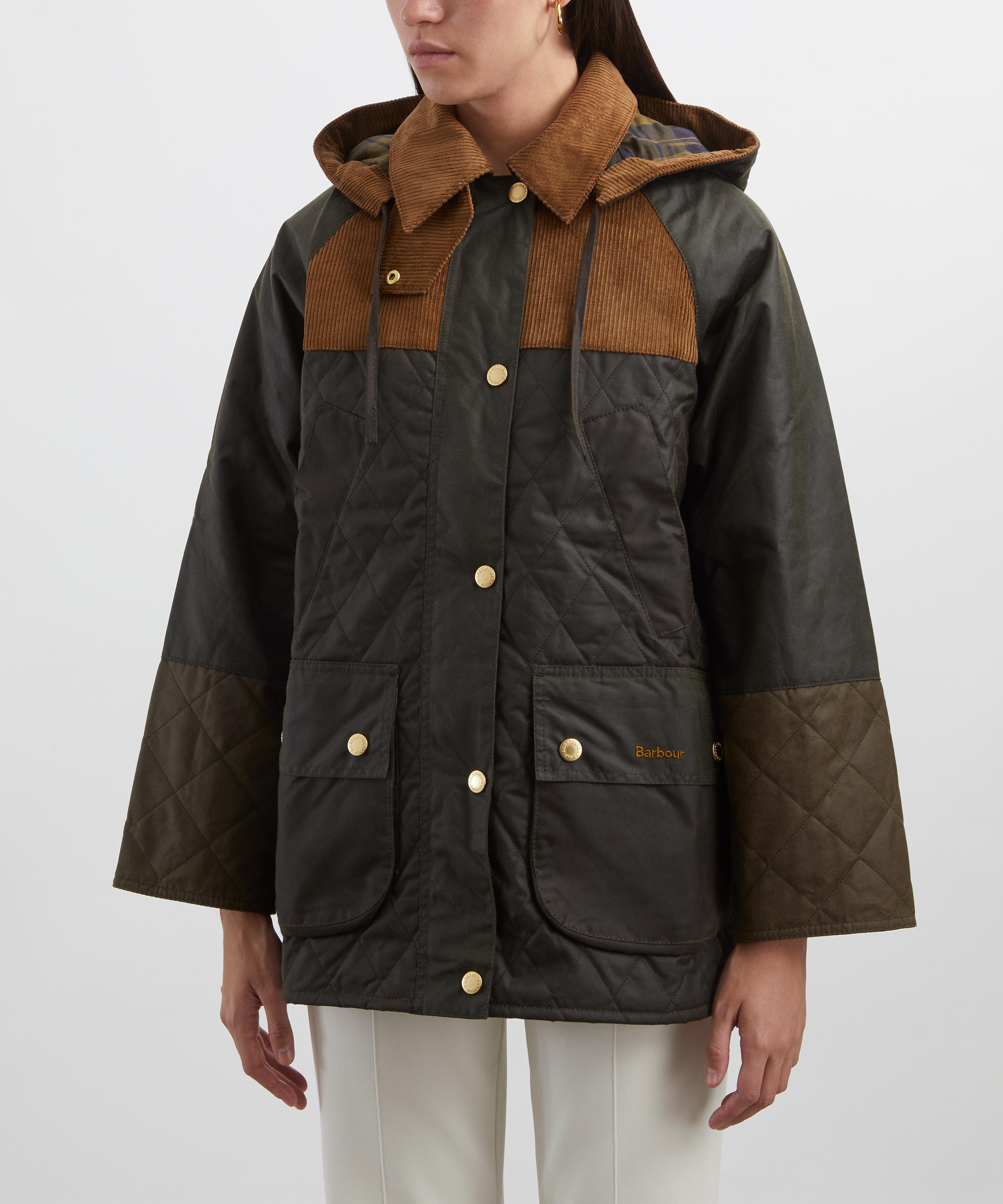 Inspired by the archives, the Imelda Waxed Jacket blends classic elements into a patchwork of Barbour heritage. Featuring waxed cotton, diamond quilting, corduroy, and tartan, it’s finished with a detachable hood and traditional handwarmer pockets for a cosy, timeless look.