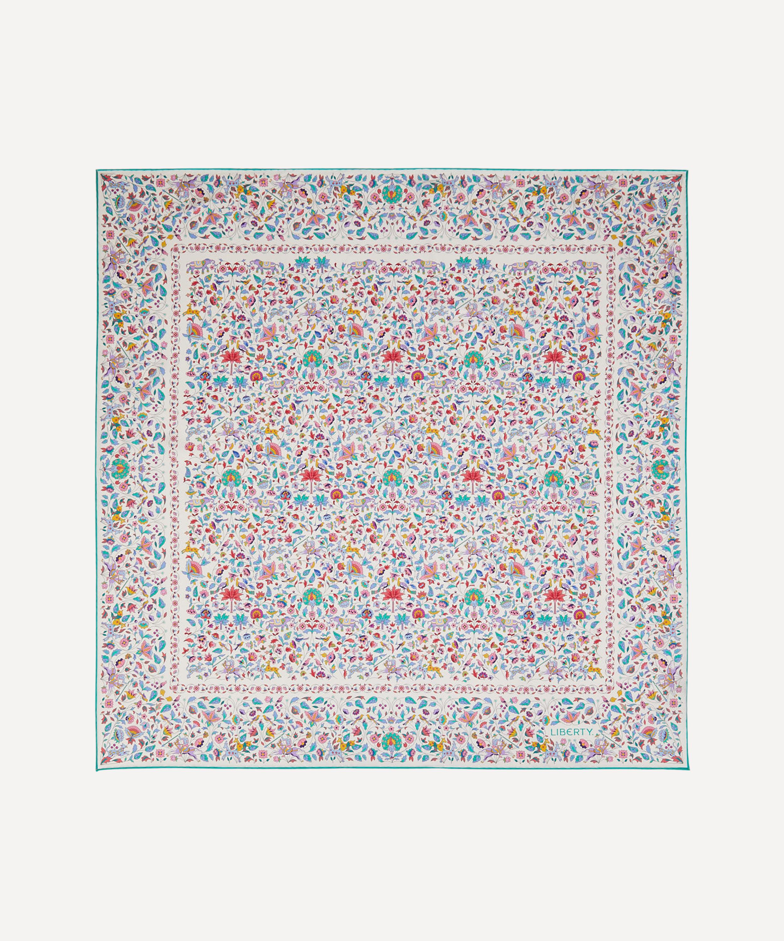 Transform your outfit with the vibrant Imran scarf from Liberty for a pop of colour and print. Meticulously crafted from an ultra-soft silk twill with stitched ends, it features our iconic Imran print – boasting an intricate floral pattern of trailing flowers, foliage, trees, and birds. Designed to stand the test of time, this versatile accessory will be part of your collection for years to come. Try draping it over neutral outerwear for an elevated finishing touch, or knot it close to the neck to lock in warmth.