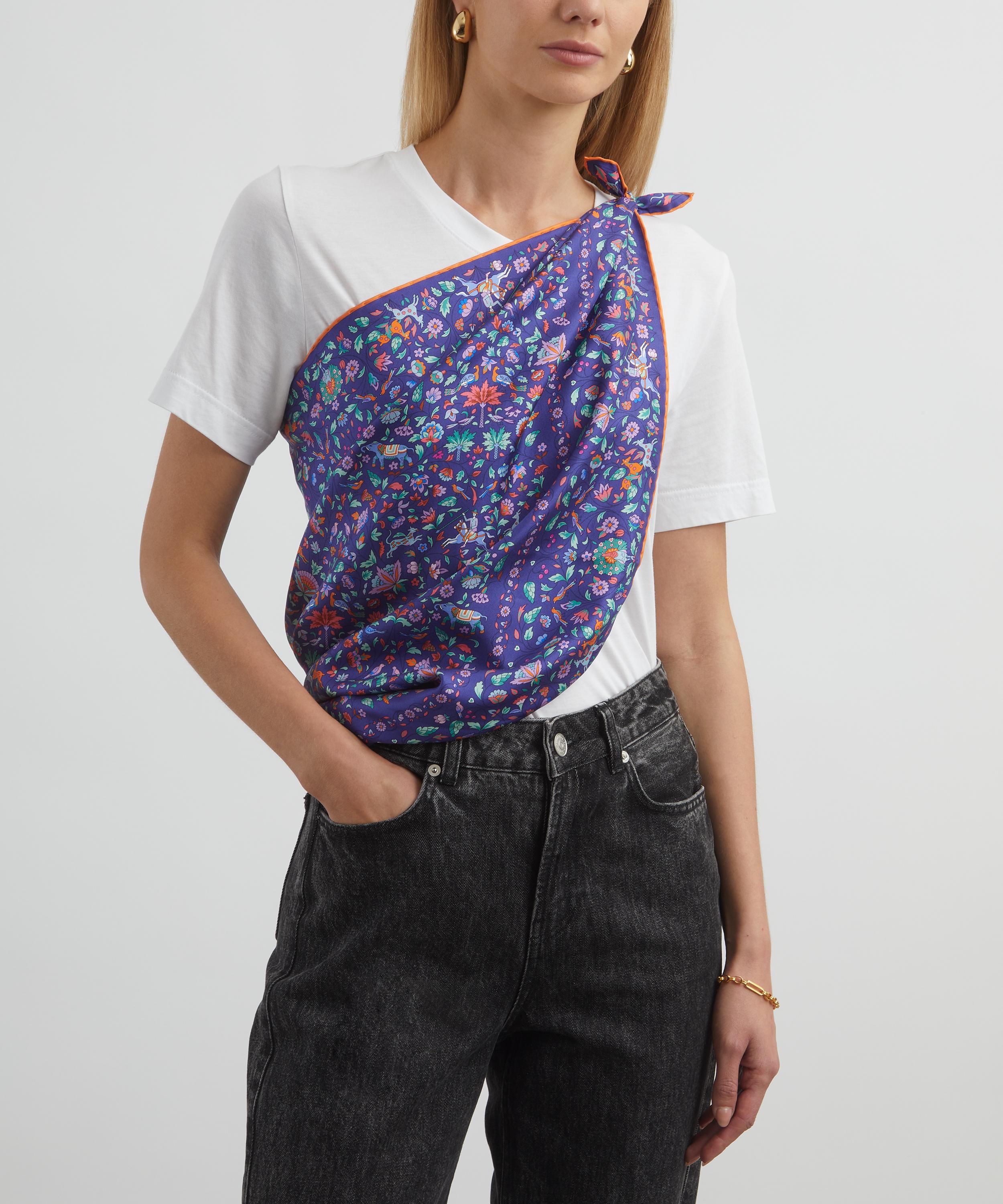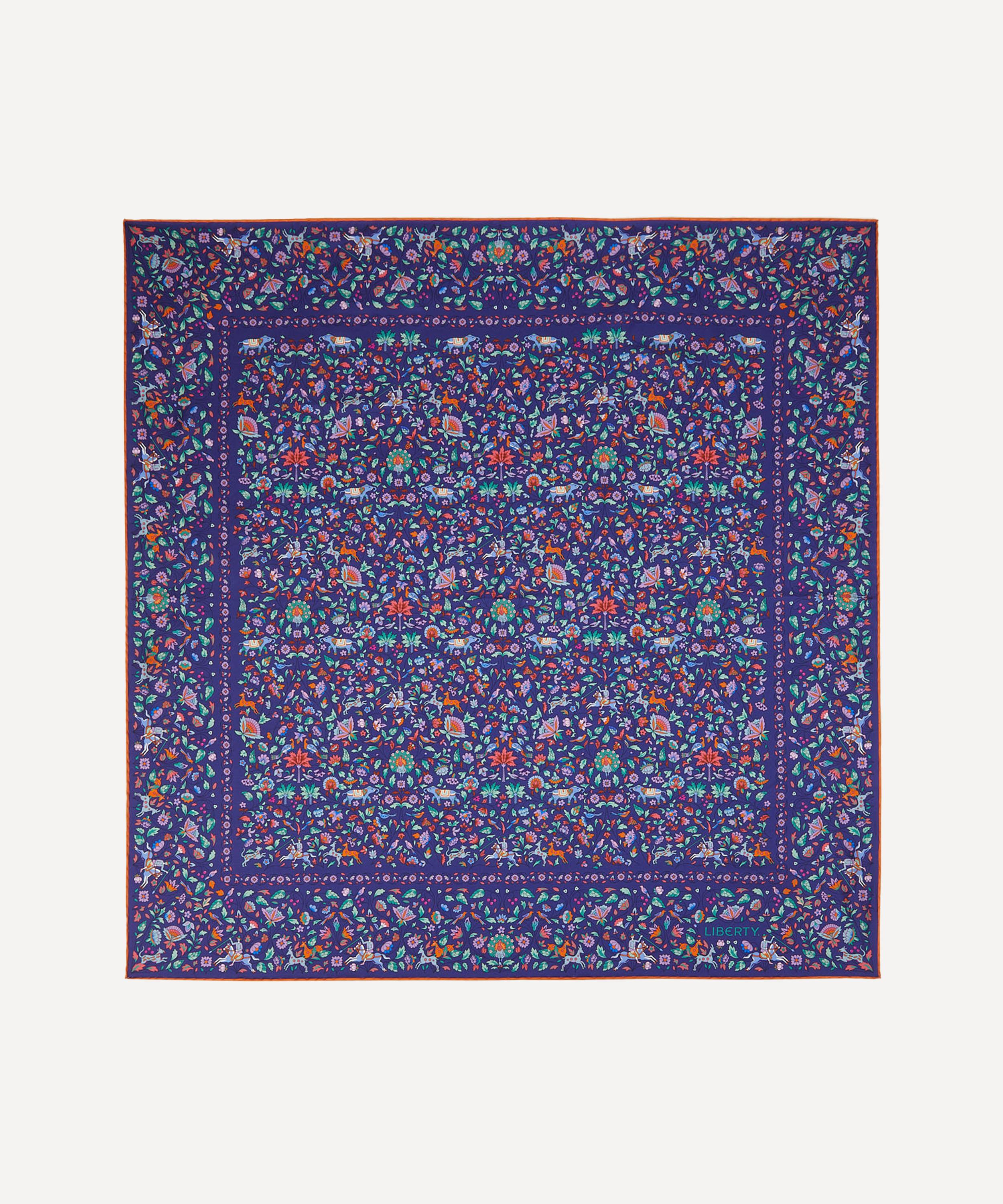 Transform your outfit with the vibrant Imran scarf from Liberty for a pop of colour and print. Meticulously crafted from an ultra-soft silk twill with stitched ends, it features our iconic Imran print – boasting an intricate floral pattern of trailing flowers, foliage, trees, and birds. Designed to stand the test of time, this versatile accessory will be part of your collection for years to come. Try draping it over neutral outerwear for an elevated finishing touch, or knot it close to the neck to lock in warmth.