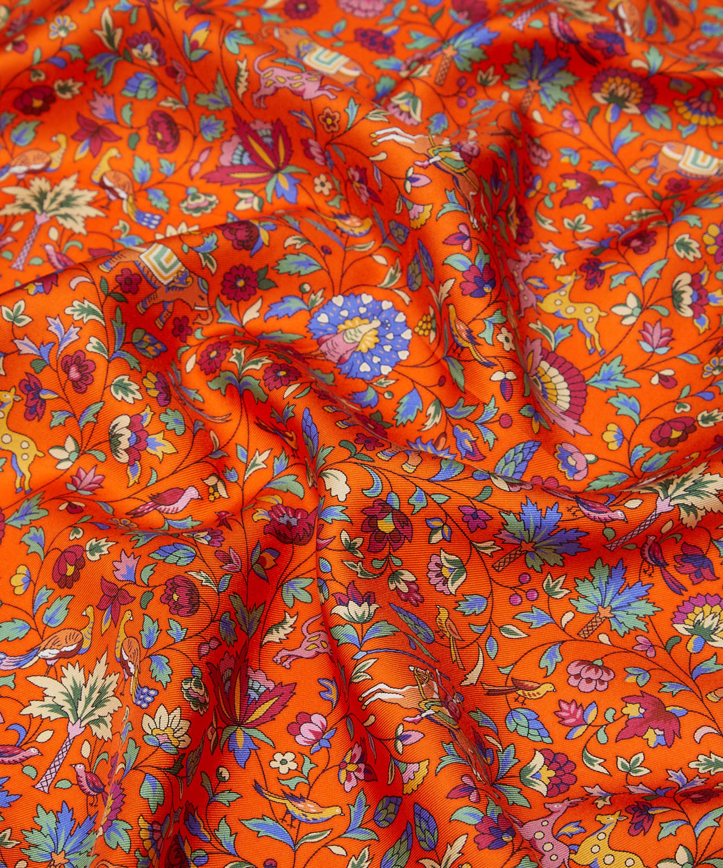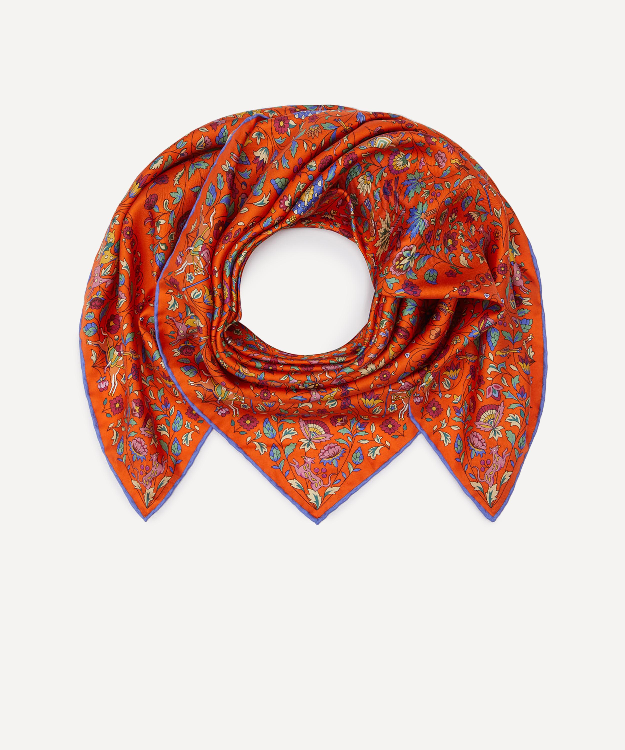 Transform your outfit with the vibrant Imran scarf from Liberty for a pop of colour and print. Meticulously crafted from an ultra-soft silk twill with stitched ends, it features our iconic Imran print – boasting an intricate floral pattern of trailing flowers, foliage, trees, and birds. Designed to stand the test of time, this versatile accessory will be part of your collection for years to come. Try draping it over neutral outerwear for an elevated finishing touch, or knot it close to the neck to lock in warmth.