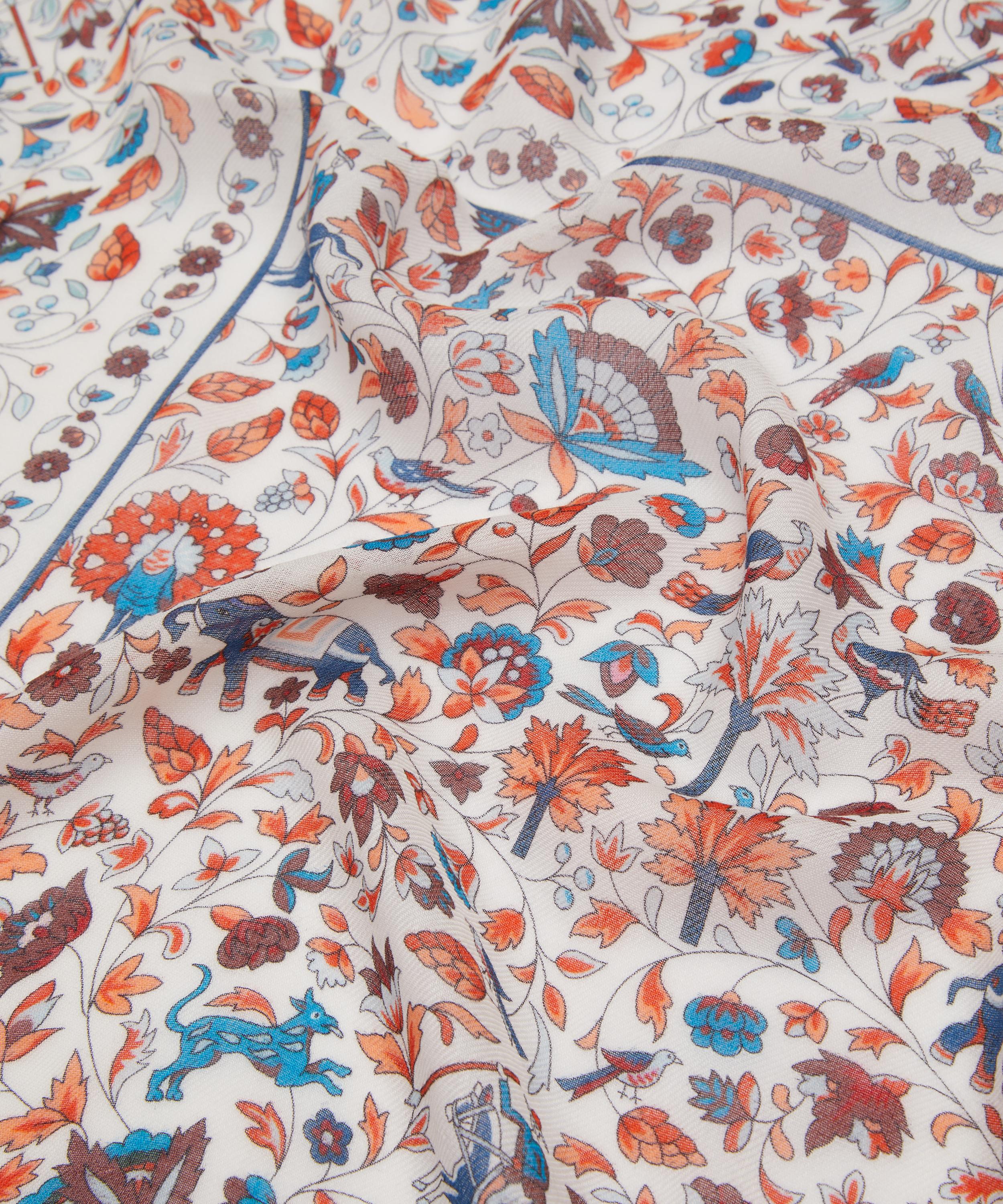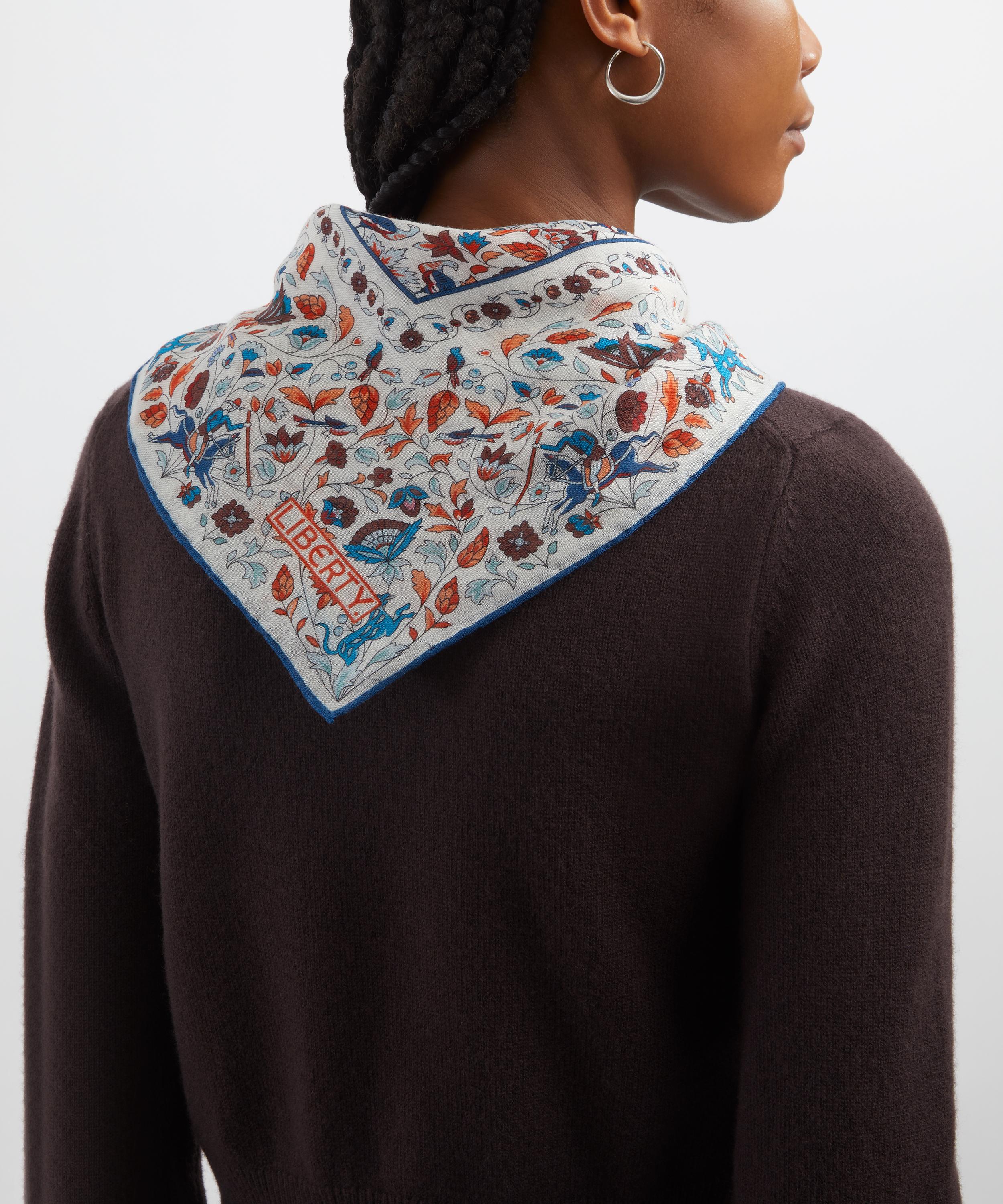 Expertly woven from an ultra-soft wool and silk blend, it showcases our iconic Imran Oasis print – featuring typical Eastern-inspired styles of the early 20th century, using motifs drawn from Indian and Persian miniatures. Bursting with colour and vitality, this versatile and timeless accessory staple will bring a refreshing lift to your wardrobe. Drape it loosely over breezy tailoring, knot it close to the neck for a pop of colour, or weave it through your hair for an effortless statement – the styling possibilities are endless.