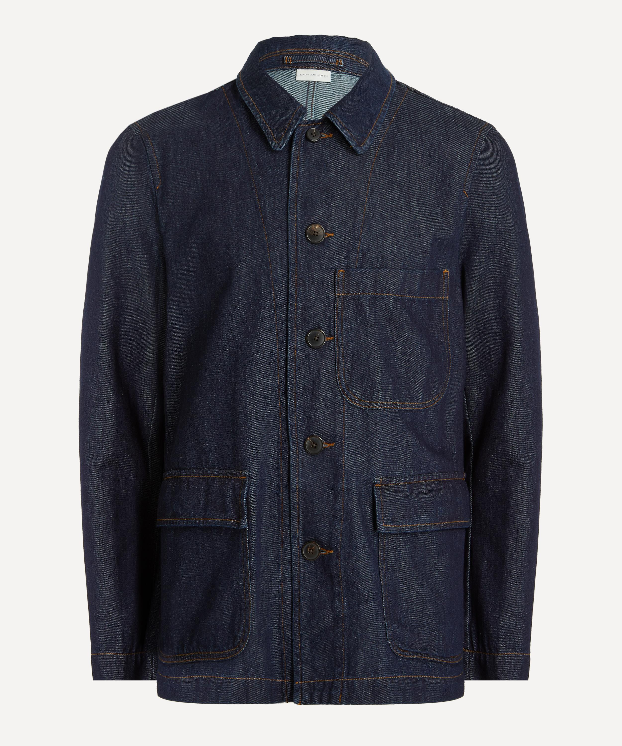 The Indigo Denim Chore Jacket from Dries Van Noten exemplifies the Belgian label’s avant-garde approach to contemporary fashion.