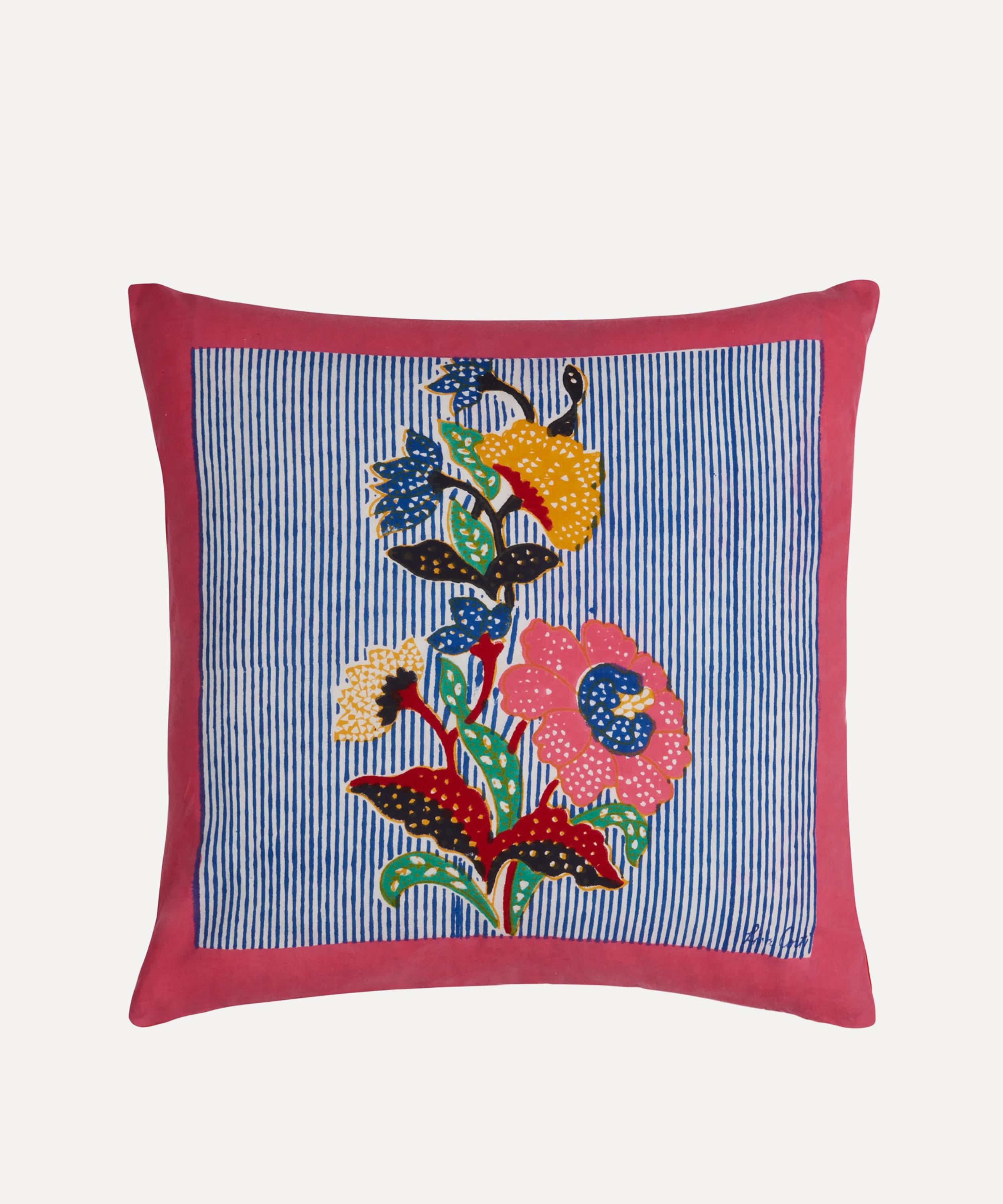 Marrying venerable textile traditions with contemporary living styles, Lisa Corti’s dynamic homeware collection exudes artisanal flavour and global inspiration. Presenting a beautifully screen printed design, this cushion stylishly counterbalances classic design with a vibrant use of colour and exuberant floral motifs. Designed in Italy and produced by skilled artisans in India, this resplendent cushion will bring a dash of eccentricity into your home.