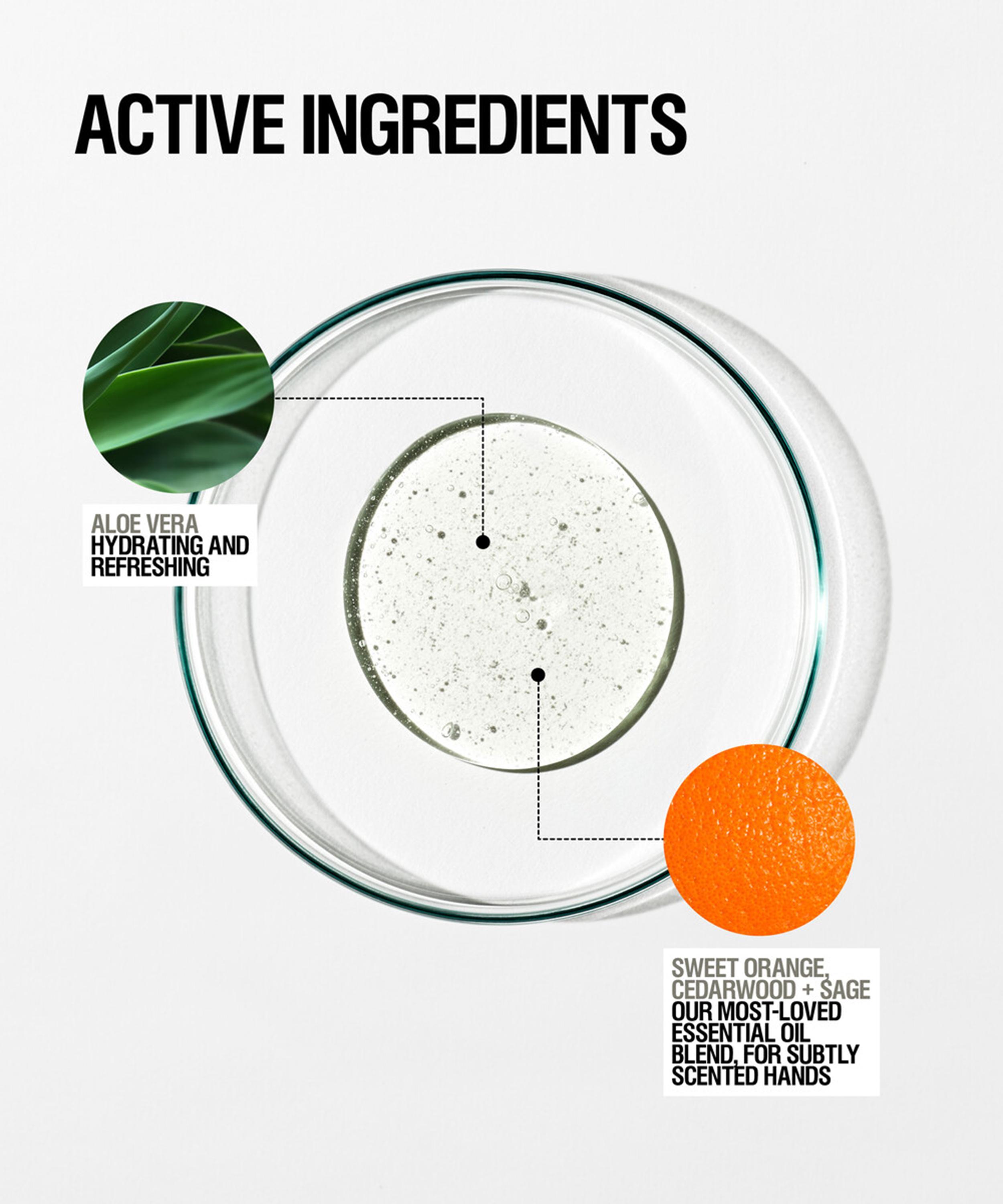 Formulated with plant-based surfactants like aloe vera - known for its soothing and skin-softening properties - and partnered with an uplifting oil blend of sweet orange, cedarwood and sage, this hand wash delivers long-lasting moisture whilst gently purifying the skin – leaving hands replenished, smooth and delicately scented.