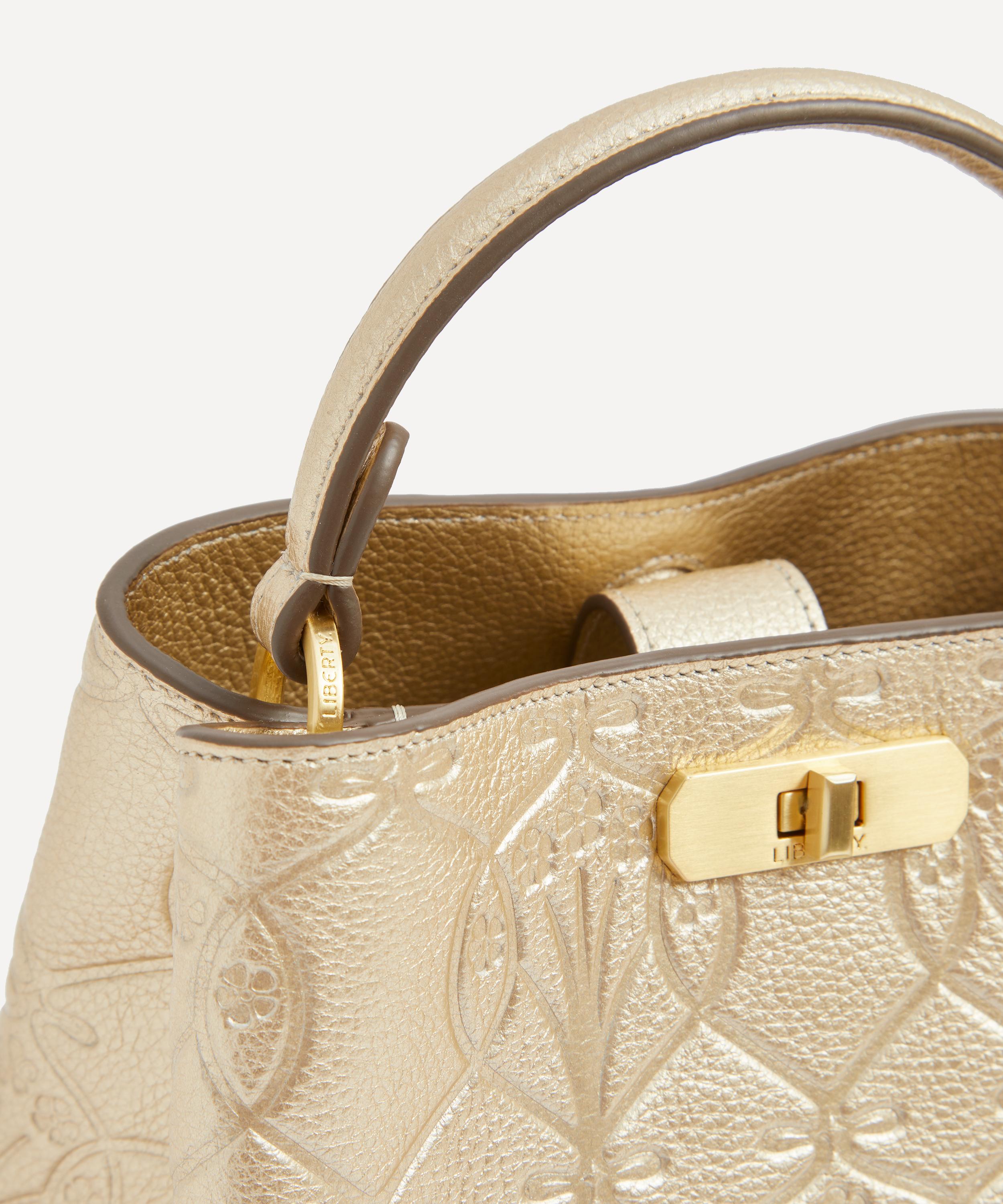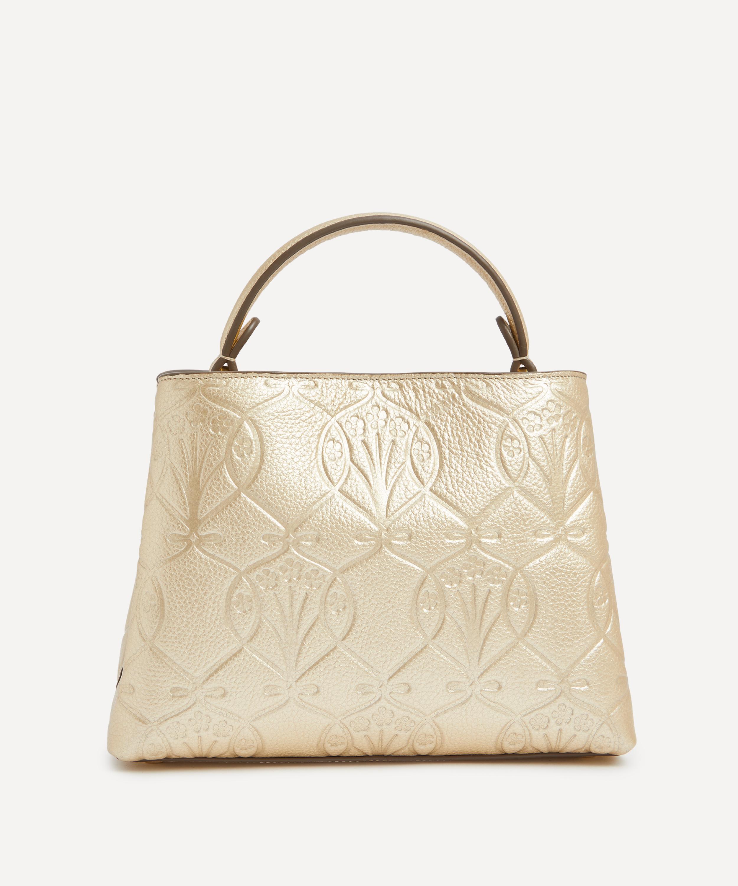 Dress with intent and elevate the appeal of any outfit with the Iphis Gold Embossed Burlington Mini Top Handle Bag from Liberty’s Gold capsule collection.