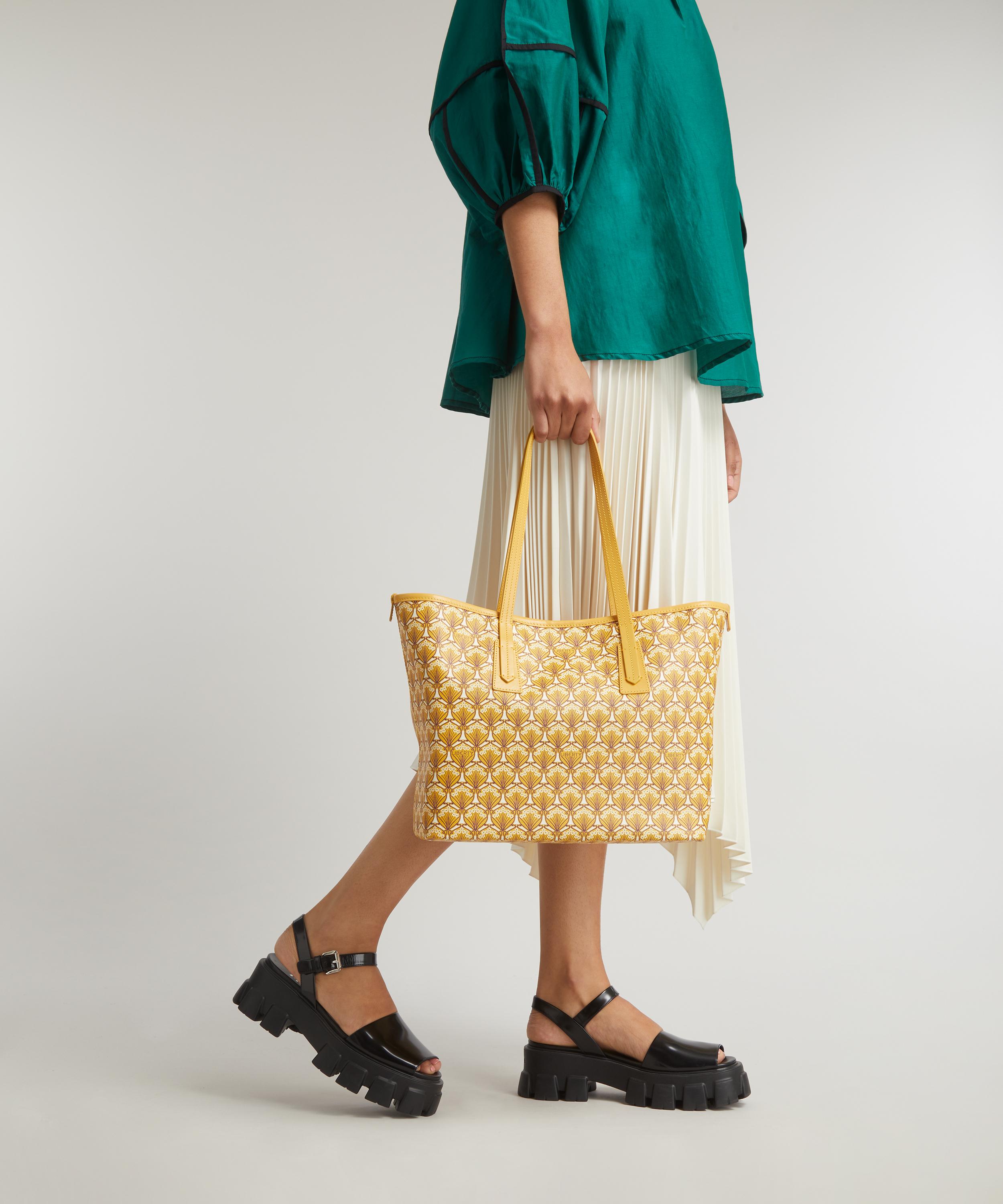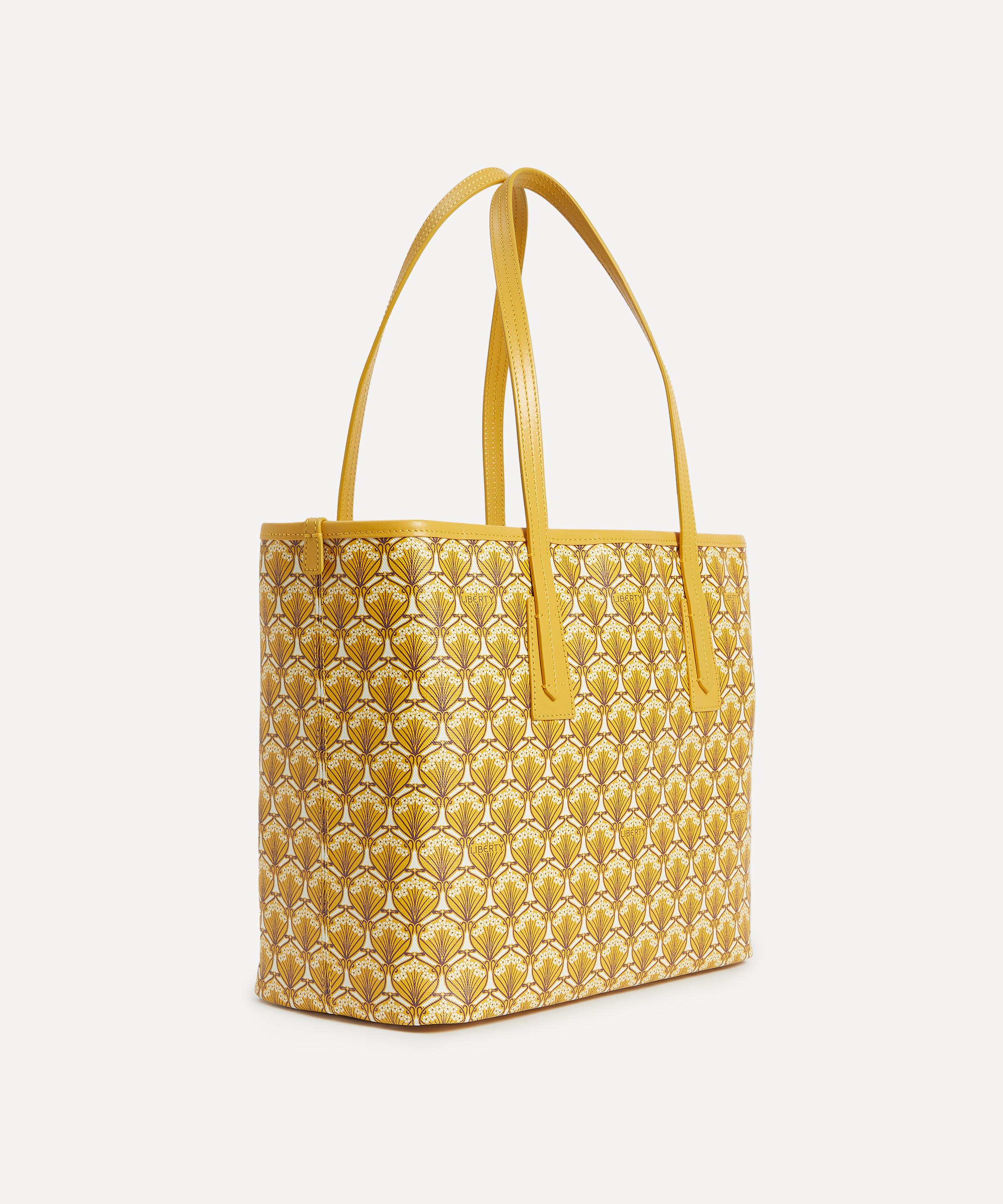 Brighten up any outfit with Liberty’s practical and playful Iphis Yellow Little Marlborough tote bag. Meticulously engineered at the perfect size for everyday wear, it’s crafted from a screen-printed coated canvas, featuring two top-handle straps to grab-and-go, with an interior slip pocket for valuables and expendable sides to adjust its silhouette. Finished with a magnetic snap-button fastening, it boasts a fun pop of colour, perfect for the summer season and beyond.