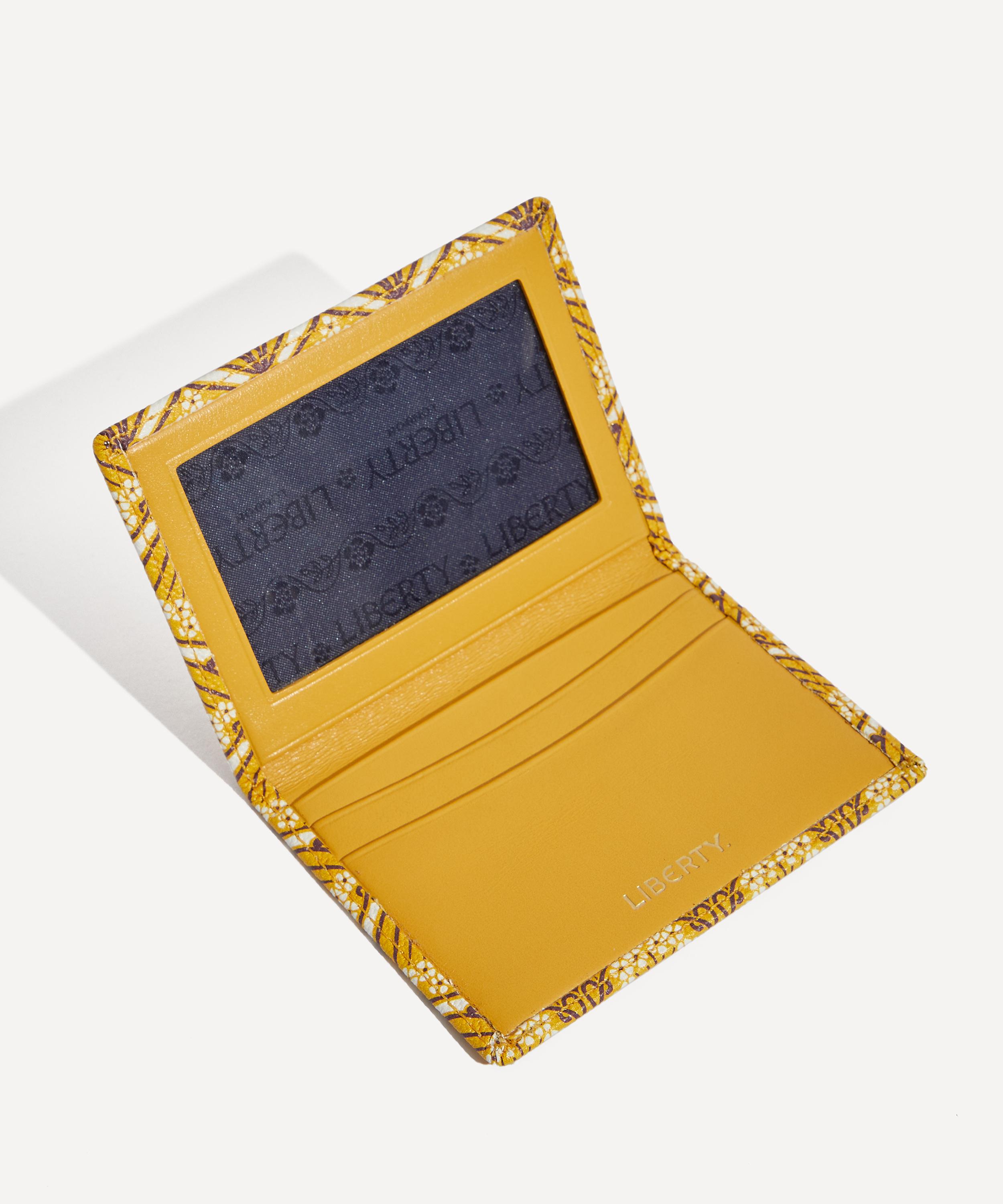 Keep cards organised with Liberty’s bright and playful Iphis Yellow Travel card holder. Offering a cheering flash of iconic print, for life on the move, it’s designed with a fold-over closure, clear ID window and two card slots, boasting a fun pop of colour, perfect for the summer season and beyond.