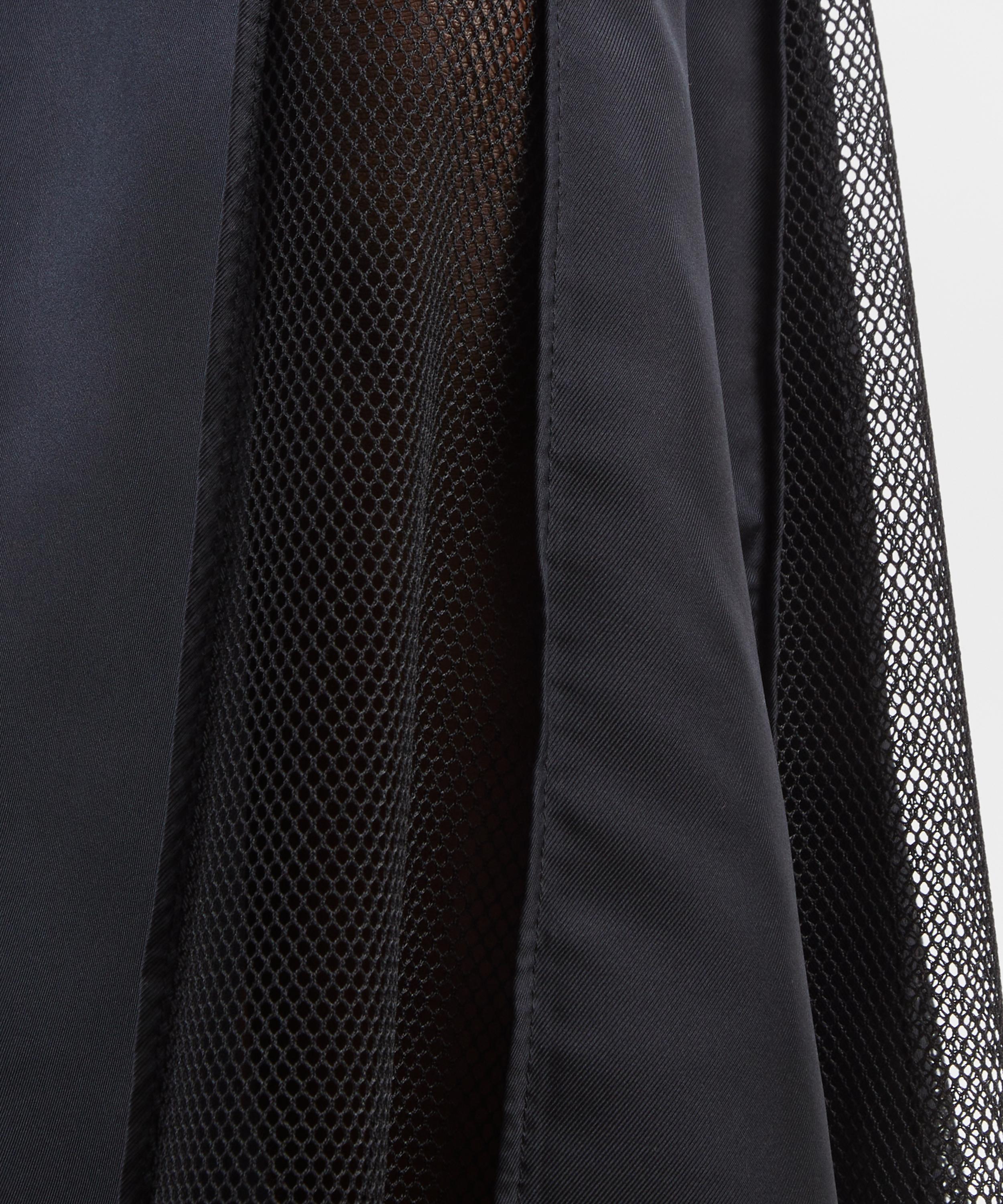 Cut from silk twill, this sleeveless midi dress exudes understated elegance. A high neckline and fitted bodice are defined by delicate lace-stitched seams, flowing into a flared midi skirt with mesh tulle cut-outs for a beautifully flattering silhouette.