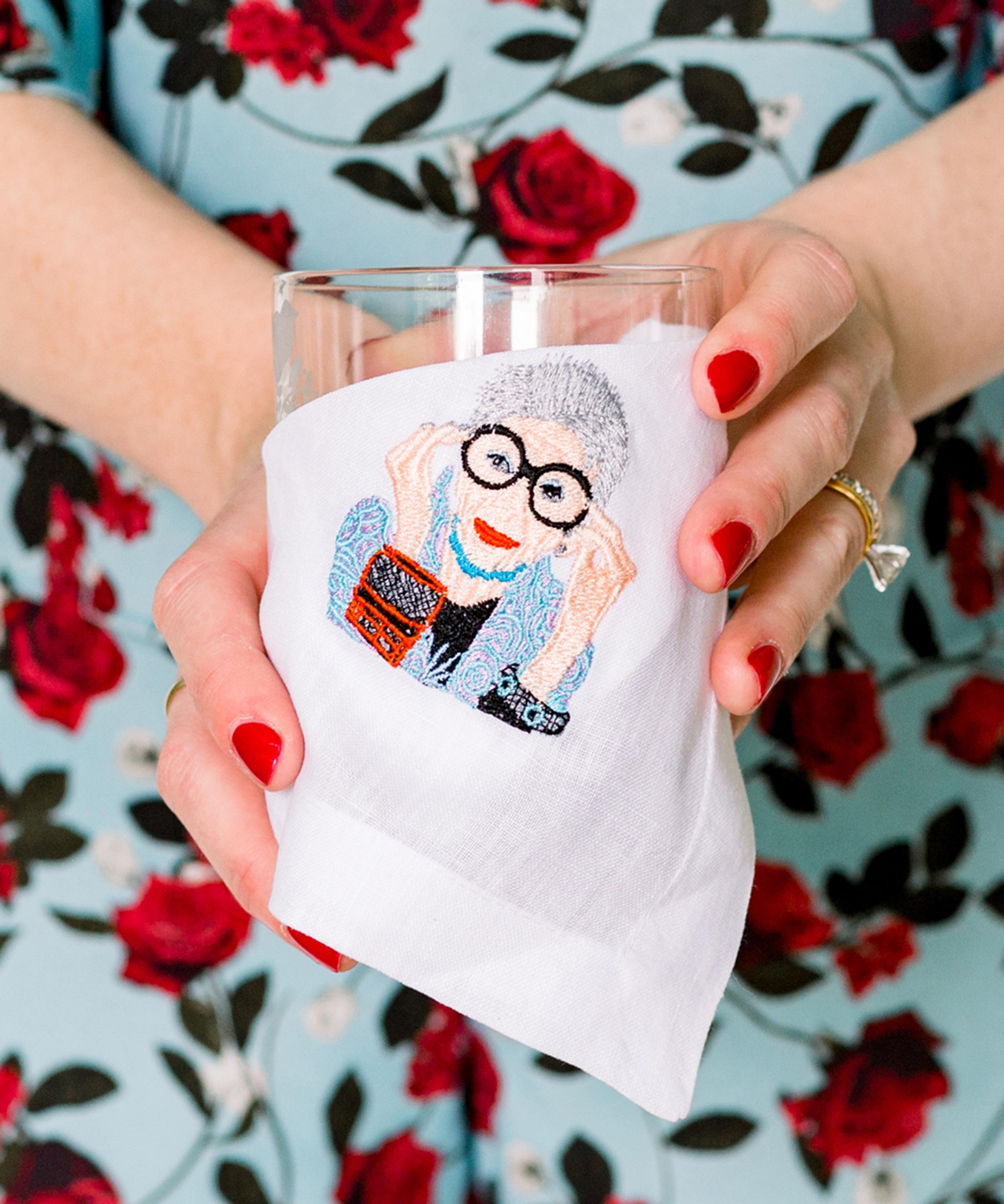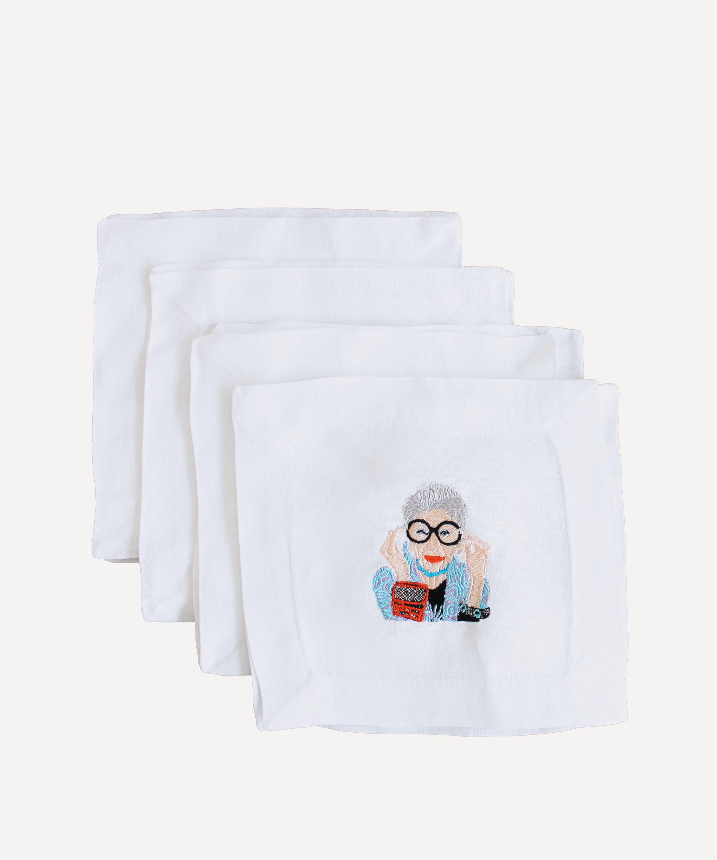 Effortlessly embellish home entertaining with the Iris Apfel cocktail napkin set from Lettermade.