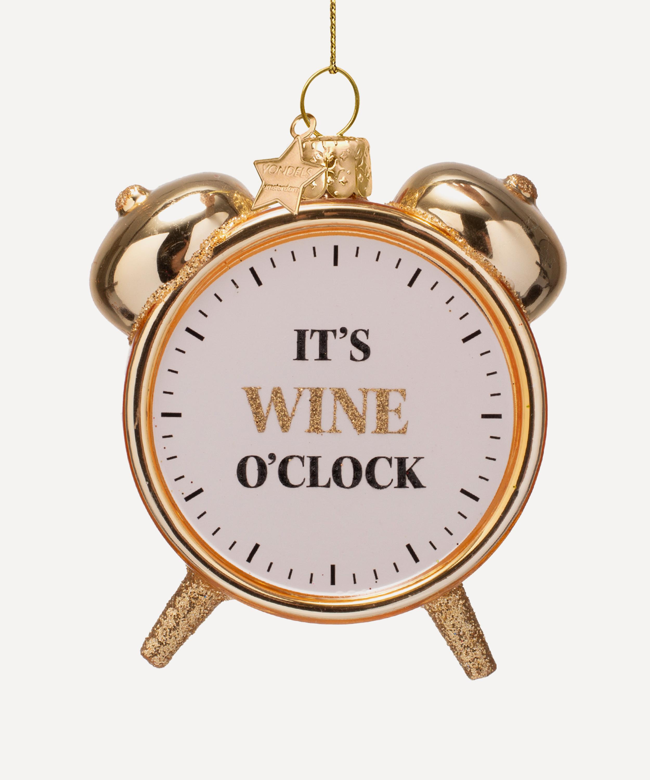 A contemporary twist on classic holiday season décor, its expertly crafted from glass in the shape of a gold alarm clock with a ‘wine o’clock’ motif – adding a sense of playfulness to this year’s Christmas tree. It’s easily worked into your assortment of traditional baubles and adornments or mixed and matched with other novelty pieces for maximum festive flair.