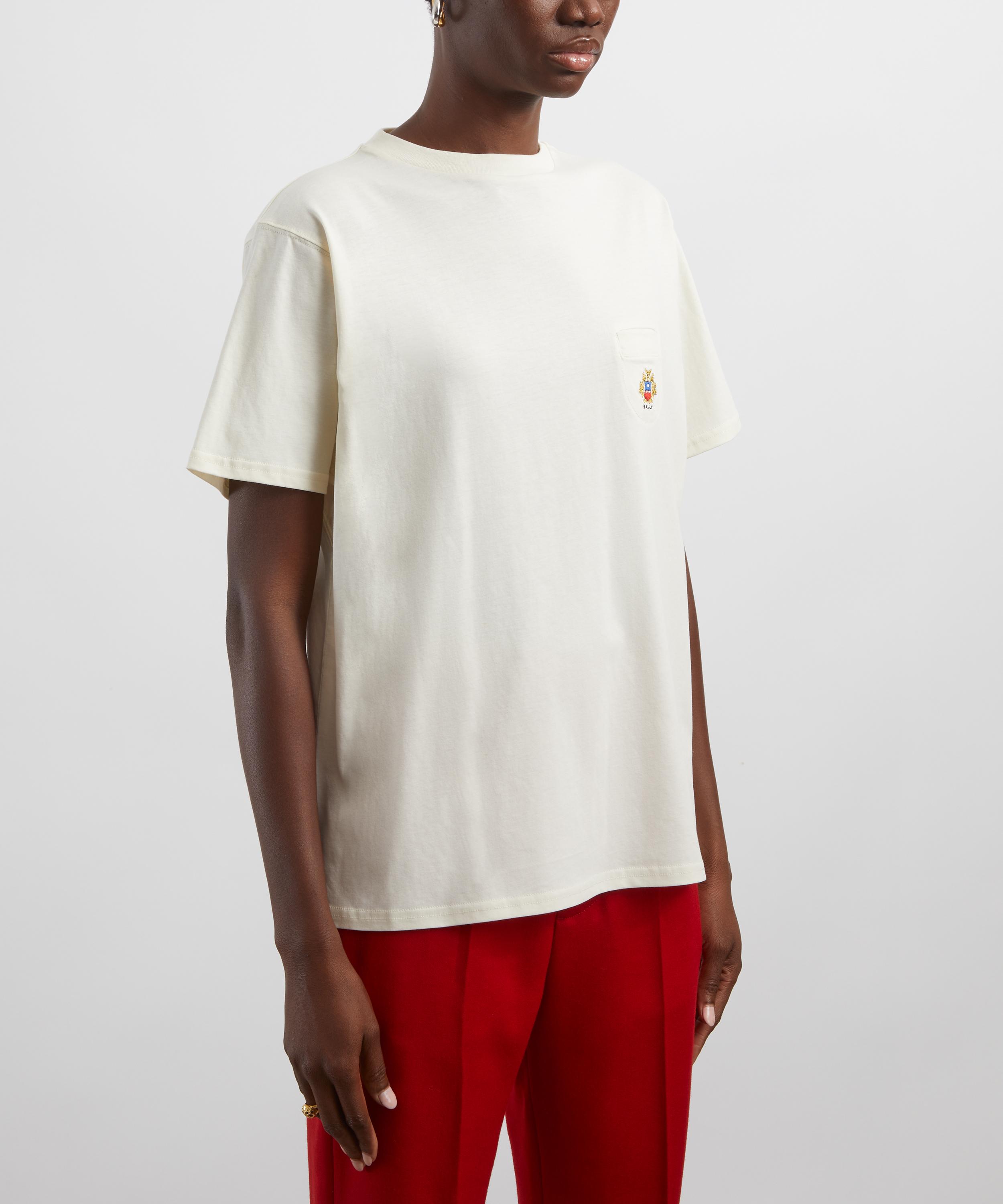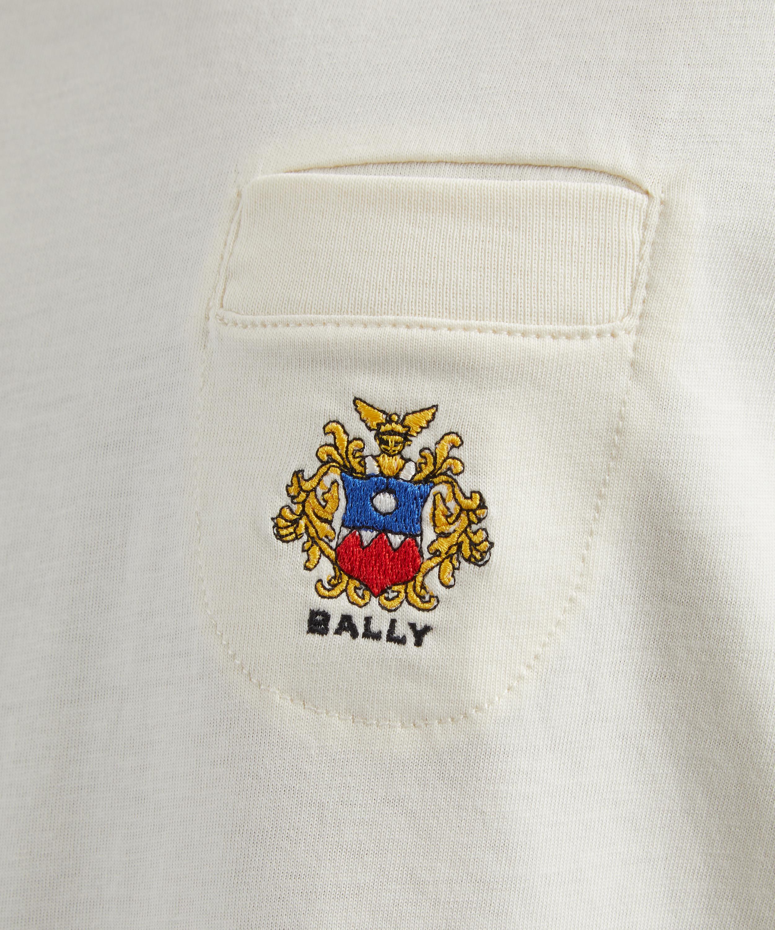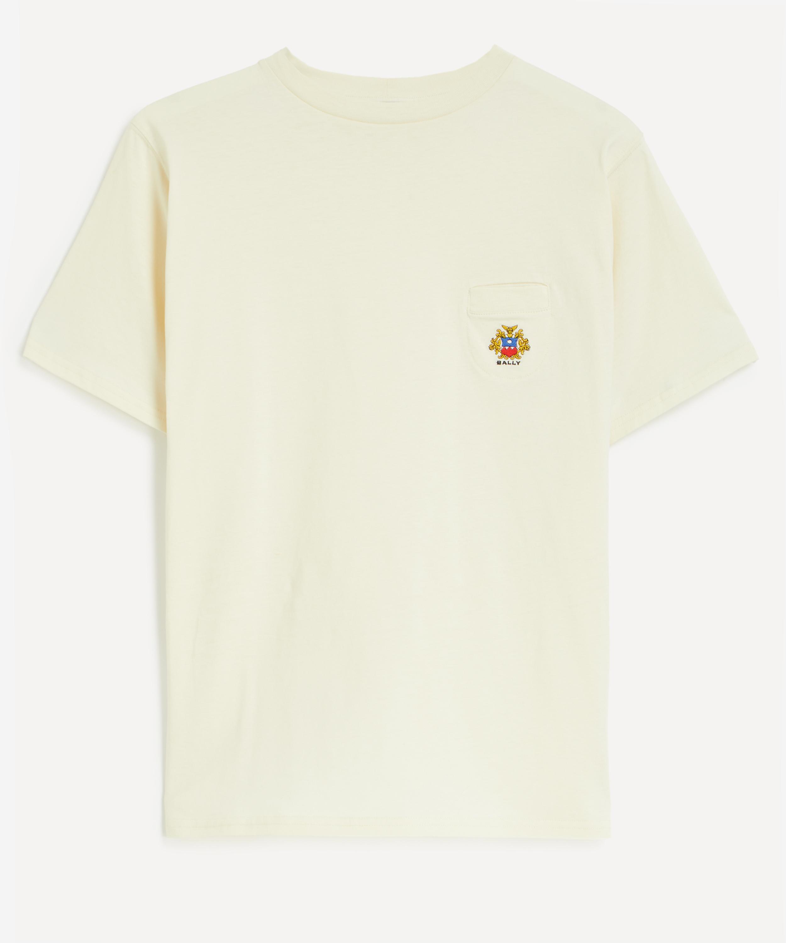 Crafted from a cotton, this ivory t-shirt is detailed with a classic crew neckline, short sleeves, and a small half-welt pocket finished with colourful Bally Crest embroidery – an emblem of understated sophistication.