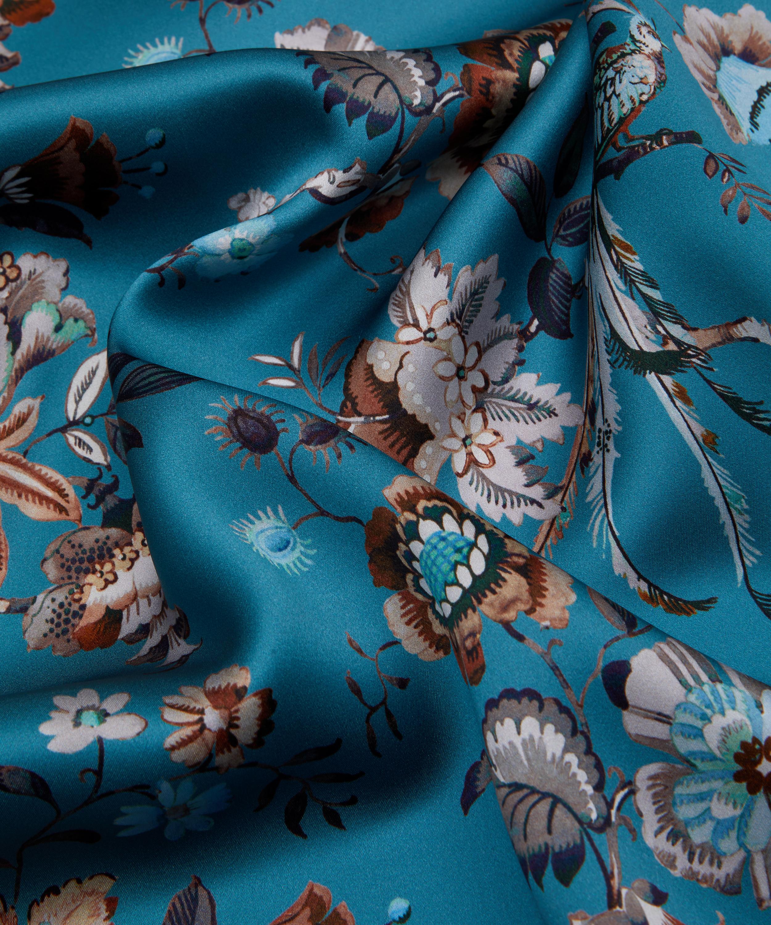 The design is printed by experts in Italy onto our elegant, reflective 16 momme Belgravia silk satin – a fabric prized for its lustrous drape and fluidity, along with its luminously high-shine surface. Construct it into eveningwear pieces such as sheath gowns, or use it to create opulently wearable daytime designs like wrap dresses and flowing shirting.