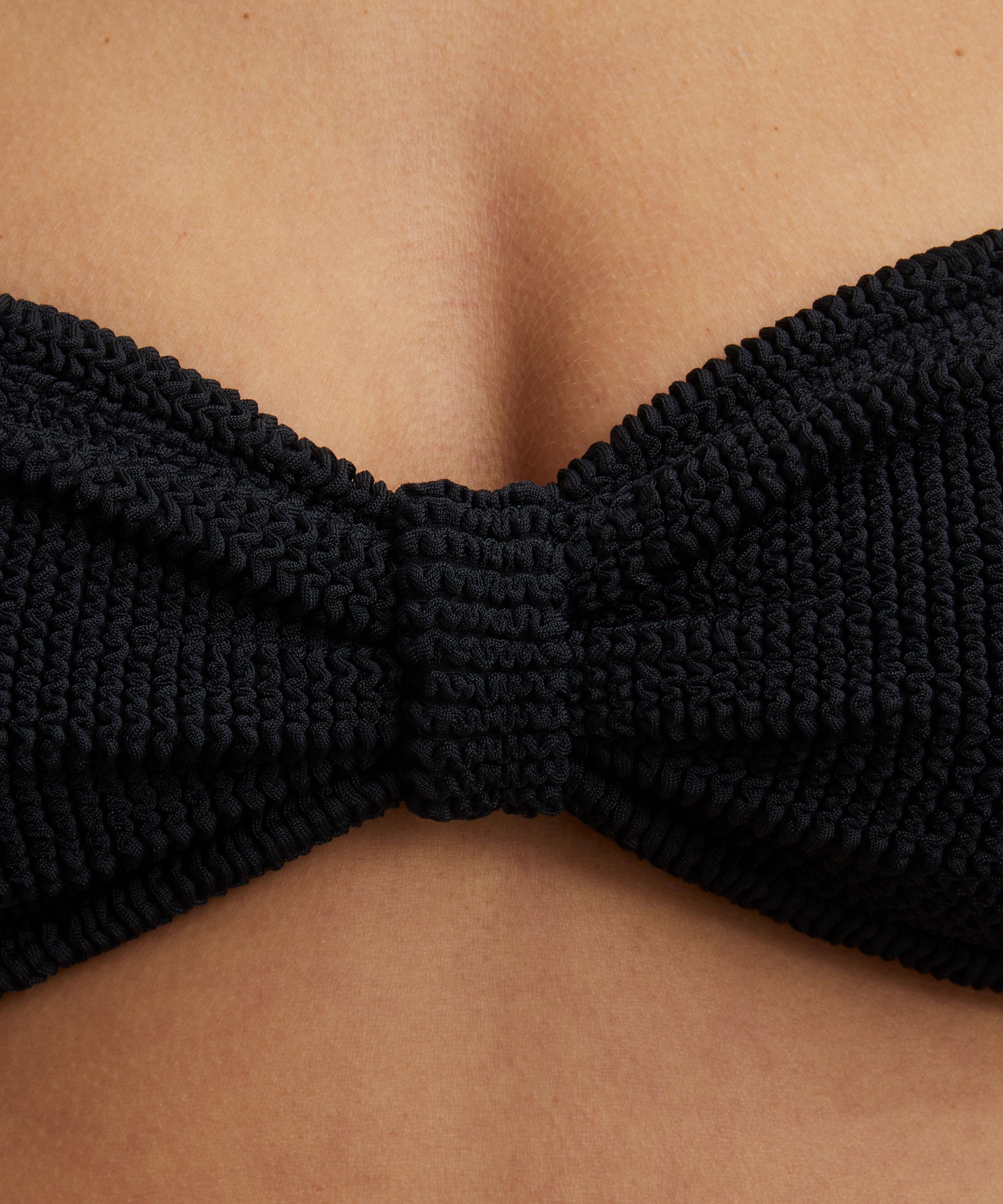 Crafted from the label’s signature crinkle seersucker for a comfortable, flattering fit, this slip-on bikini features a no-straps twisted Bardot top - perfect for effortless style and avoiding awkward tanlines.