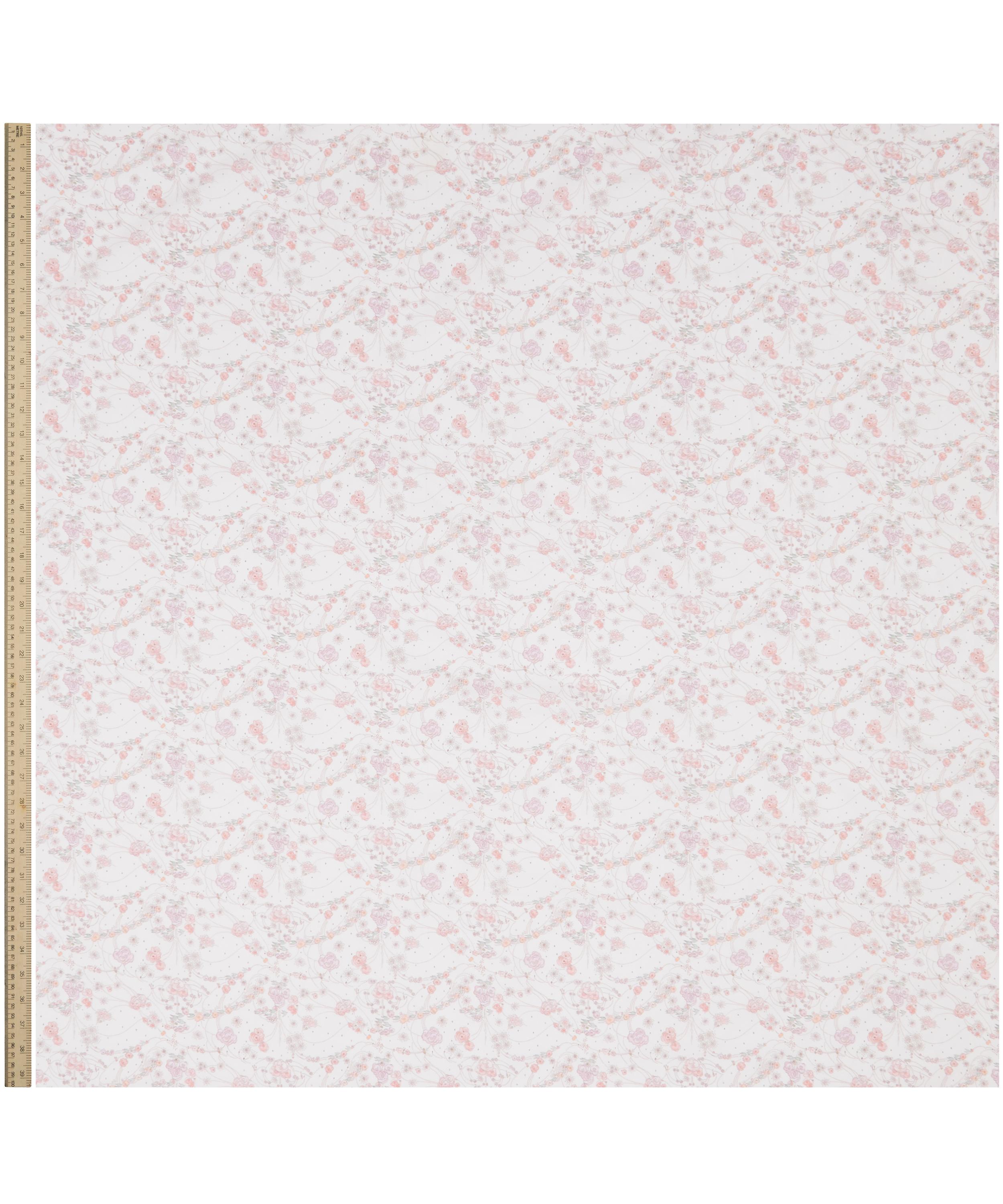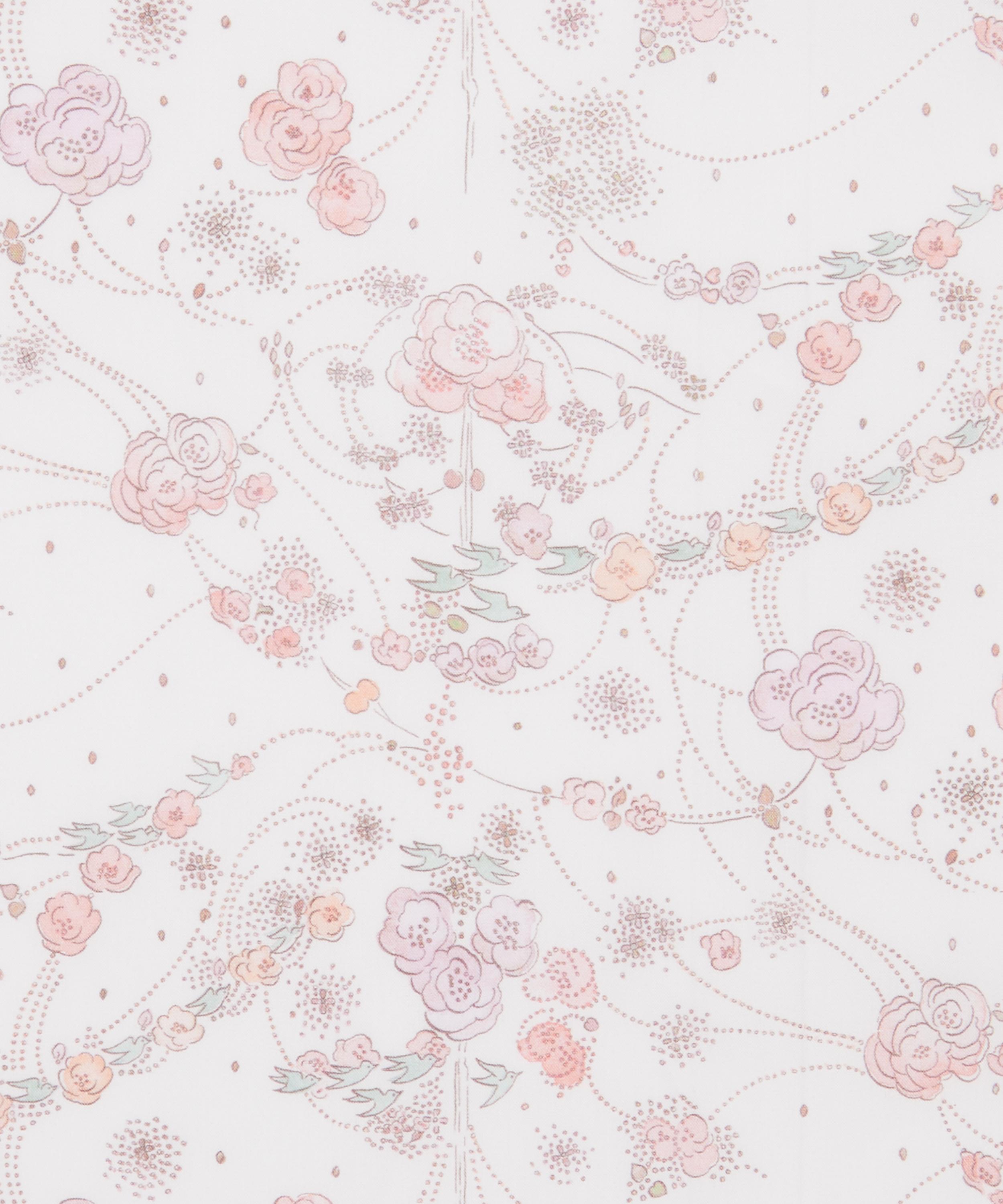 Jessie Nouveau’s whimsical design combines original motifs taken from artworks created by artist and illustrator, Jessie M. King, during her time working for Liberty. Evocative of the Art Nouveau style, sinuous dotted lines, blossoming florals, dainty birds, hearts, and berries appear to gently move across the fabric.