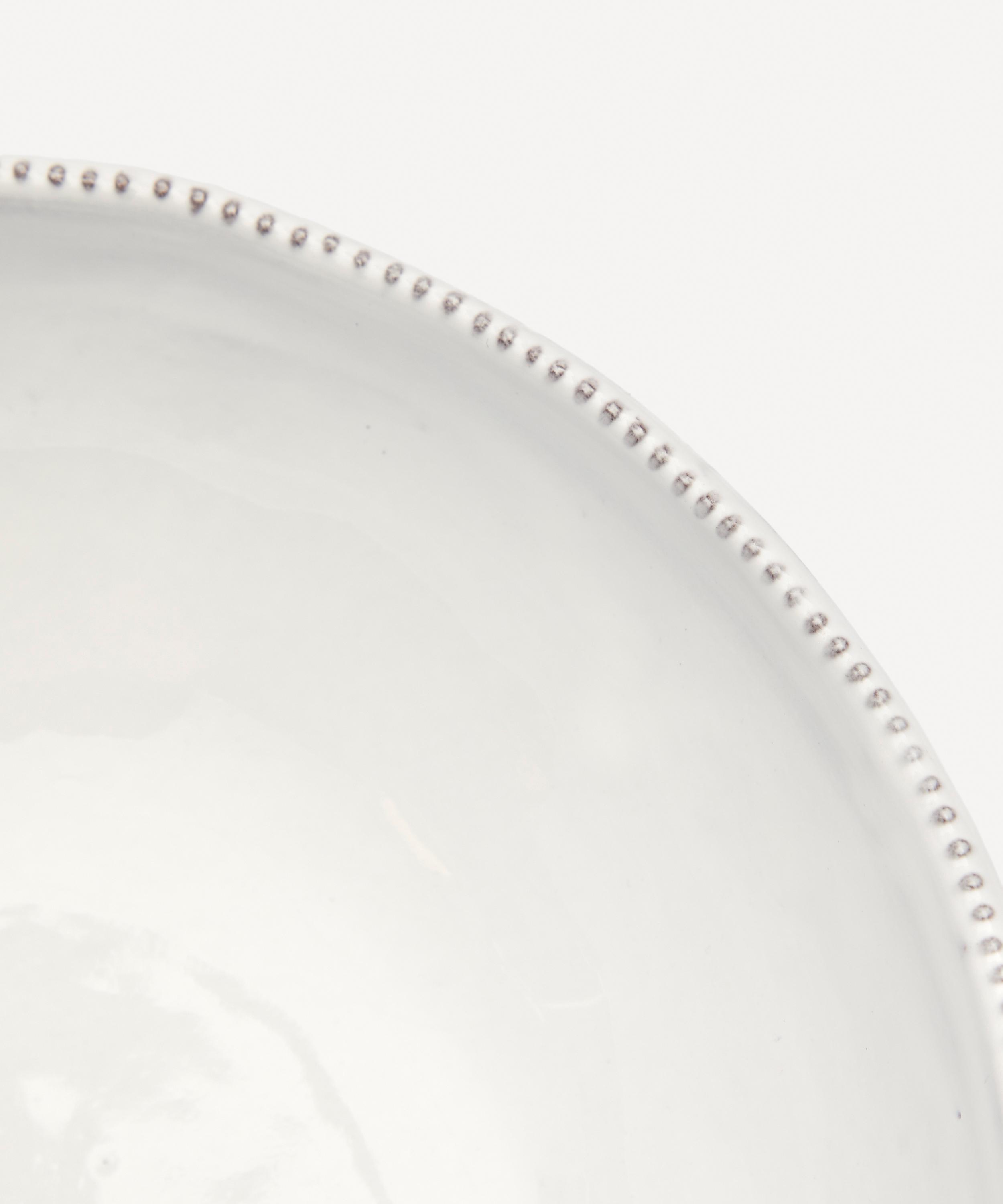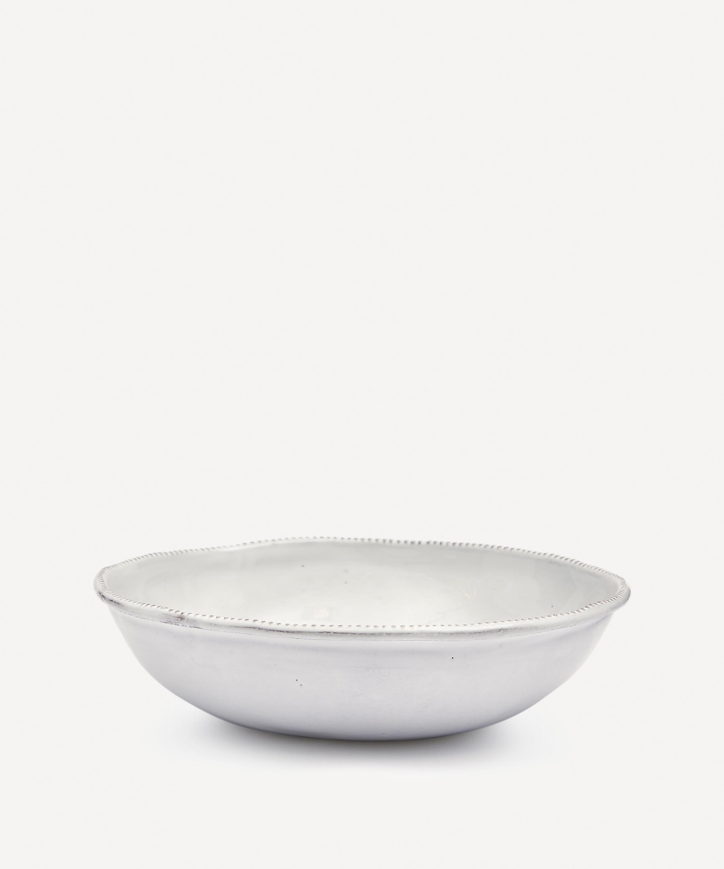 Votary of pre-industrial fabrication, Astier de Villatte is celebrated for being the one and only studio in Paris to hold and harbour the traditions of artisanal ceramic production. Restoring the ancestral systems of moulding and stamping, the Jojo bowl is made using handcrafting techniques from the Middle Ages which involve moulding a handmade sheet of clay, double firing the ‘biscuit’ piece and glazing the product in white enamel – a lengthy process that involves a drying time of up to one month. The design is engraved with the brand’s signature crest – depicting an interlacing A & V – alongside the initials of one of the 40 master artisans who created it. Each handmade piece tells a beautiful story, it romances and imparts a sense of nostalgia into its owner. Arrange with other serveware in the collection to breathe an air of authenticity into your table setting.