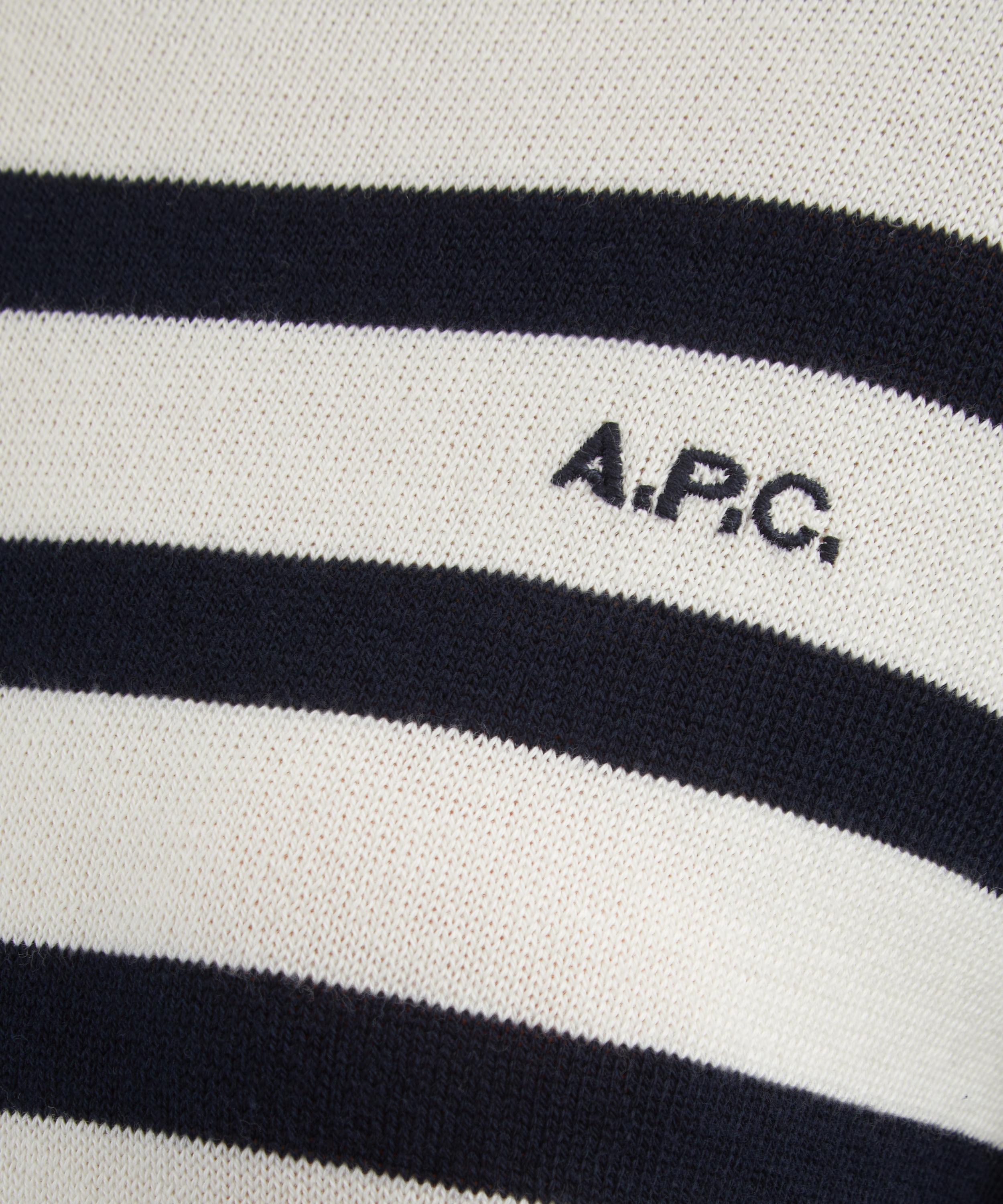 Finely knitted from soft cotton, the Josepha jumper showcases classic Breton stripes throughout. Designed with a regular, straight silhouette, it features a crew neck, dropped shoulders, long sleeves, and ribbed trims. A contrasting A.P.C. on the left side of the chest adds a signature touch.