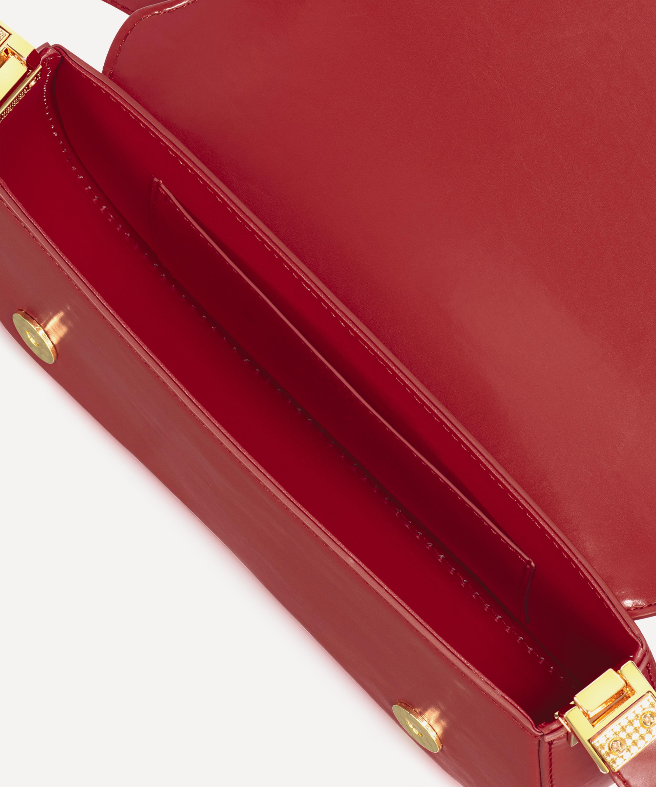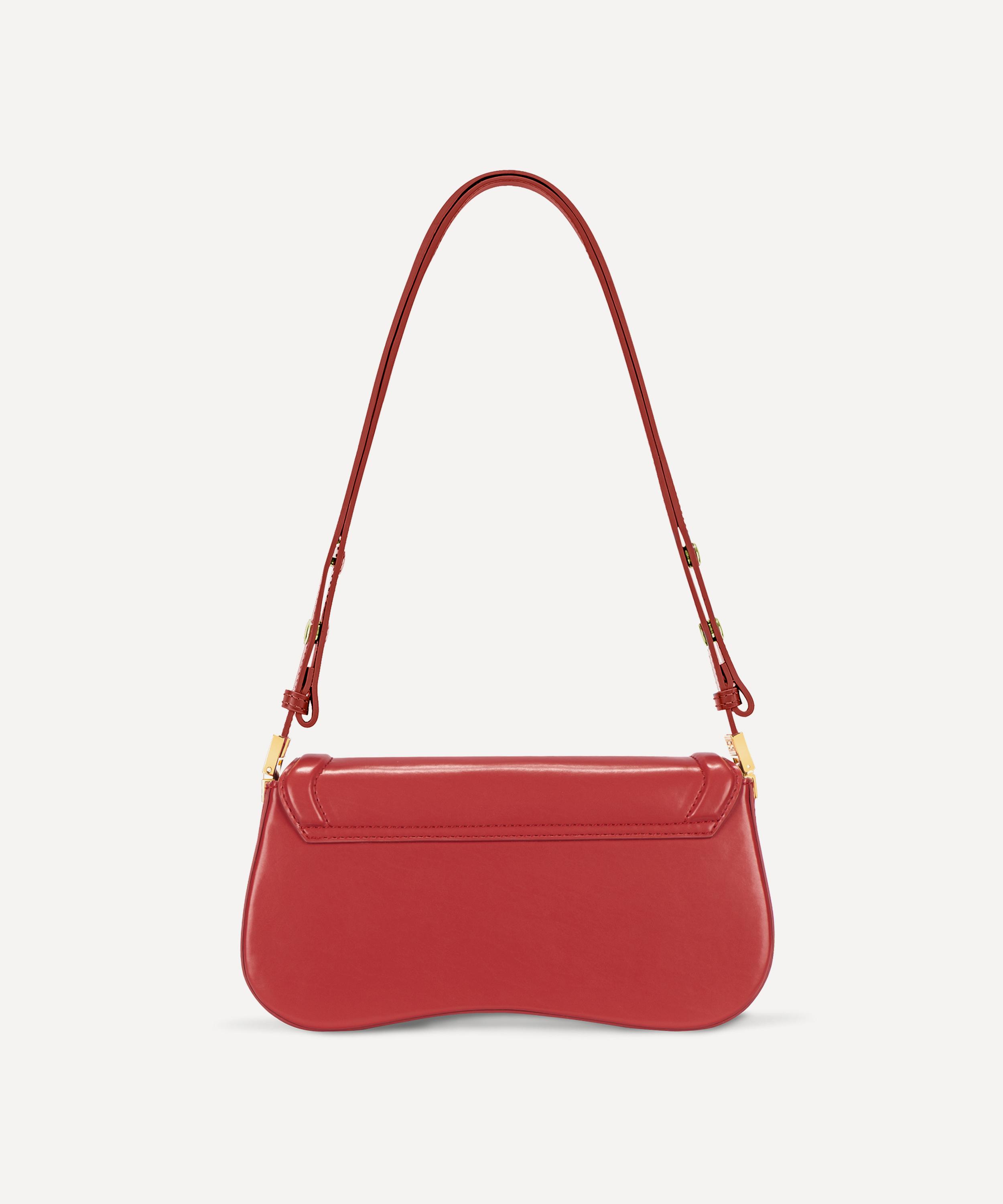 Capturing a modern, minimalist aesthetic, this sleek baguette bag is crafted from vegan leather – showcasing clean lines and a structured silhouette with a curved base. The beautiful red leather beams with a smooth, glossy exterior that is adorned with visible stitching around the edges, offering shape and depth to the bag. Complete with a magnetic clasp closure and an adjustable strap, it sits comfortably on the shoulder, ready to go from day-to-night in a flash.