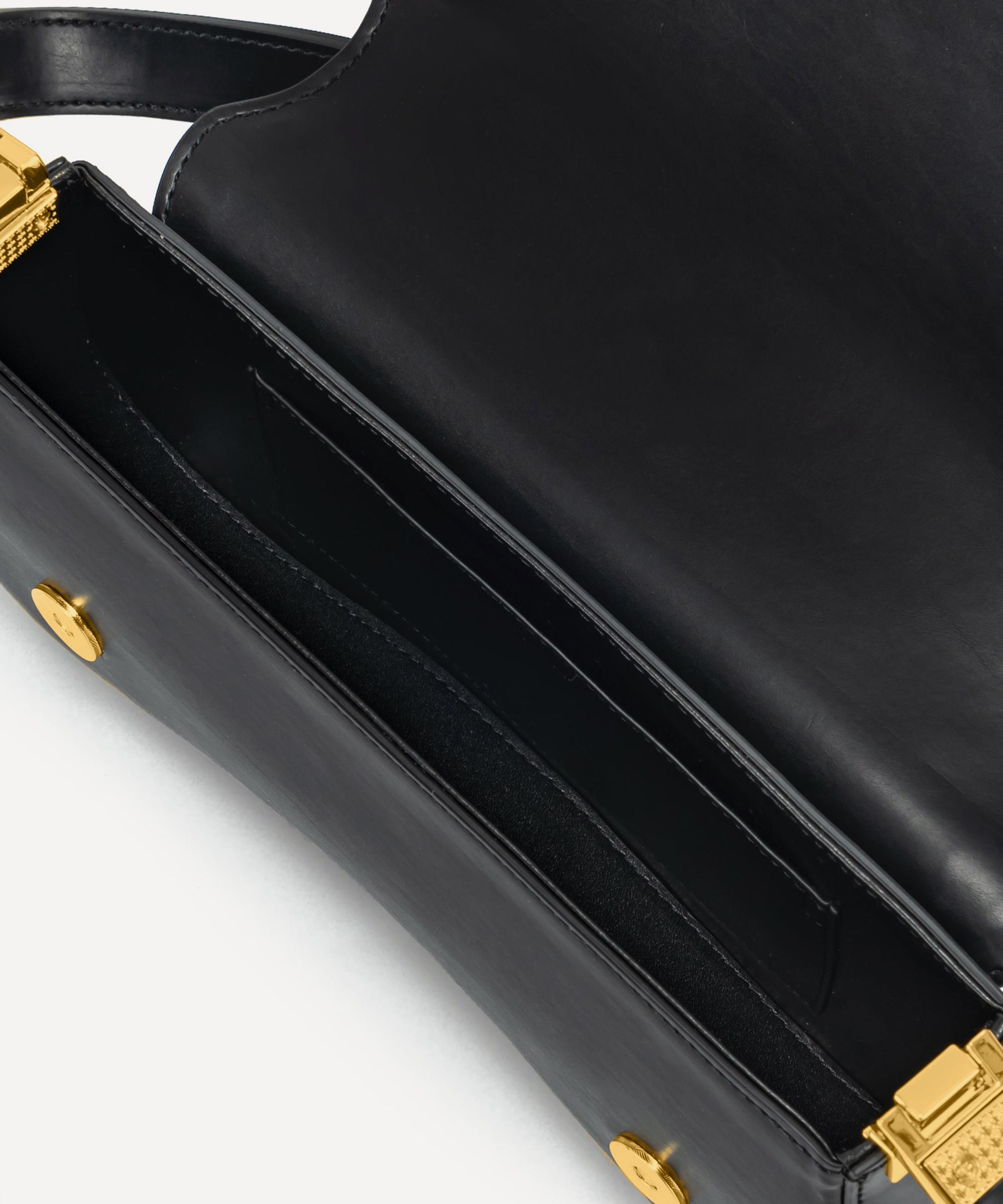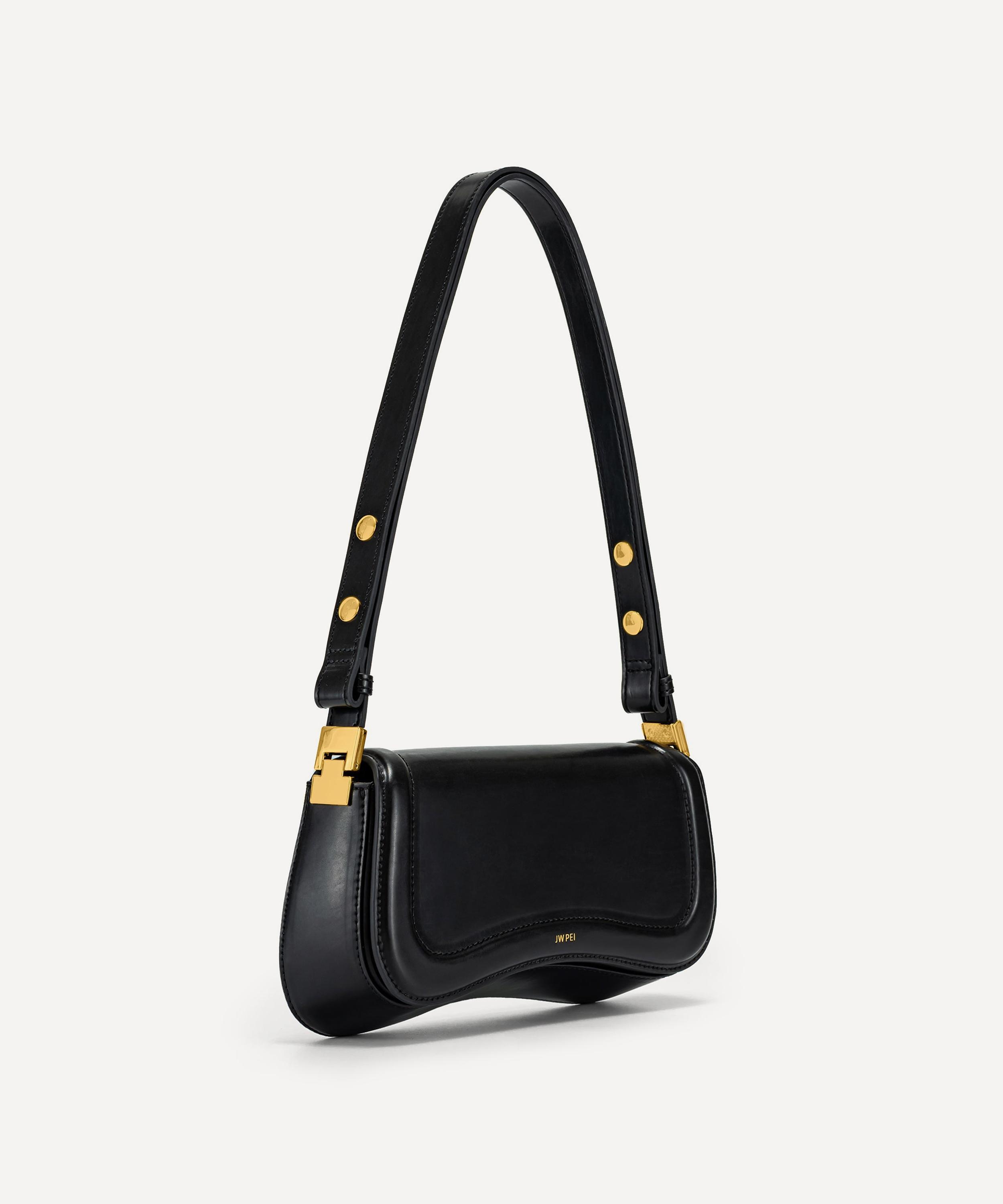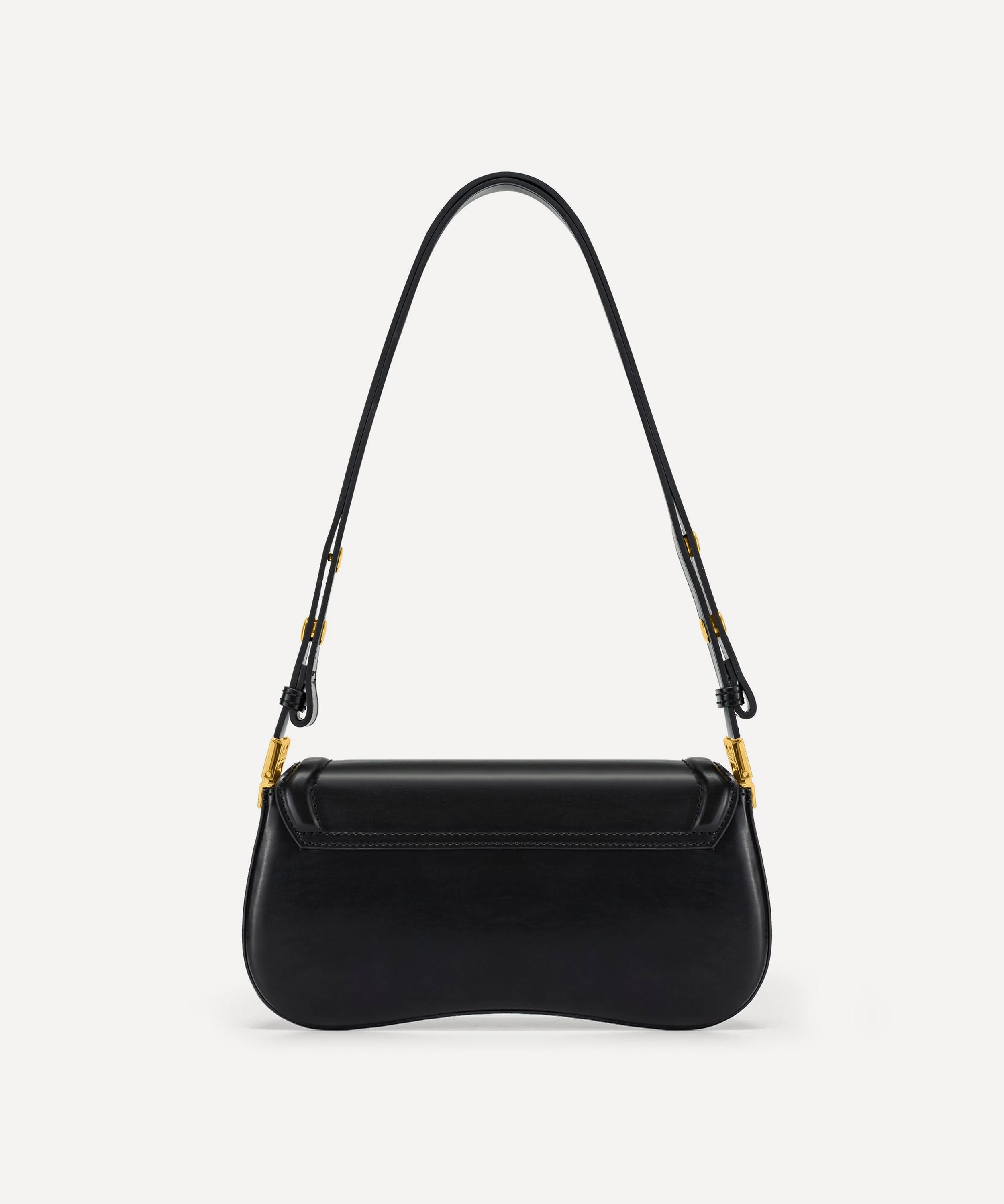 Capturing a modern, minimalist aesthetic, this sleek vegan leather bag showcases clean lines and a structured silhouette with a curved base. The smooth, glossy exterior is adorned with visible stitching around the edges while the interior boasts a slip pocket for effortless organisation. Complete with a magnetic clasp closure and an adjustable strap, it sits comfortably on the shoulder, ready to go from day-to-night in an instant.