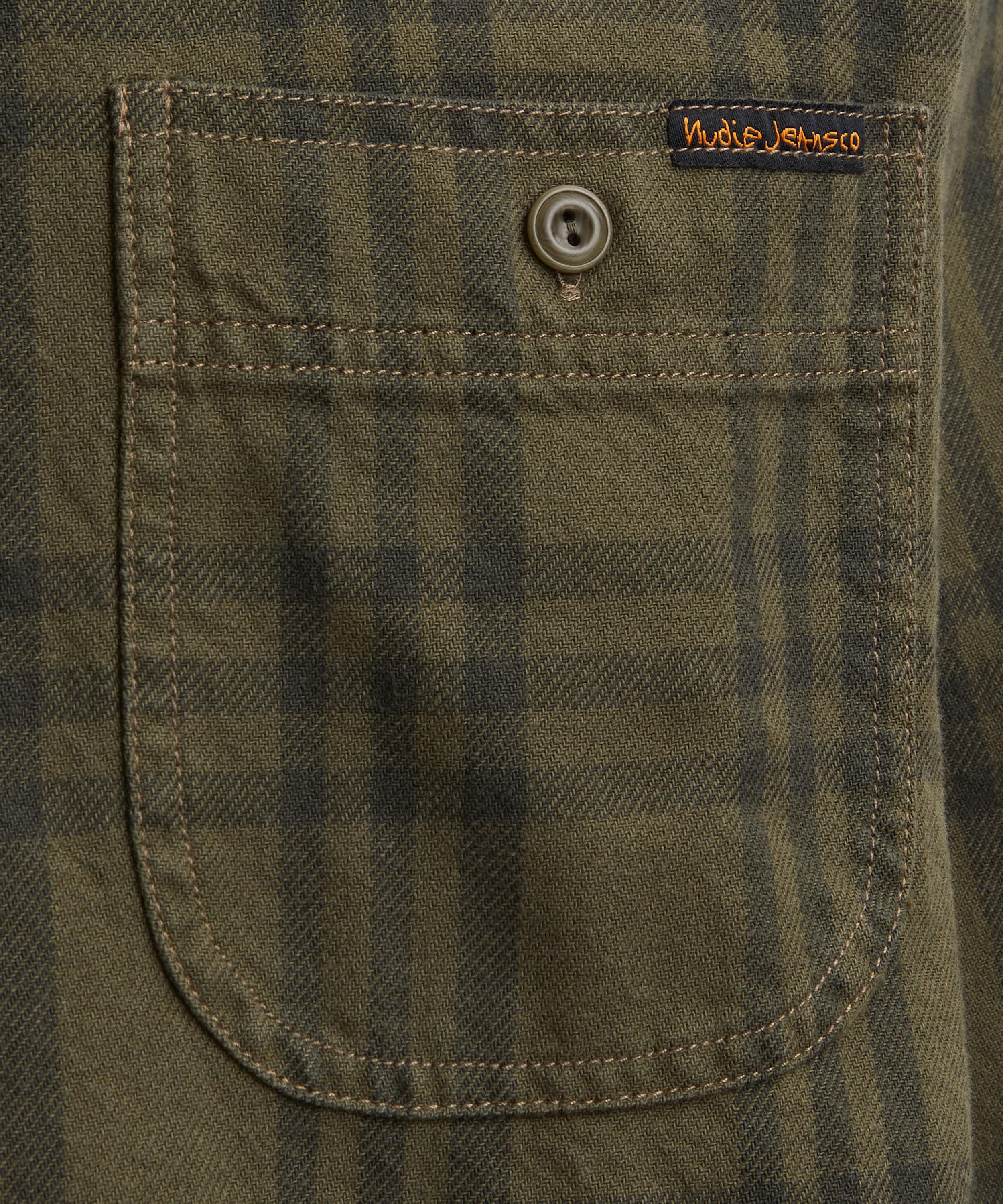 Crafted from cotton twill in a washed, worn-in olive check, the Julian shirt delivers timeless utility with a vintage edge. Designed in a classic regular fit, it features a point collar, two buttoned chest pockets, and a front fastening with natural corozo buttons - offering effortless style and everyday versatility.