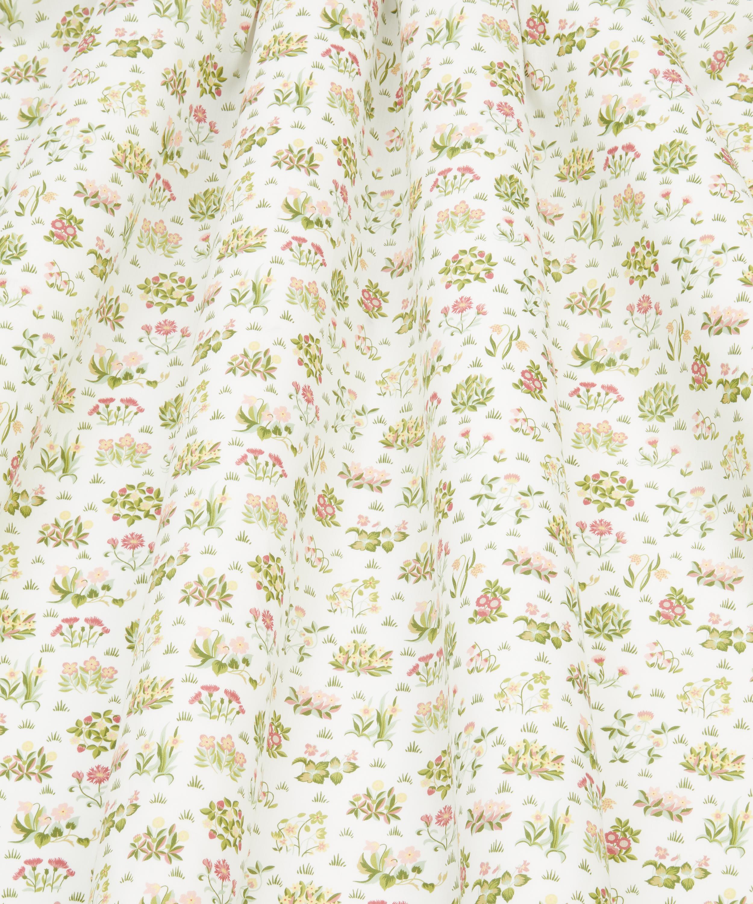 This enchanting pattern conjures a gentle stroll through the Morris family garden at Kelmscott Manor. Inspired by May Morris’s embroidered ‘June’ frieze from c.1909, sprays of wildflowers and feathery grasses create natural pathways, recalling the glow of sun-drenched meadows. Hand-painted in the Liberty studio with a light illustrative touch, daisies, bluebells, pinks, primroses, tulips, cornflowers, and strawberry plants come together in a tranquil celebration of botanical charm.