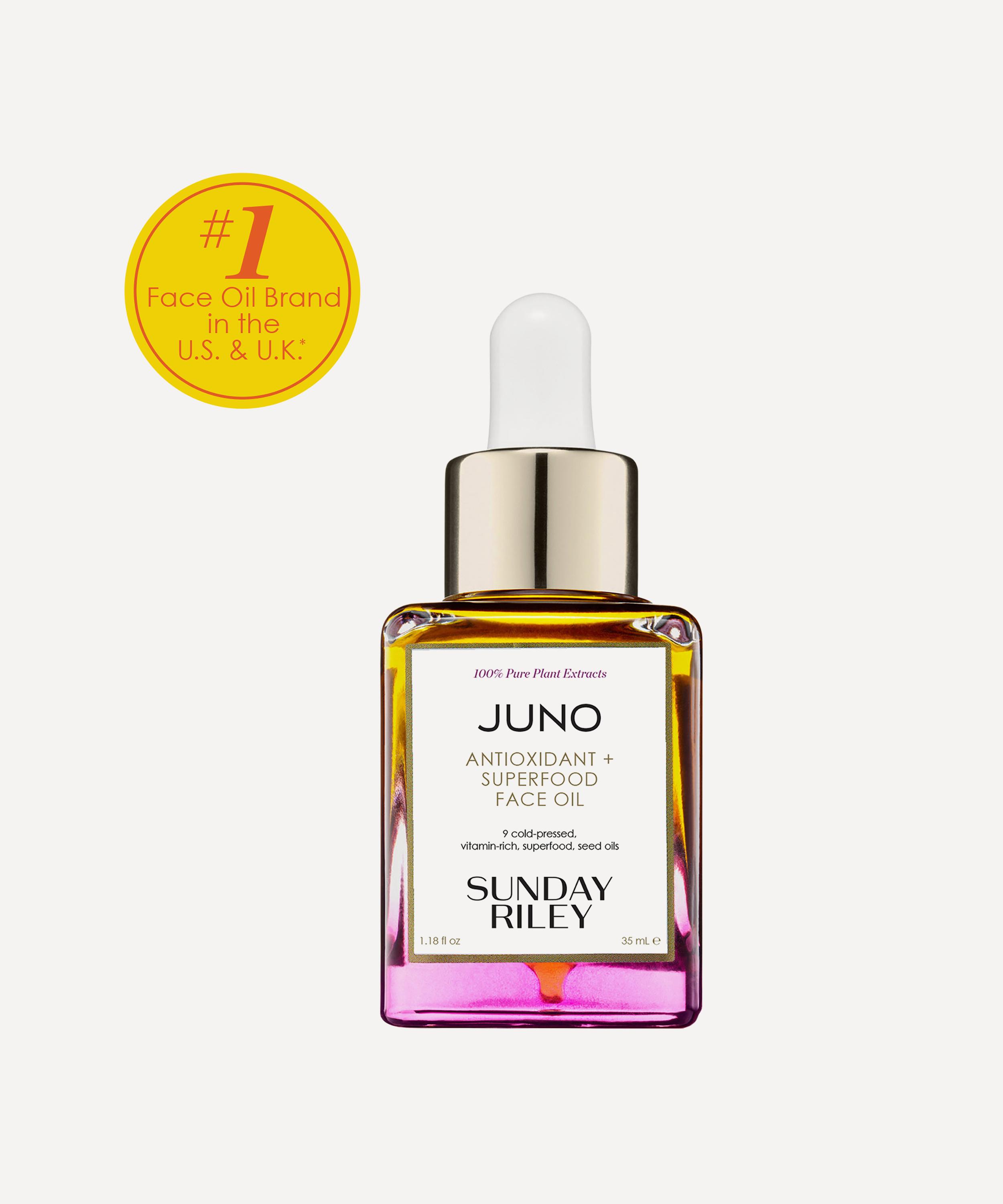 Juno Antioxidant and Superfood Face Oil from Sunday Riley restores and rehydrates skin with an organic blend of soothing botanicals.