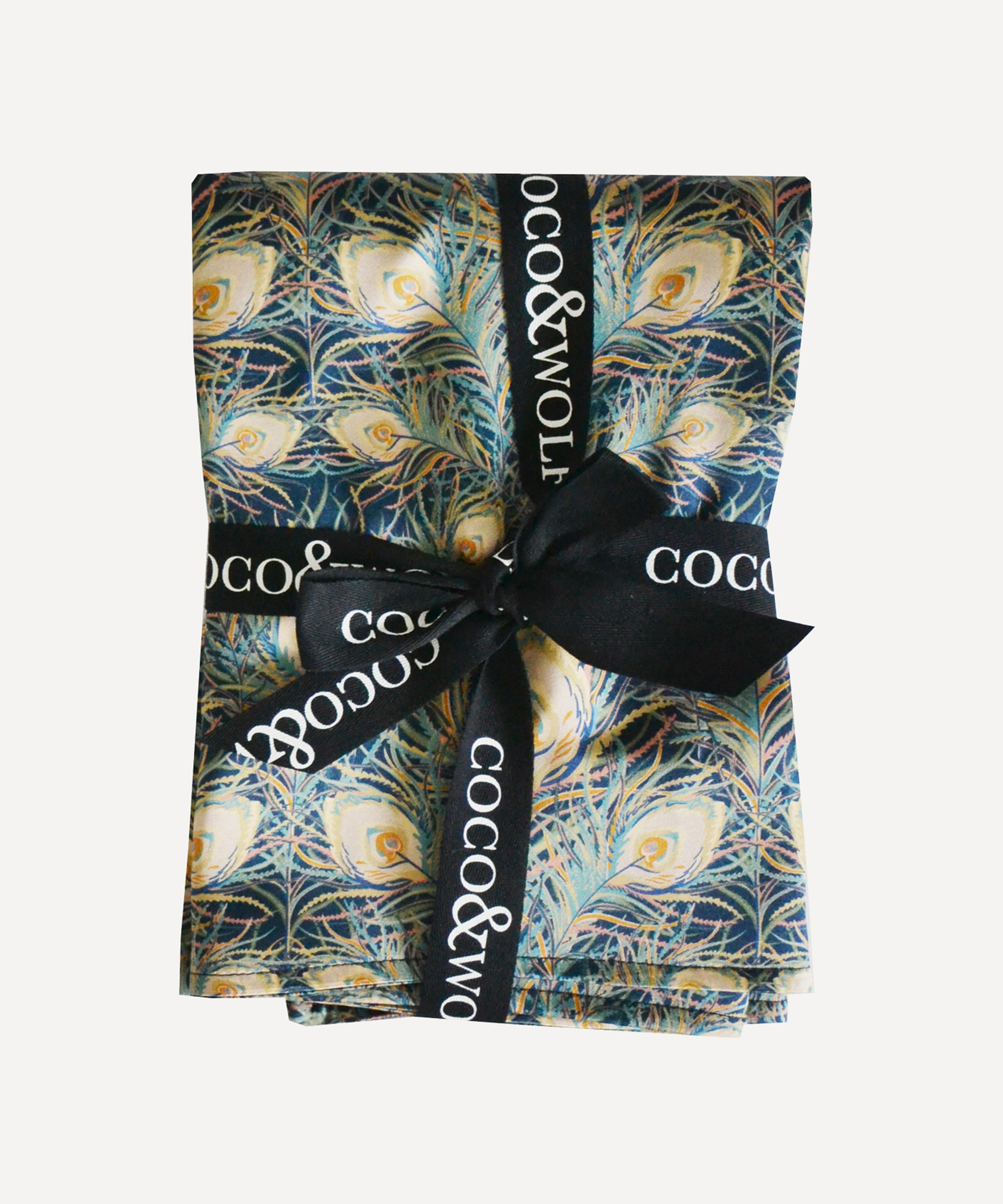 Somerset-born bedding brand Coco & Wolf is renowned for its Liberty print bedspreads, duvets and cushions, crafted from our inimitable Tana Lawn™ cotton, a modern masterpiece of fabric production that Liberty has been perfecting for over 100 years. The two pillowcases are crafted from a supreme silk fabric and dressed in Liberty Fabrics’ Prospect Road print – our design team used a small 19th century painting found in the archive, repainting a peacock feather in gouache into an intricate new multi-coloured arrangement.