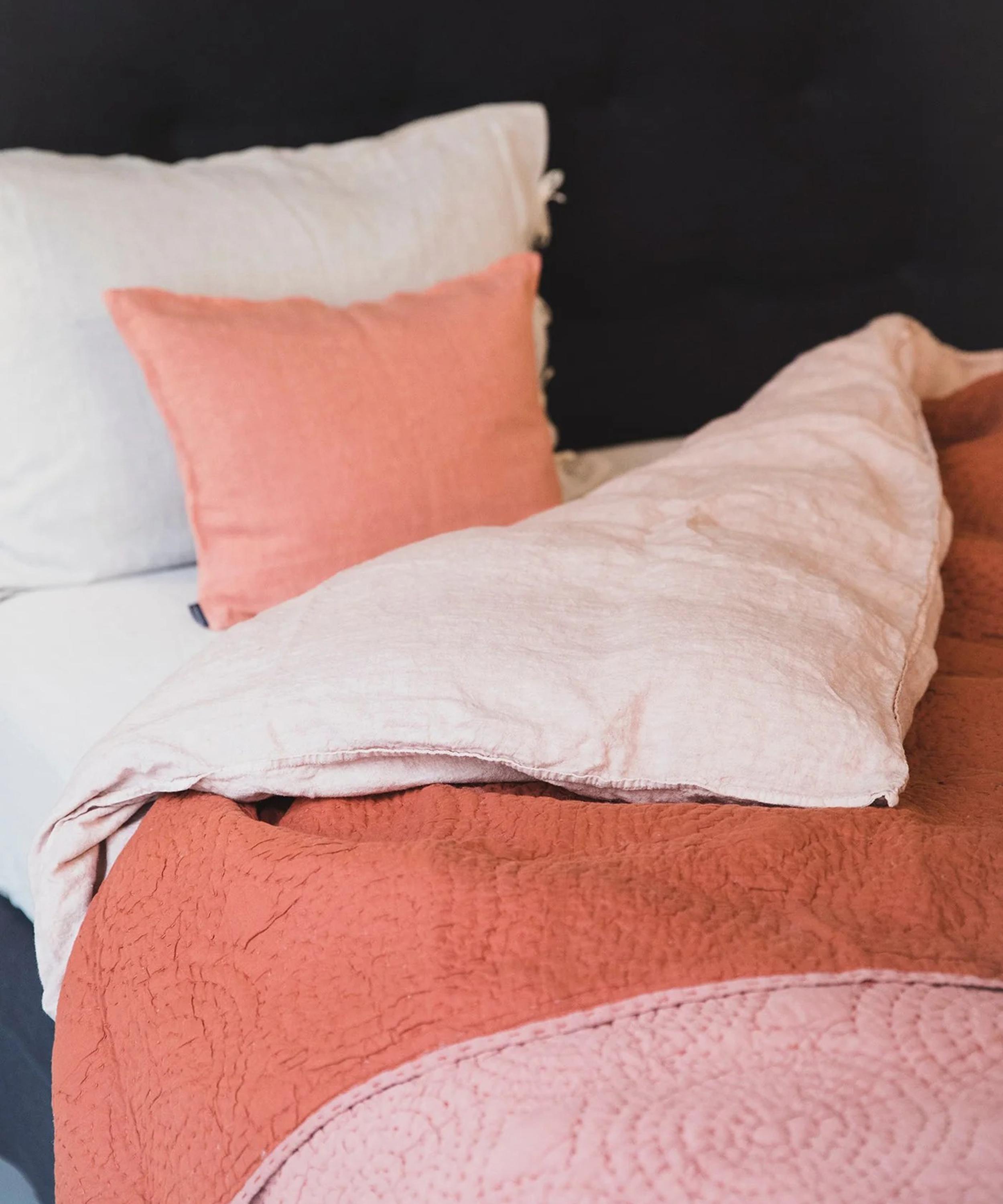 A homeware brand that celebrates the eclectic landscape of a lived-in home, the contrasting sides of this bedspread are joined by a Khanta-type embroidery, done by hand. A generous and inspired topstitching, which draws beautiful concentric circles, this homeware hero is perfect for adding texture and comfort to your interior spaces.About Caravane