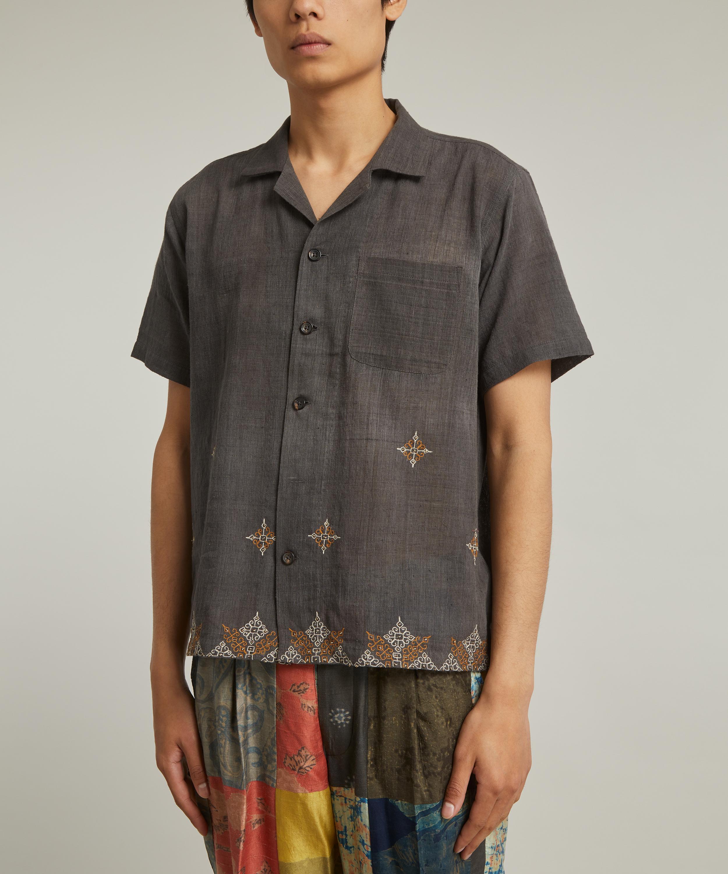 Meticulously crafted by hand, this short-sleeve shirt is constructed from a lightweight cotton fabric showcasing charming embroidery. Complete with a spread collar and a patch pocket at the chest, it’s secured with buttons at the front.